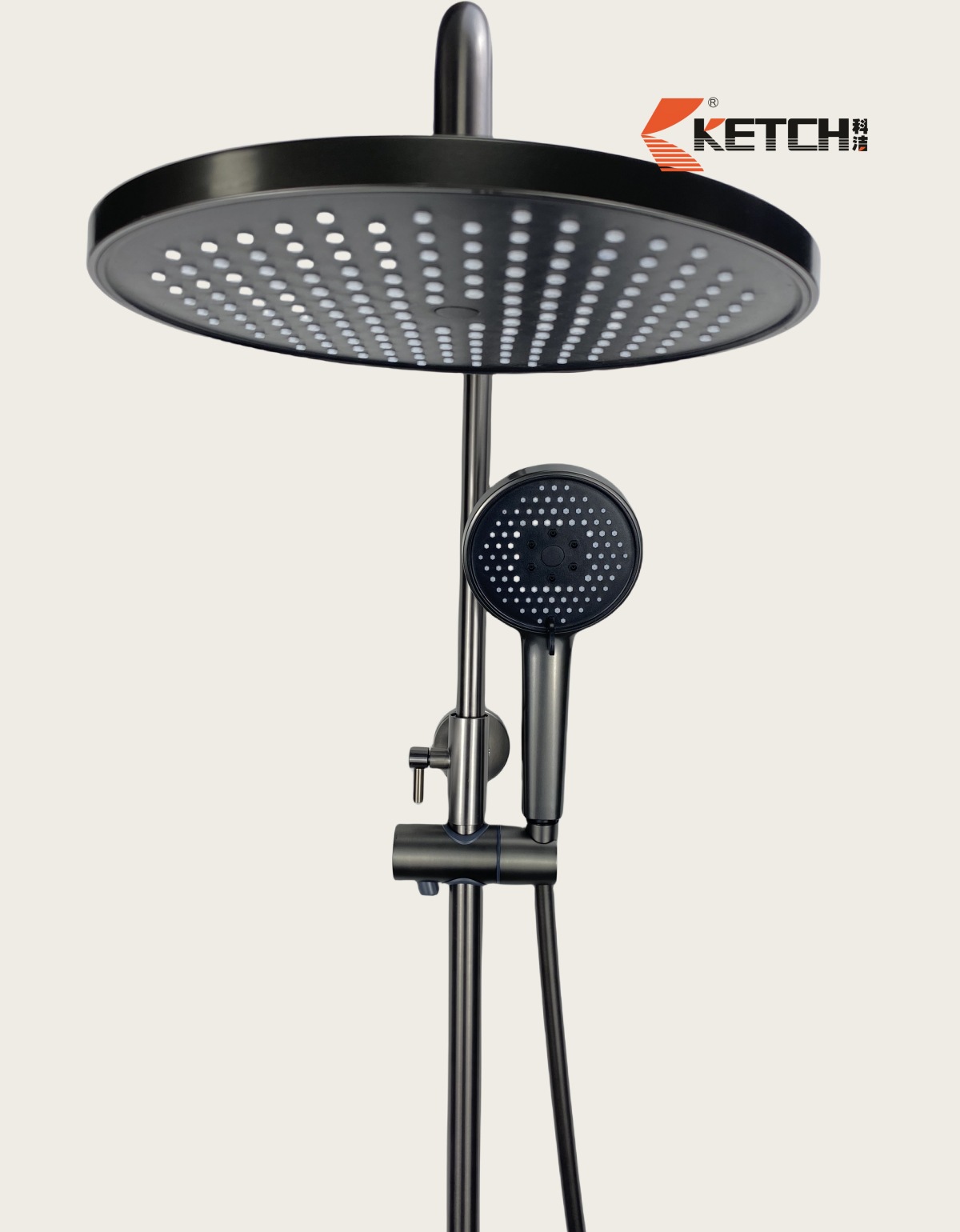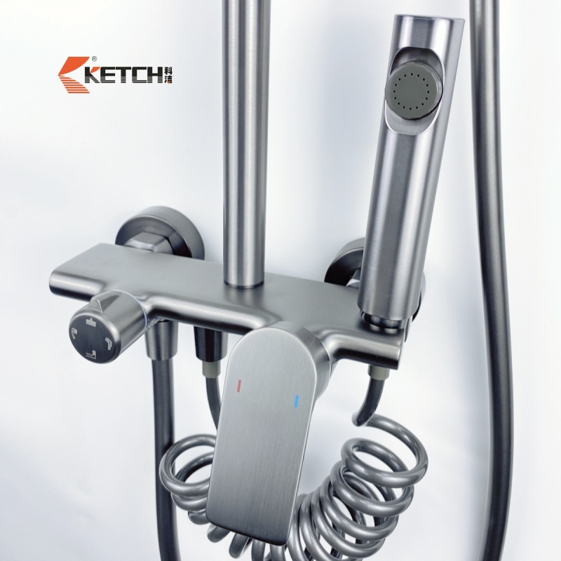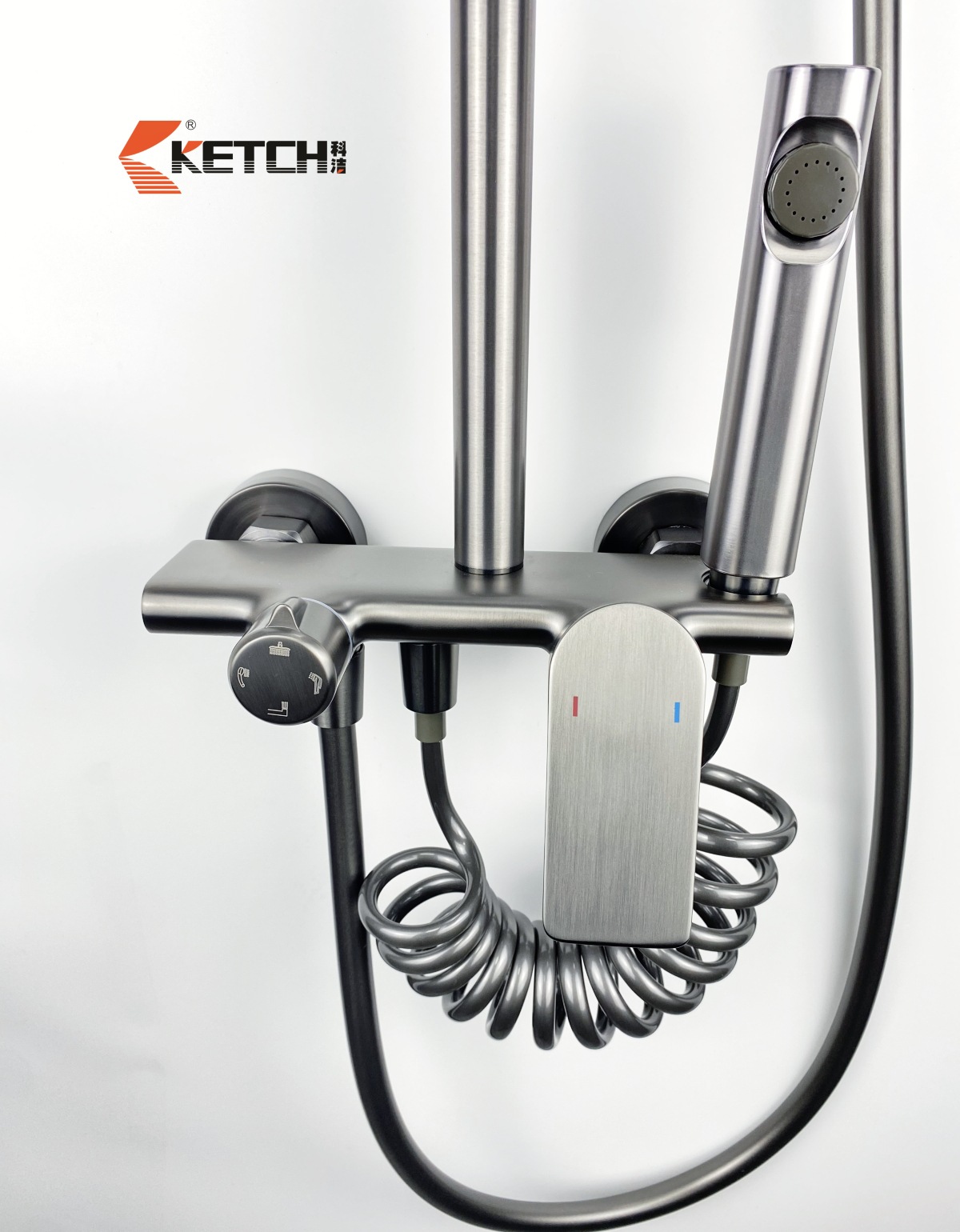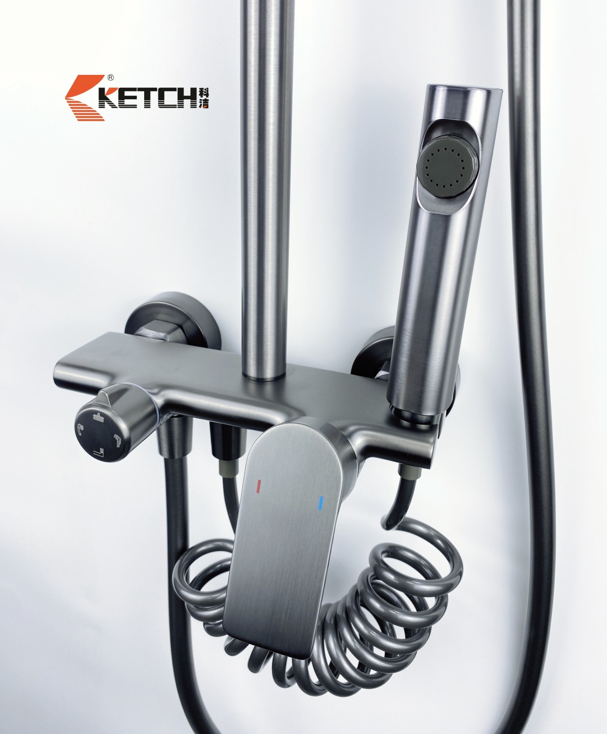 케이지 건 그레이 샤워 샤워 세트 모든 구리 샤워 샤워 샤워 욕실 샤워 샤워 가정용 온도 조절 부스터 노즐