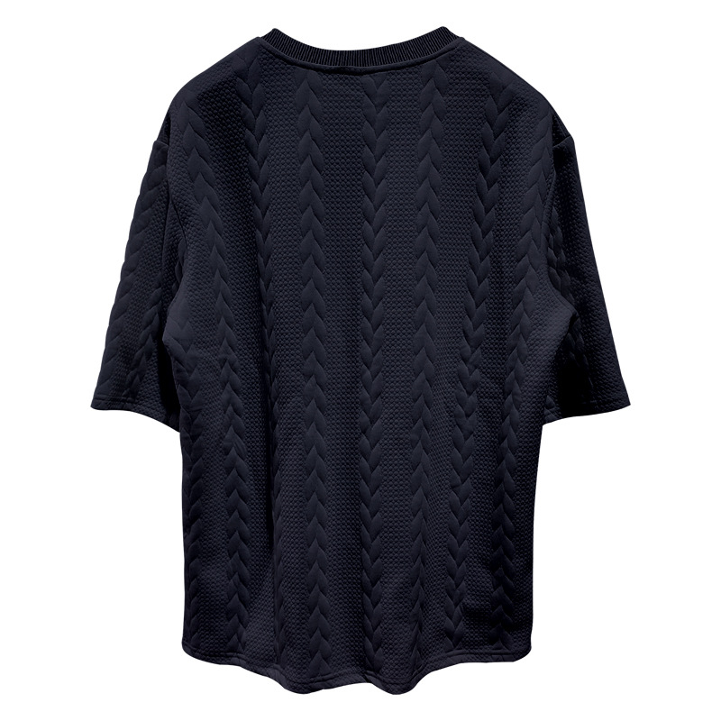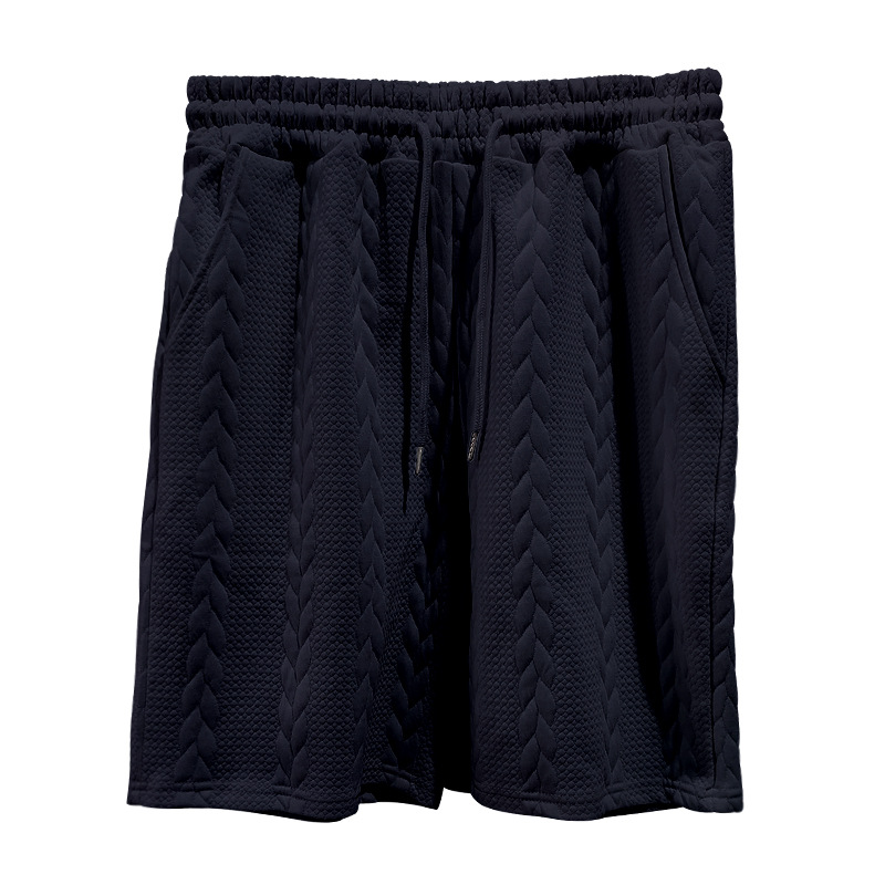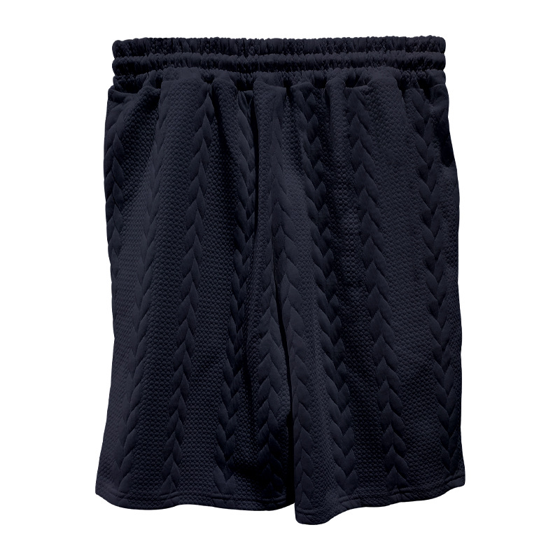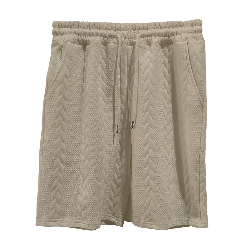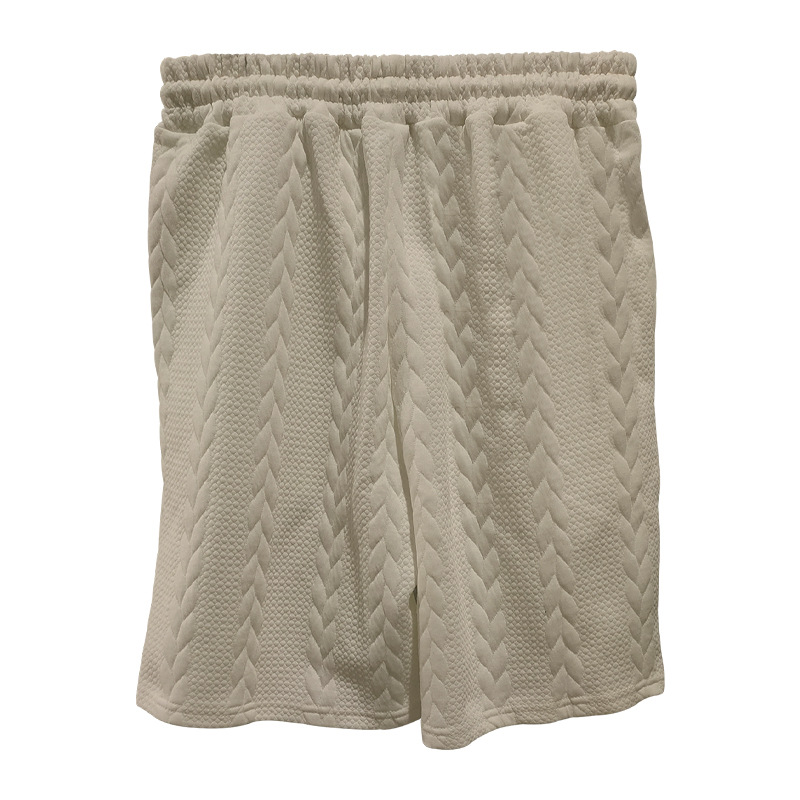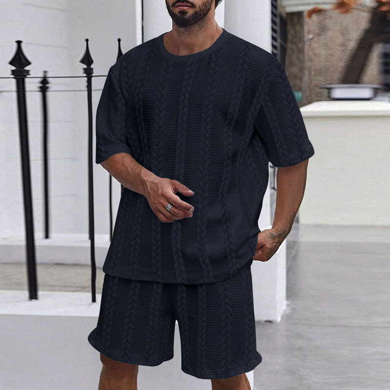 유럽과 미국 24 아마존 니트 솔리드 컬러 자카드 여름 캐주얼 크루 넥 풀오버 짧은 소매 반바지 스포츠 남자 세트