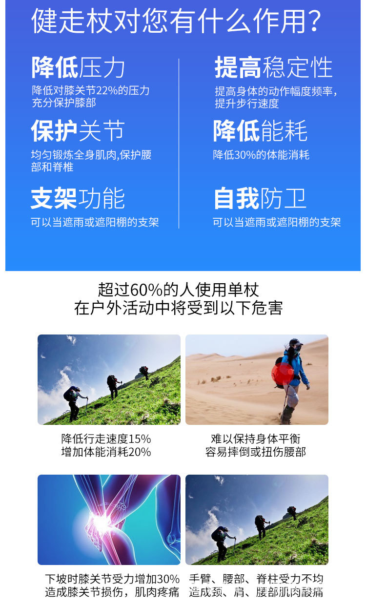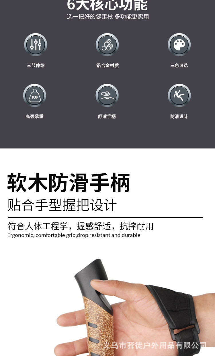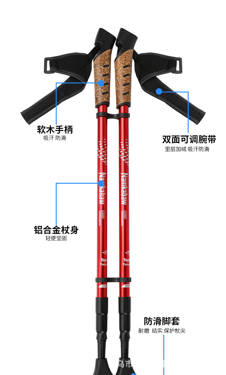 北欧手杖户外越野跑健走徒步手杖高强铝合金拐杖