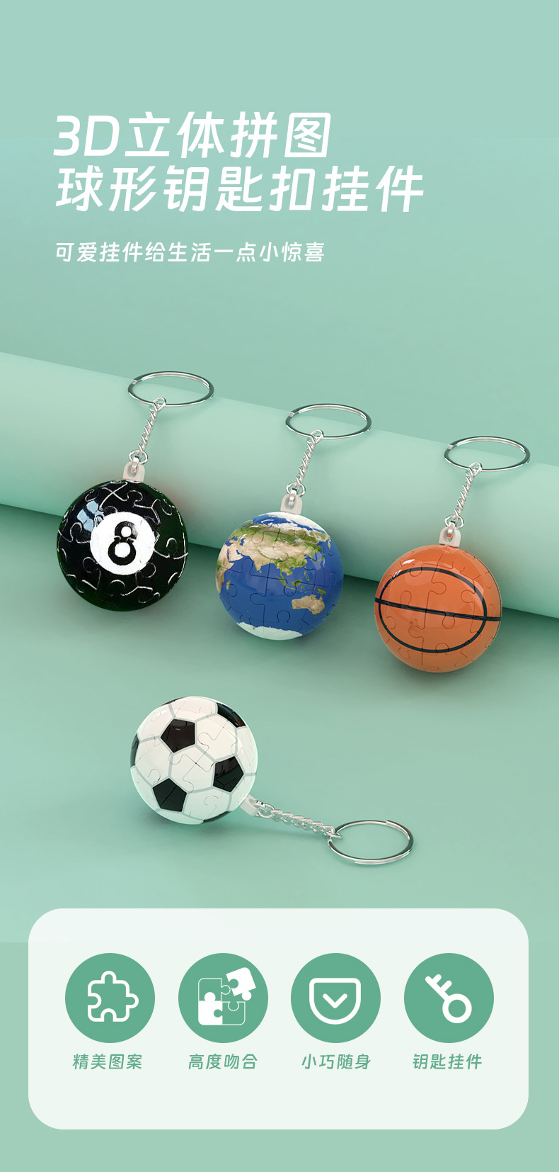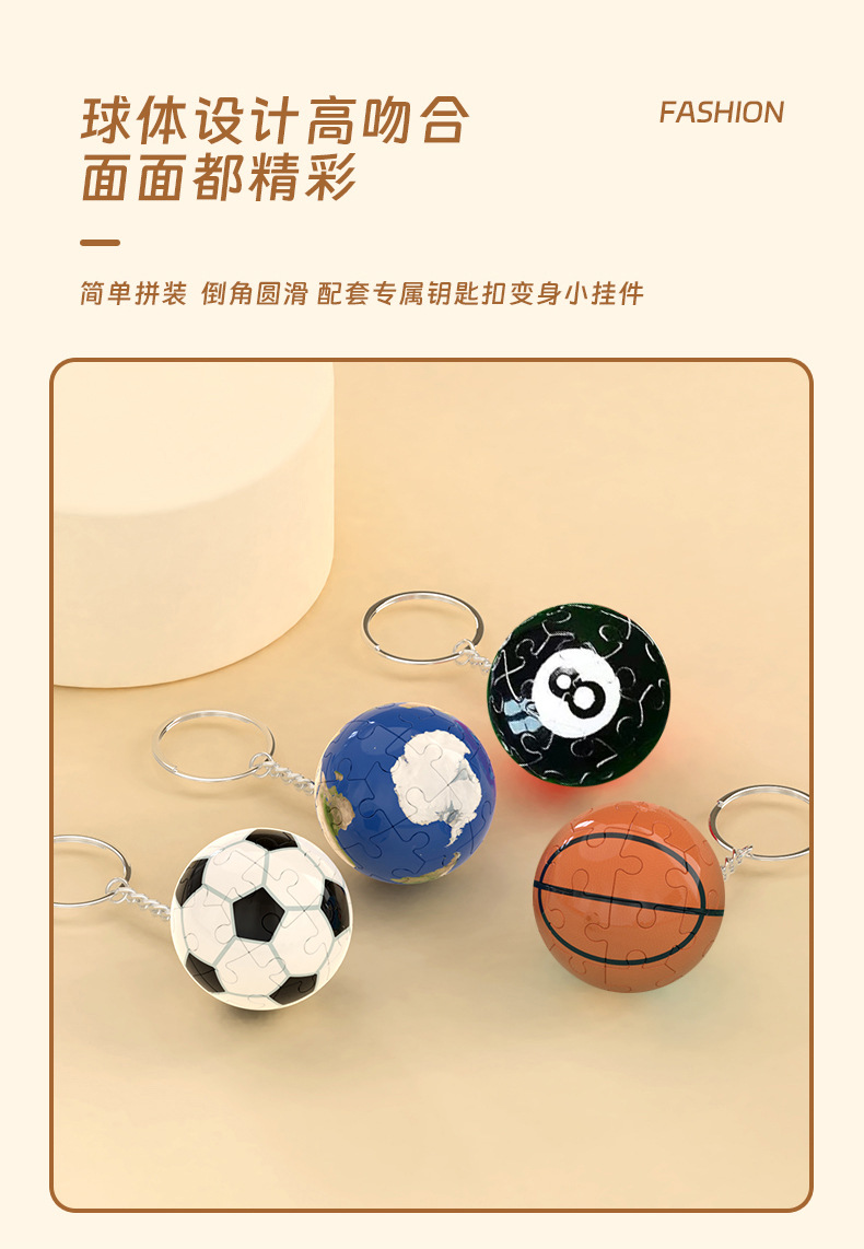 어린이 3D 입체 퍼즐 볼 키 체인 지구 농구 diy 조립 빌딩 블록 교육 장난감 도매 국경스토어 가기