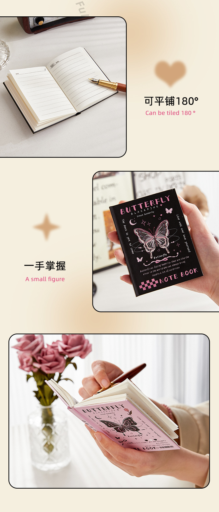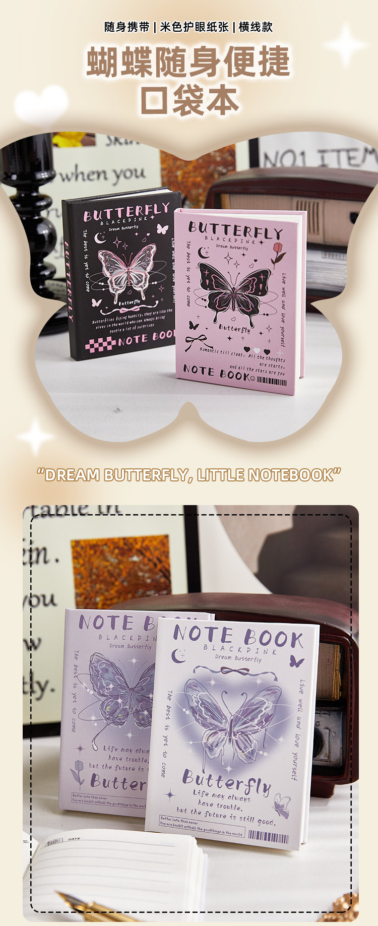 A7 포켓 북 판타지 나비 미니 노트북 소녀 휴대용 높은 가치 핸드북 학생 메모장스토어 가기