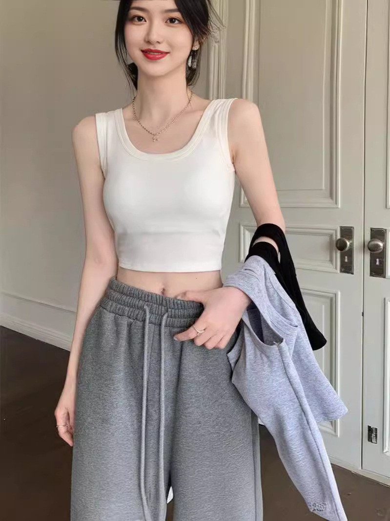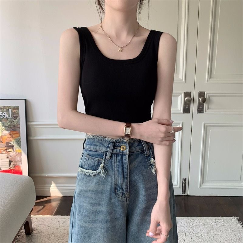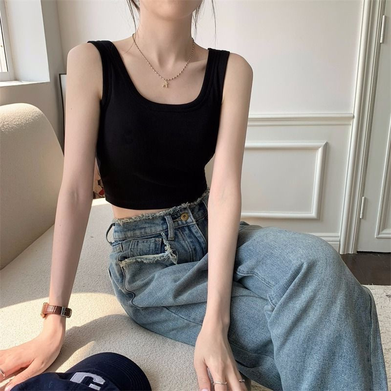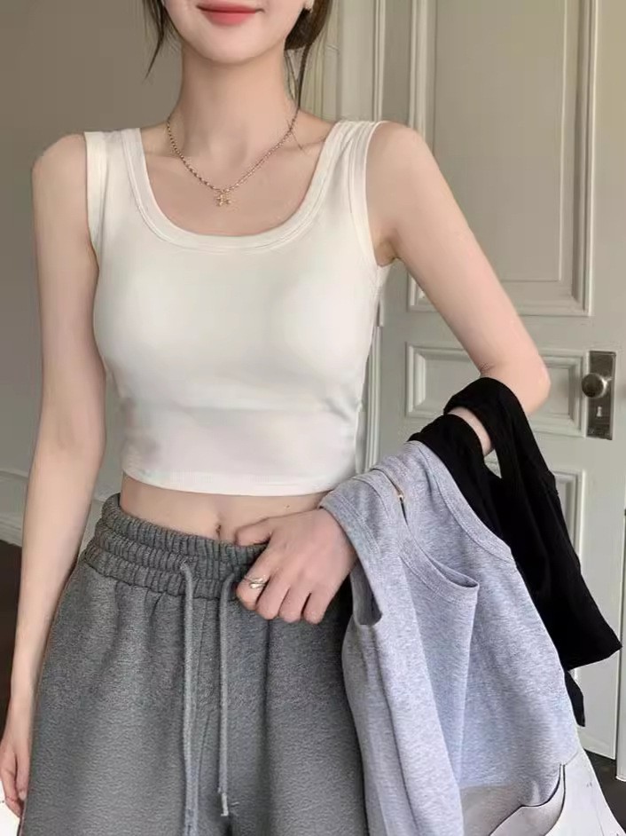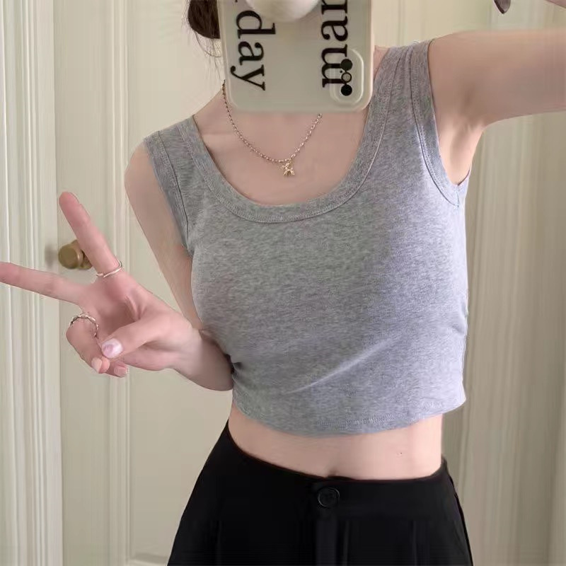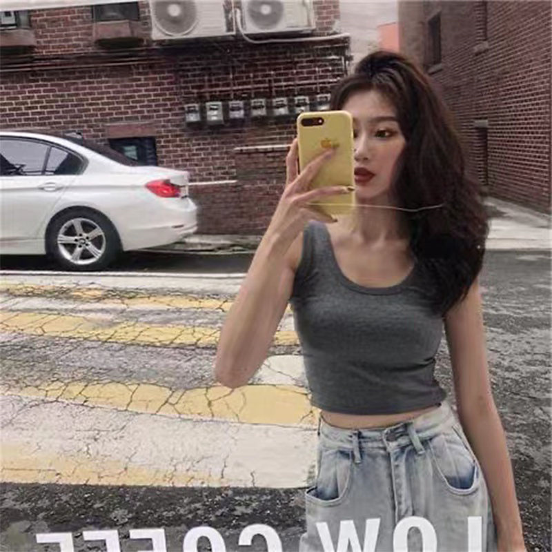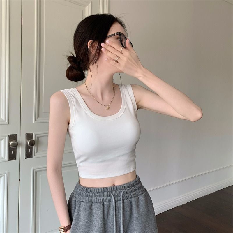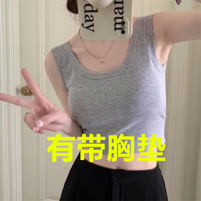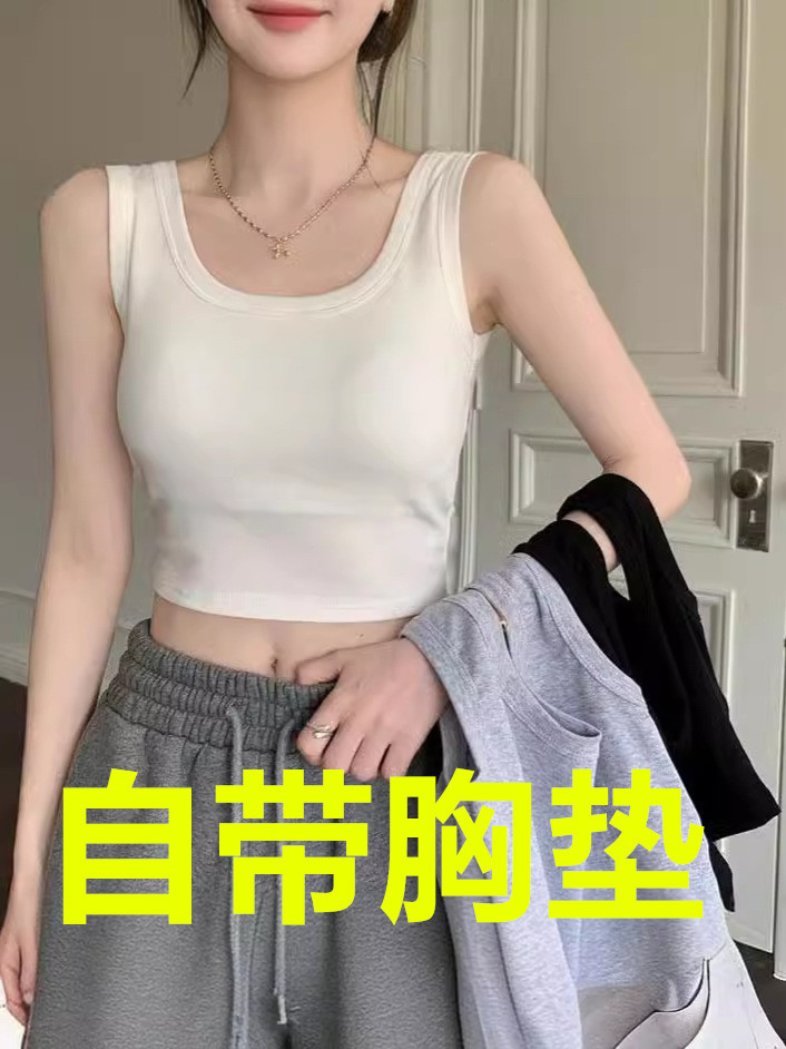 여자 조끼 가슴 패드와 2024 여름 짧은 가슴 포장 뜨거운 소녀 내부 입고있는 외부 작은 카미 솔 조끼 여성 국경스토어 가기