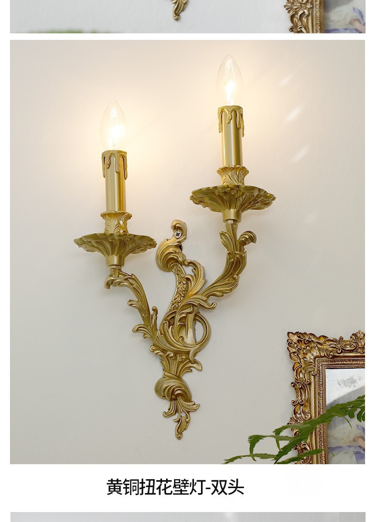 빈티지 캔들 램프 프랑스 모든 구리 벽 램프 거실 다이닝 룸 침실 통로 대기 럭셔리 빌라 램프 벽 램프