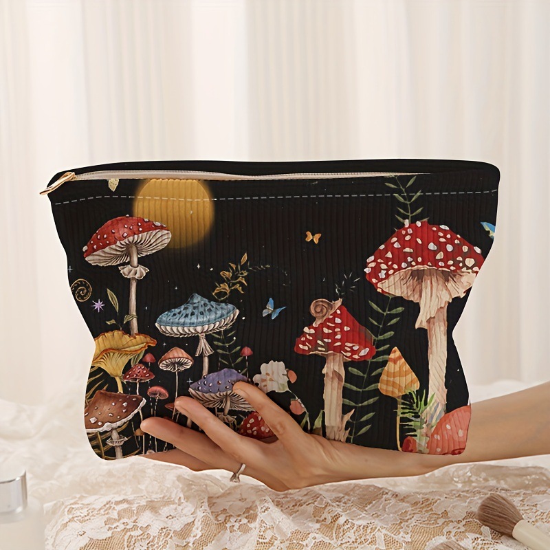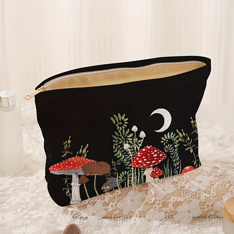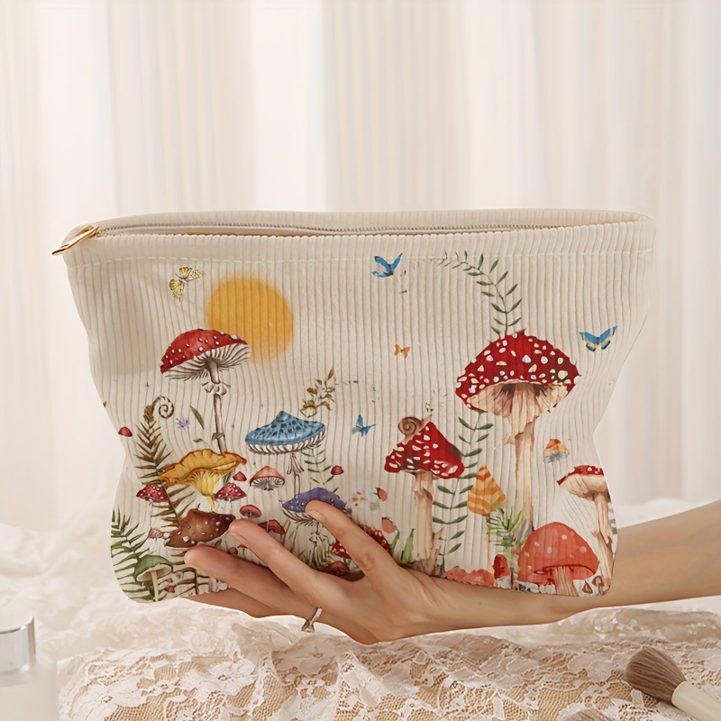 국경 간 새로운 간단한 달 버섯 그림 코듀로이 지퍼 보관 가방 경량 화장품 가방 세탁 가방