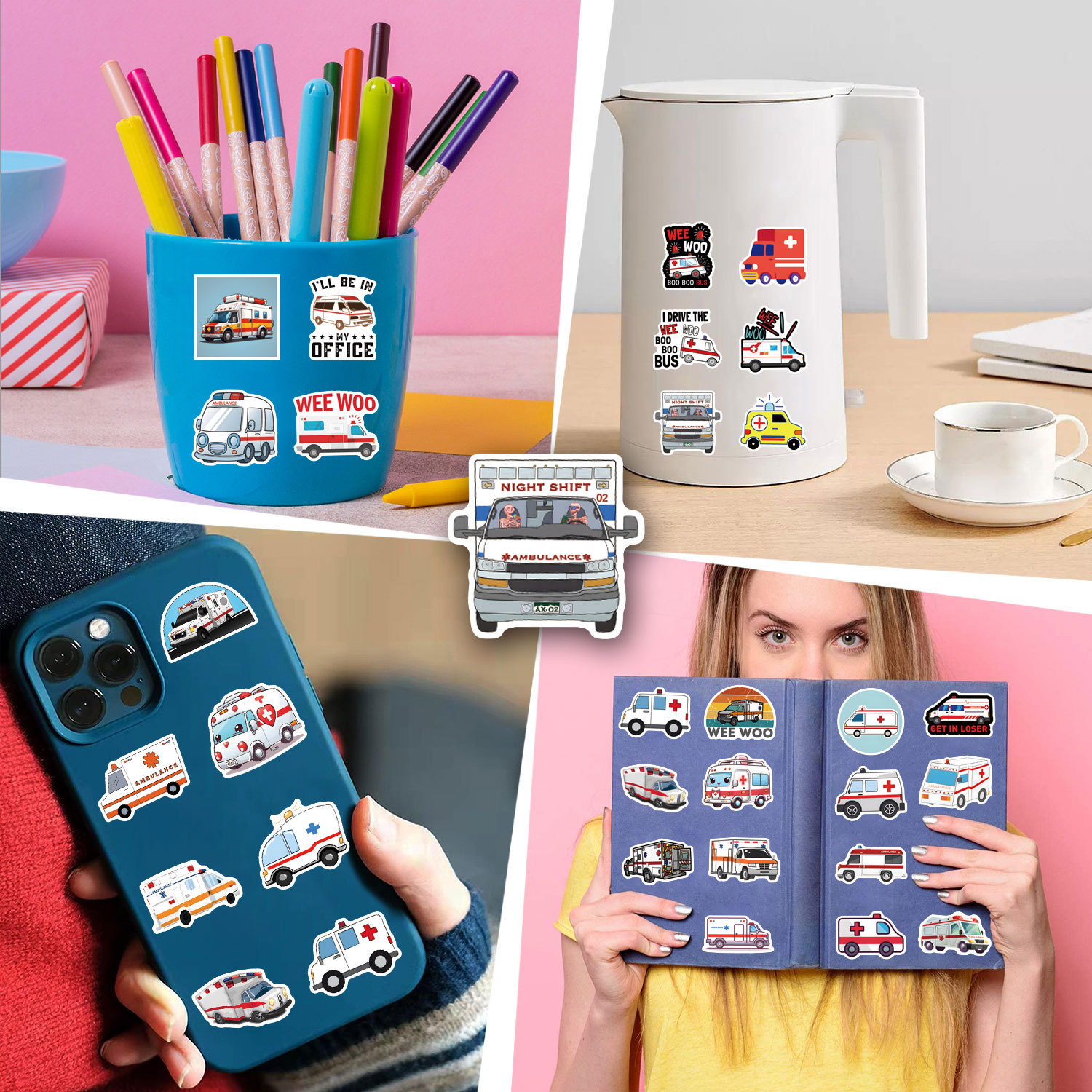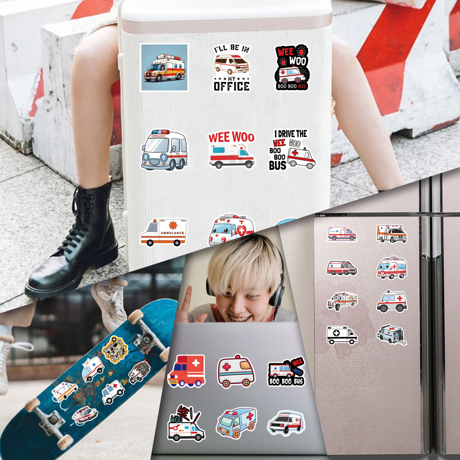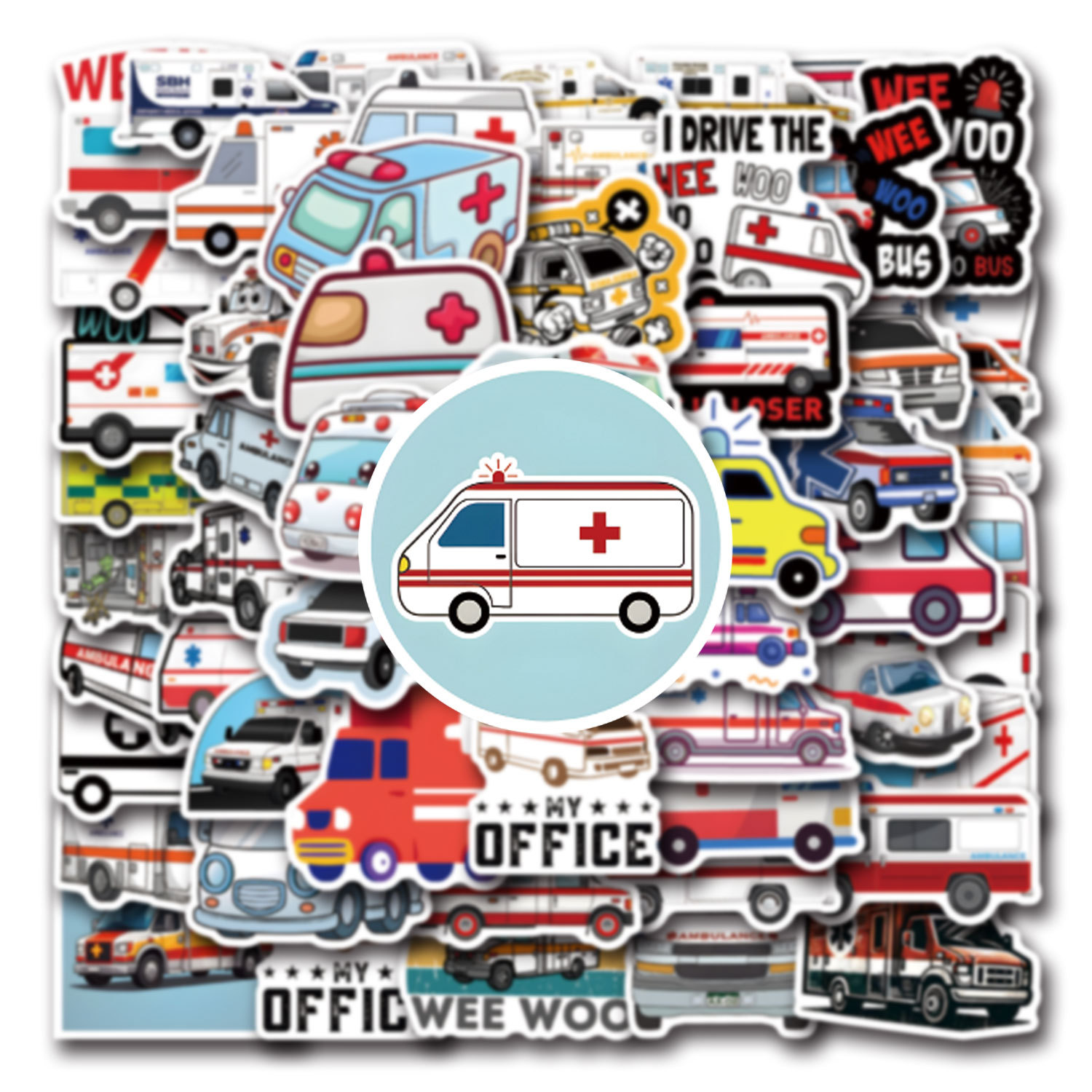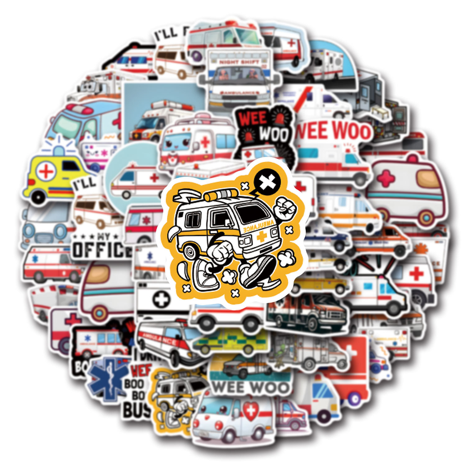 55 국경 구급차 낙서 스티커 장식 수하물 스쿠터 만화 스티커 제조 업체 도매스토어 가기
