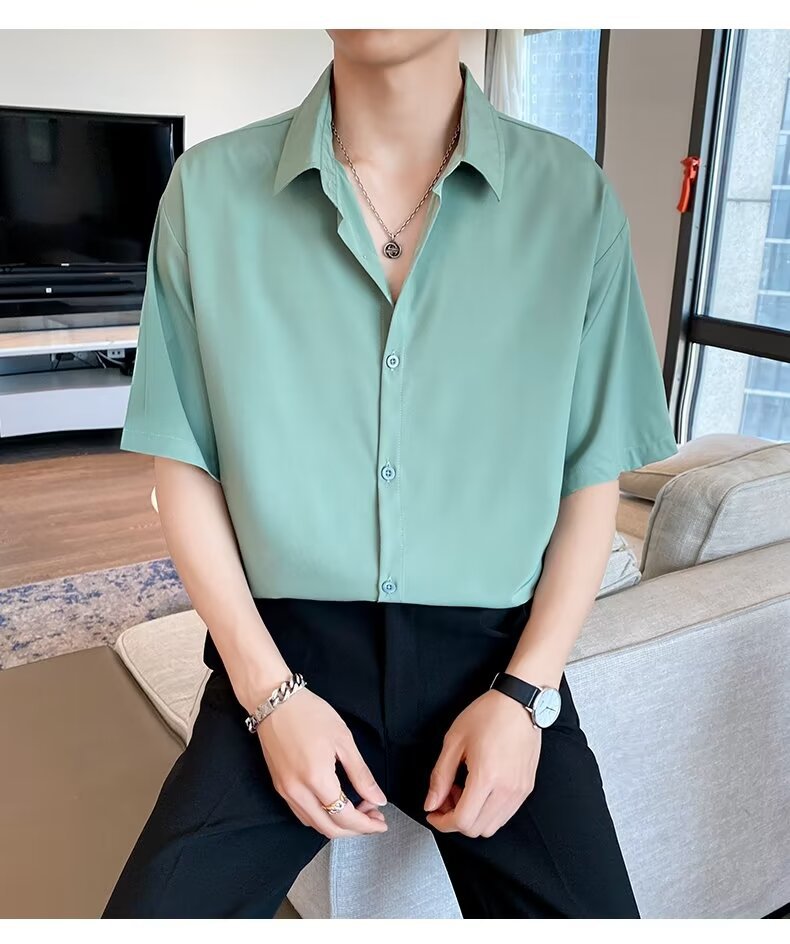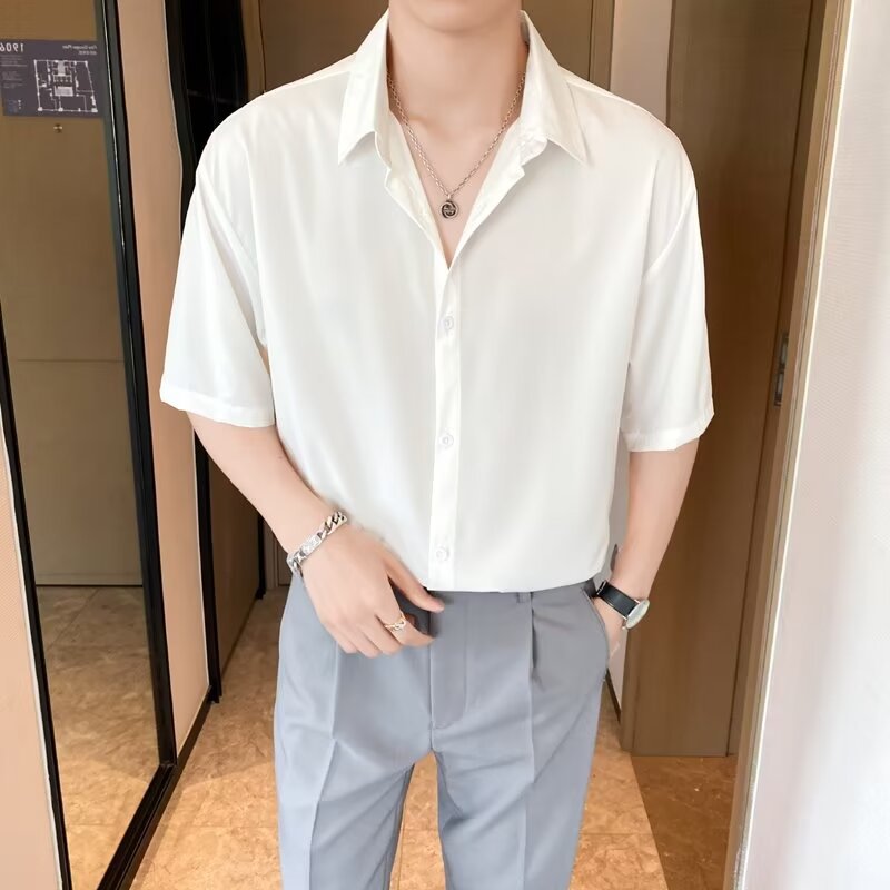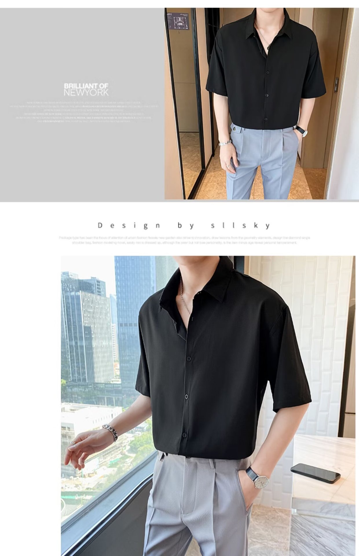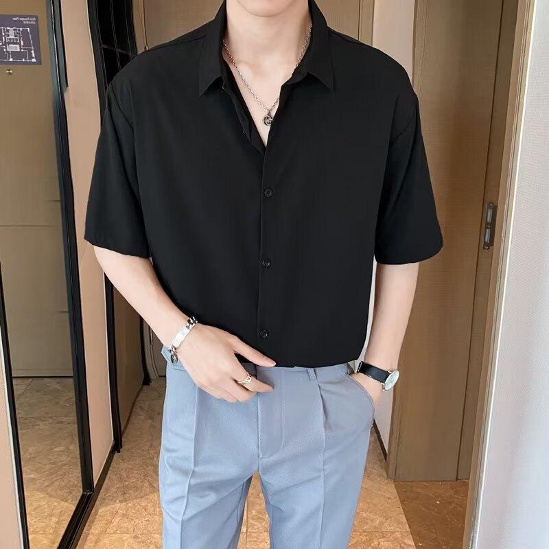 2024 레트로 셔츠 남자 여름 홍콩 스타일 학생 느슨한 틈새 디자인 감각 재미있는 새로운 남성 탑