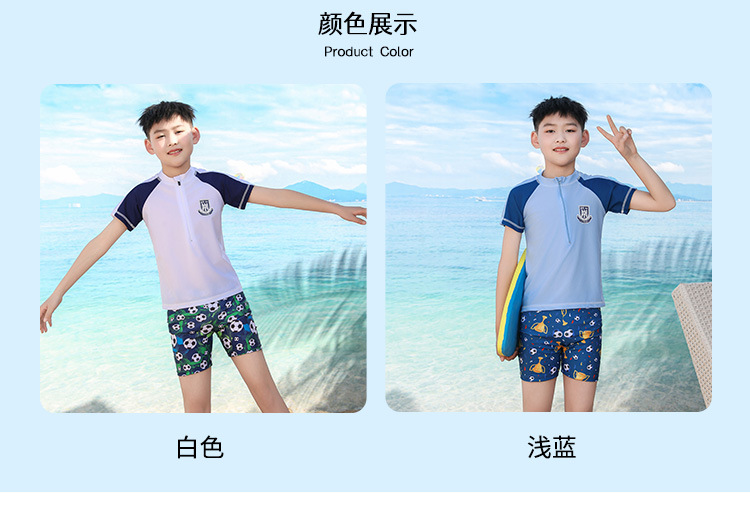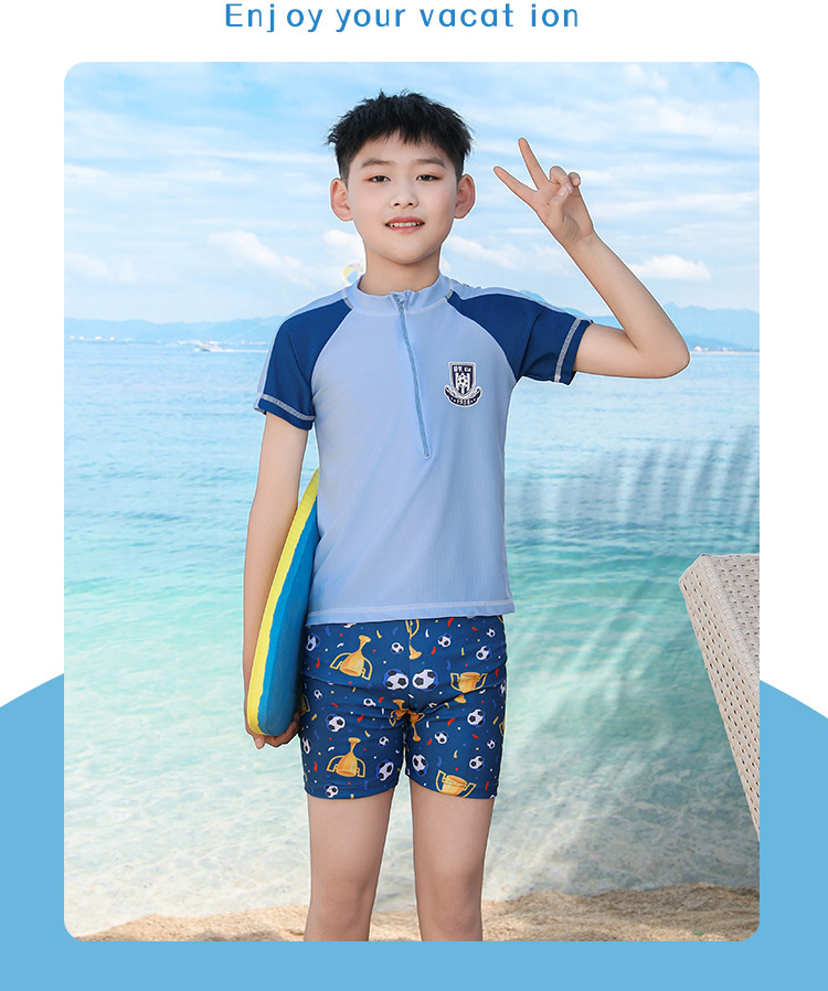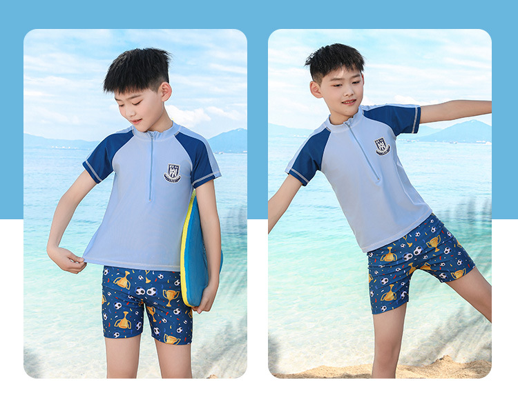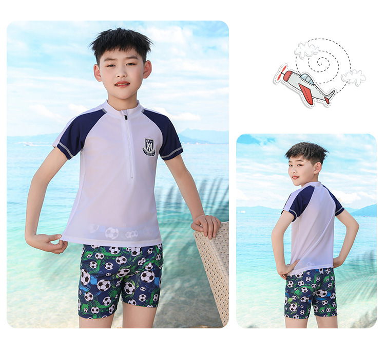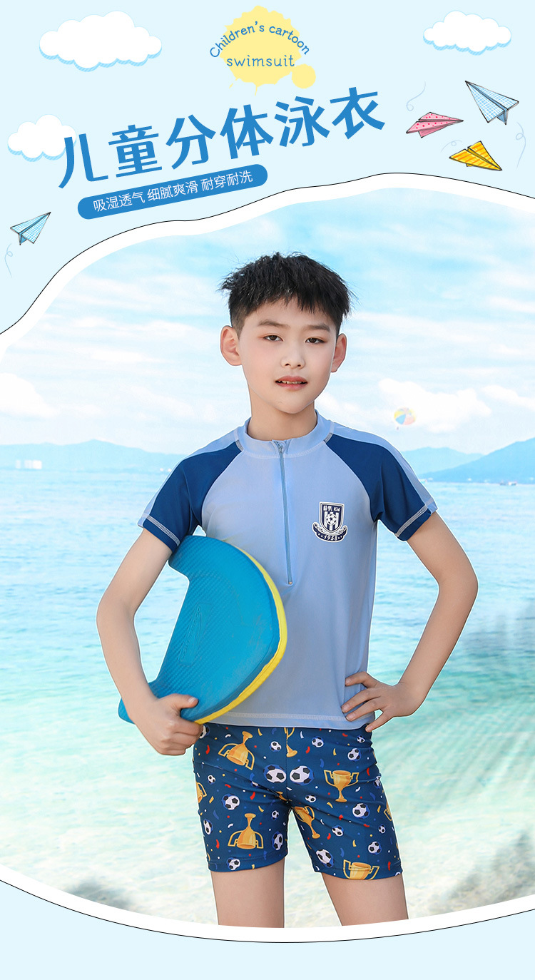 남자를위한 어린이 수영복, 중대형 어린이, 소년 및 학생 선 스크린 수영복 빠른 건조 만화 새로운 스타일 분할 세트