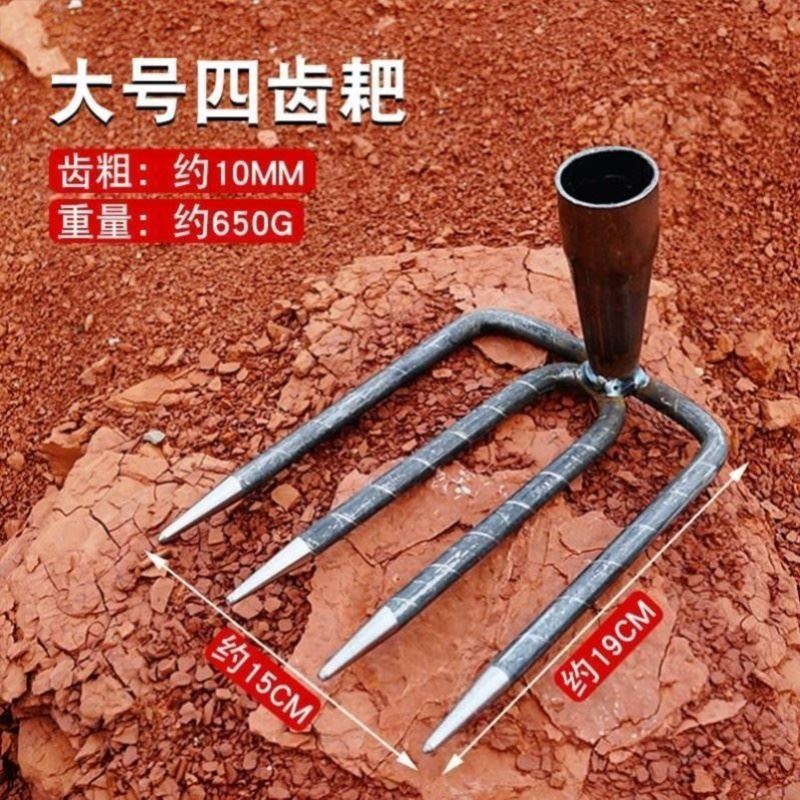 • 대형 4 치아 강철 갈퀴 1 1.2 m 나무 손잡이