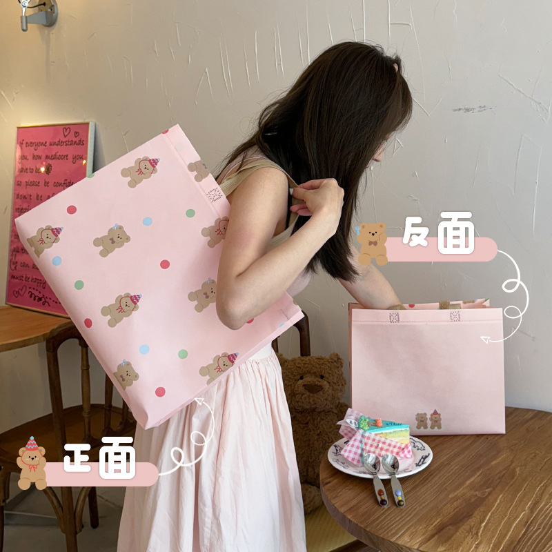만화 귀여운 곰 어린이 의류 매장 부직포 가방 포장 벨트 쇼핑 선물 토트 가방 도매 높은스토어 가기