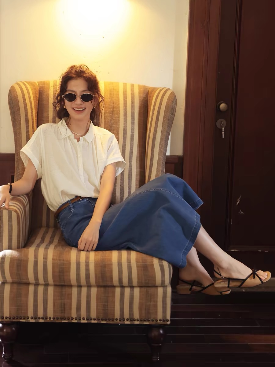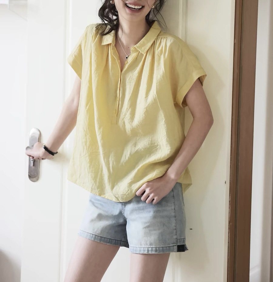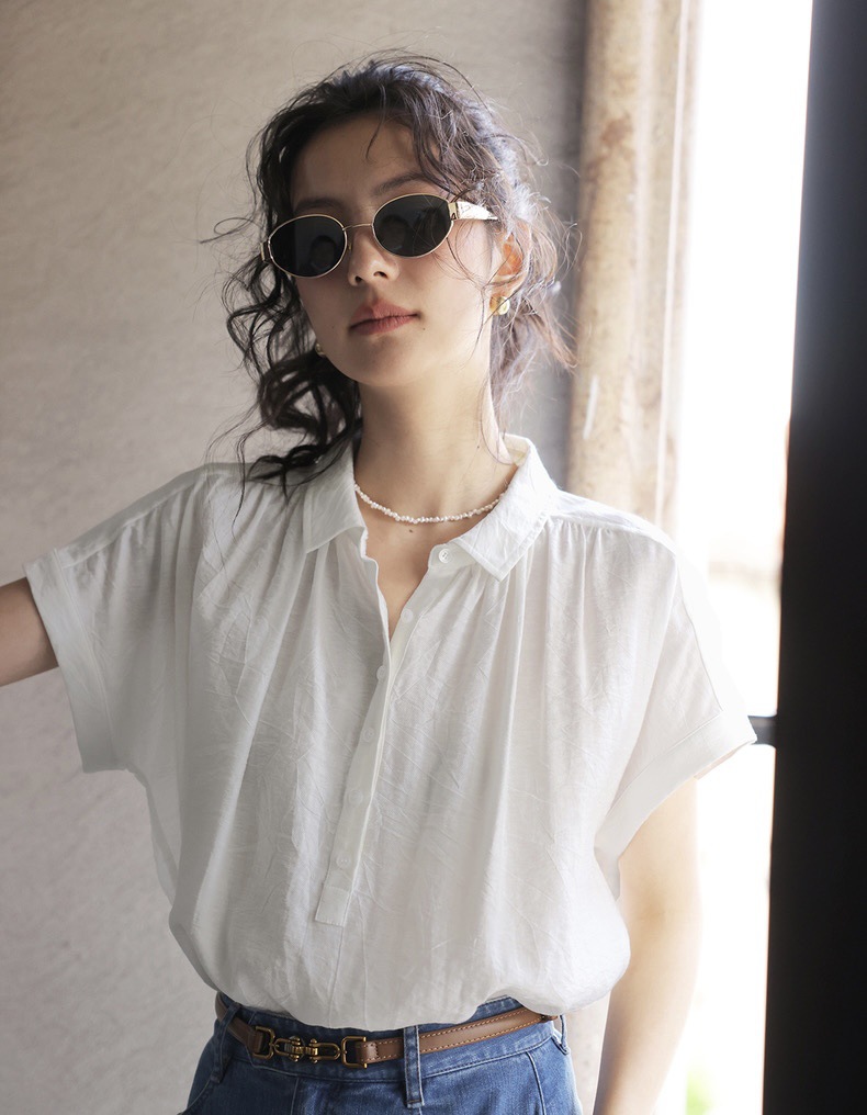Solighter 프렌치 레트로 린넨 약간 반투명 슬리브 셔츠 여성 여름 2024 새로운 루즈 슬림 셔츠스토어 가기