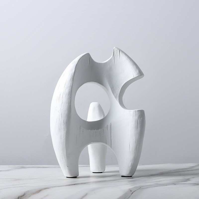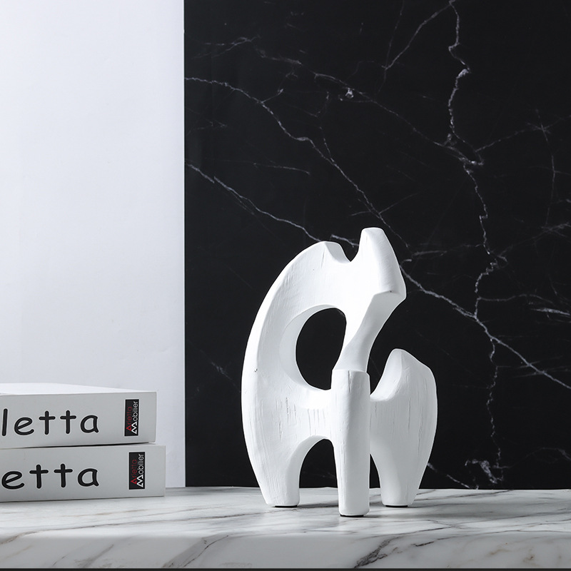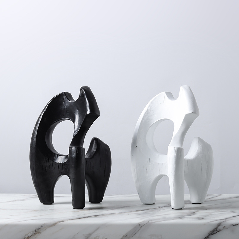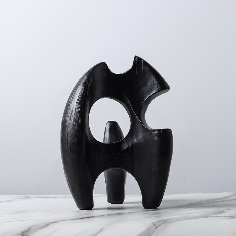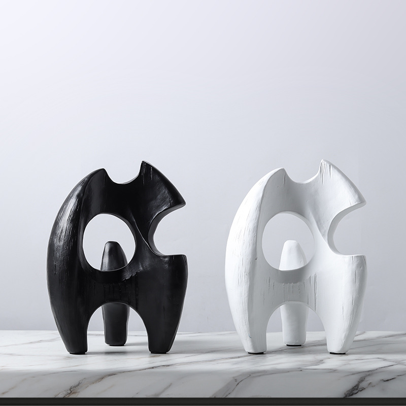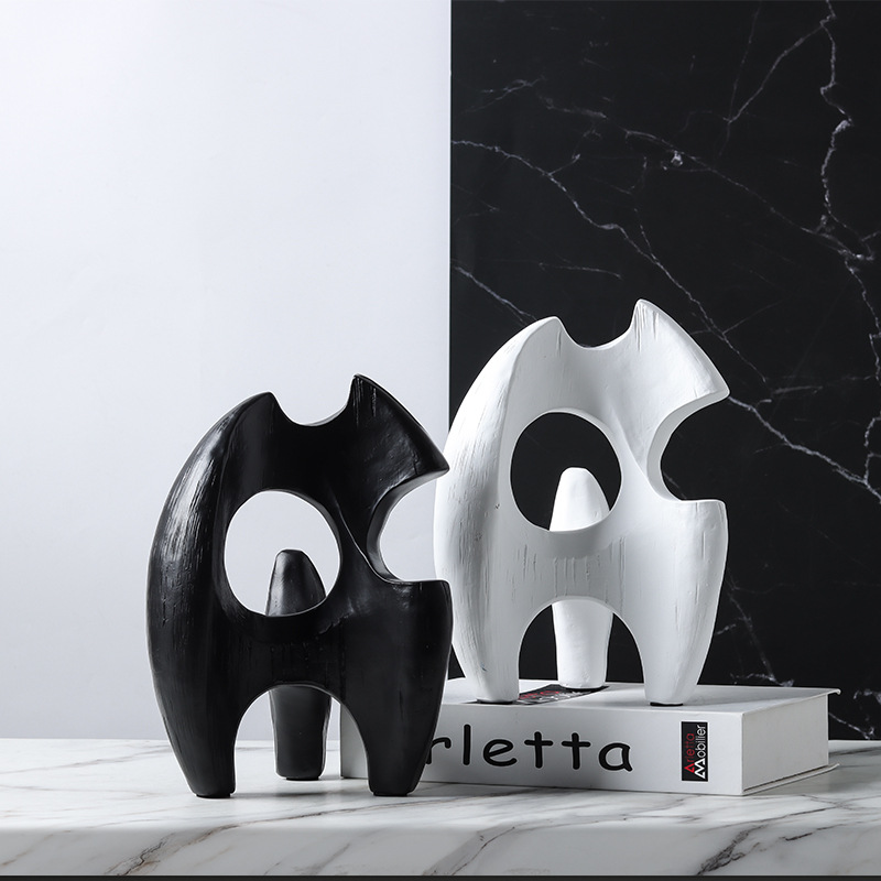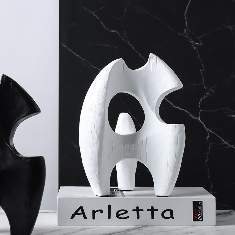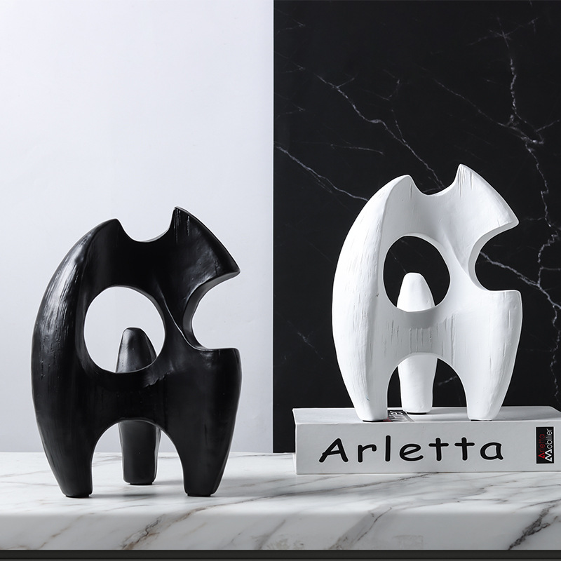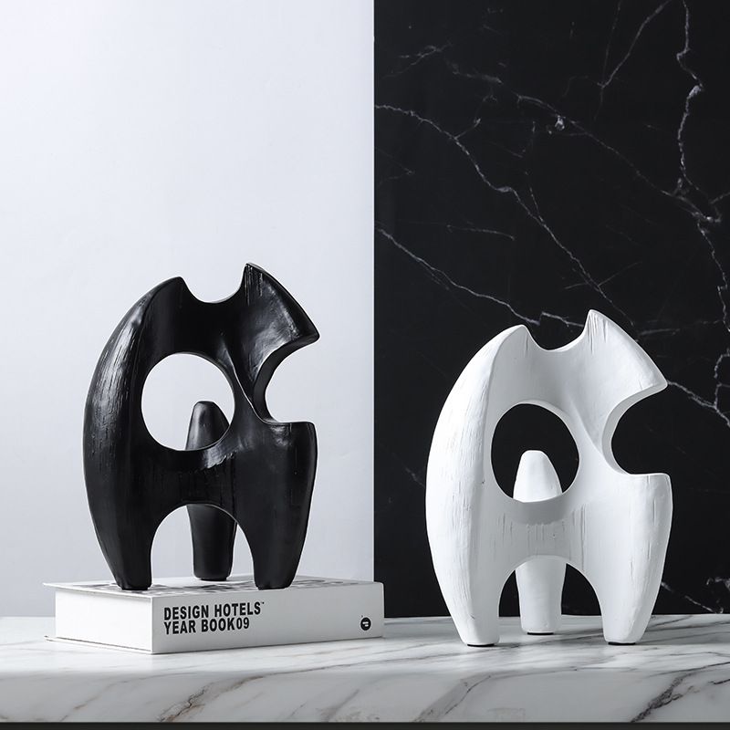 현대 북유럽 미니멀리스트 수지 추상 흑백 불규칙한 기하학적 플램 모양의 장식품 홈 모델 룸 장식