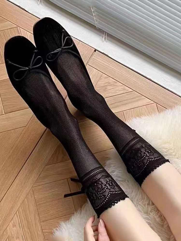 Jk 양말 여성 일본 복고풍 중공 튜브 양말 여름 얇은 활 레이스 긴 튜브 Fishnet 양말 유행