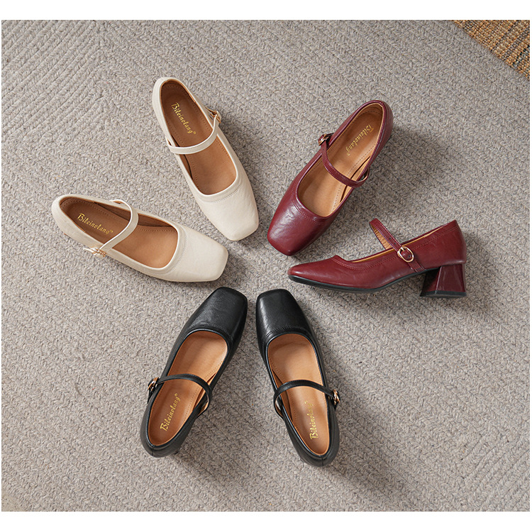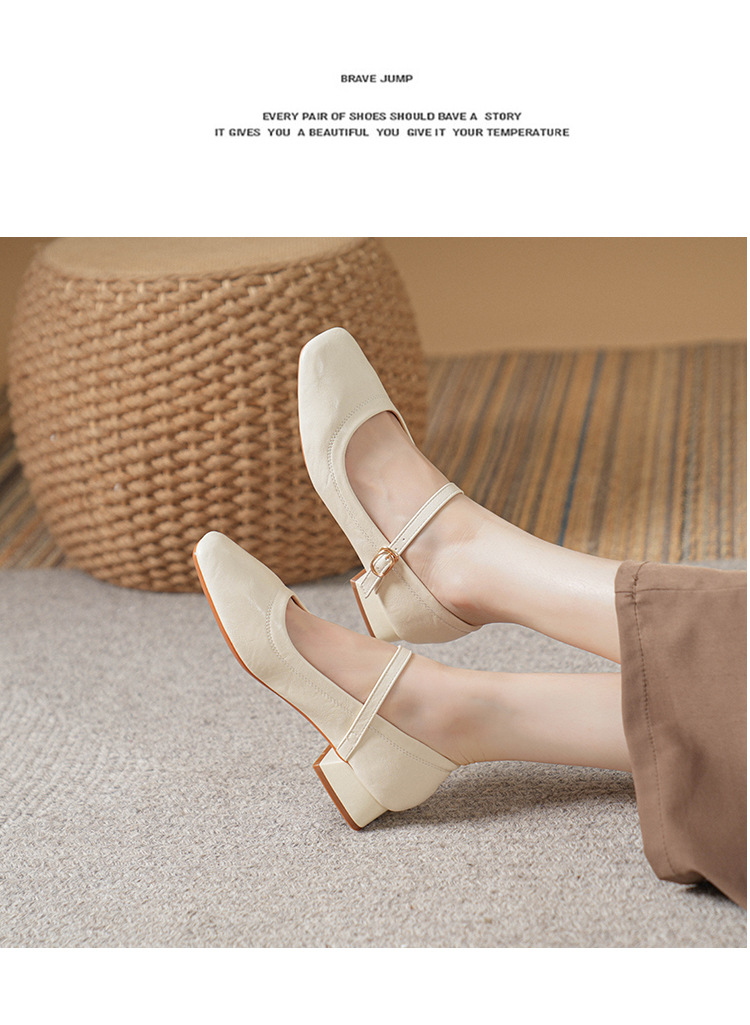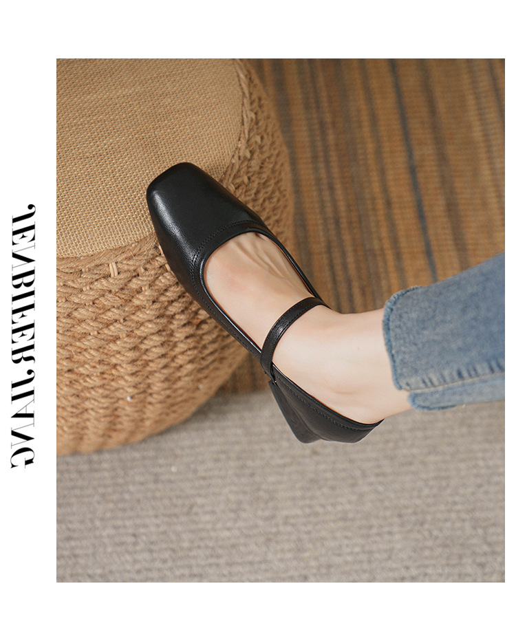 2023 새로운 프랑스 스타일 낮은 힐 스퀘어 토 얕은 입 싱글 신발 여성의 부드러운 바닥 플랫 신발 디자인 센스 니쉬 봄과 가을 패션