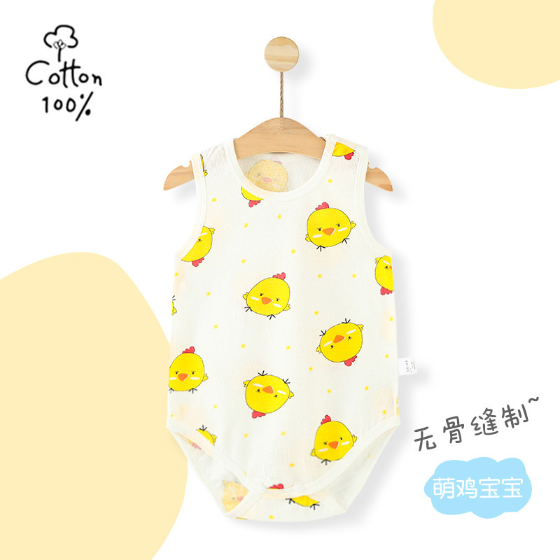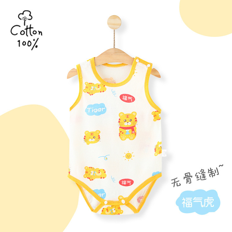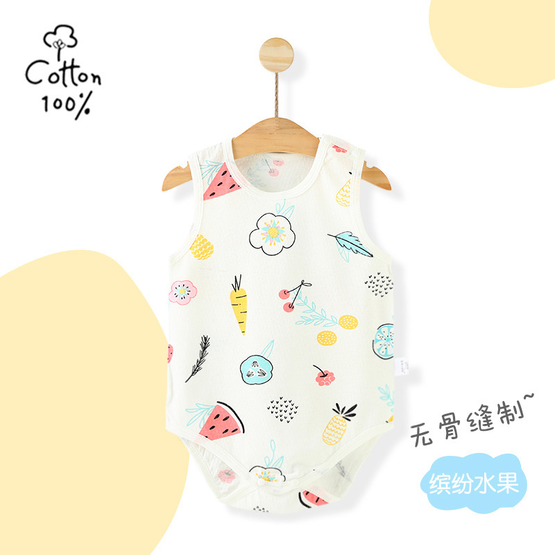 아기의 점프 수트 여름 얇은 순면 민소매 아기의 조끼 삼각형 모자 등반 세트 신생아 방귀 랩 여름스토어 가기