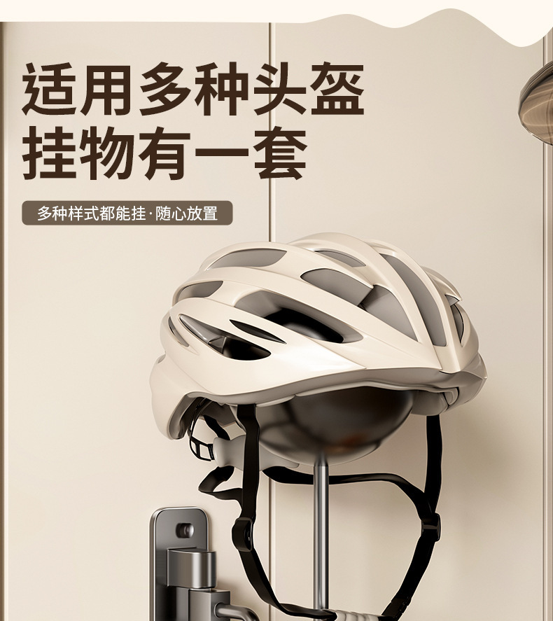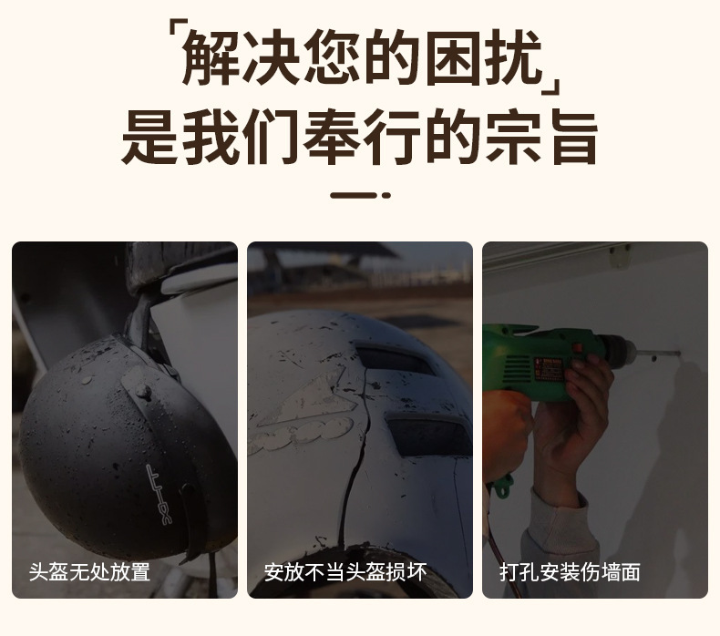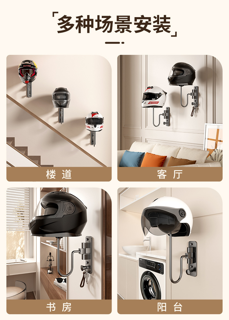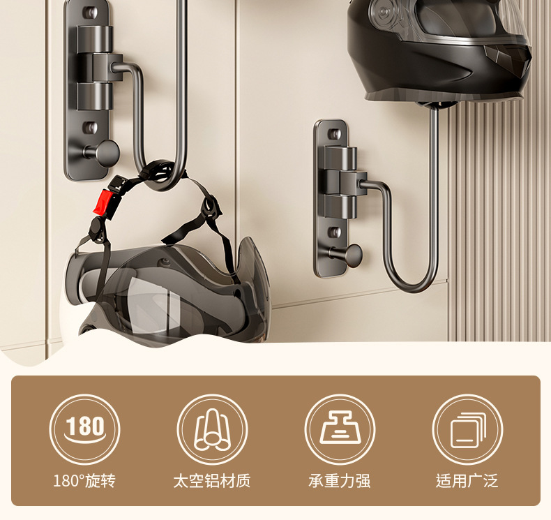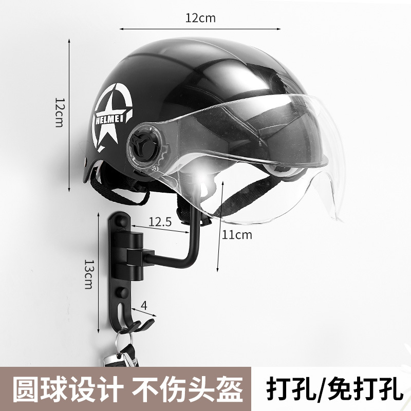 벽에 장착 된 오토바이 헬멧 랙은 다양한 헬멧 브래킷에 적합합니다. 천공되지 않은 디스플레이 랙 모자 보관 방지 변형
