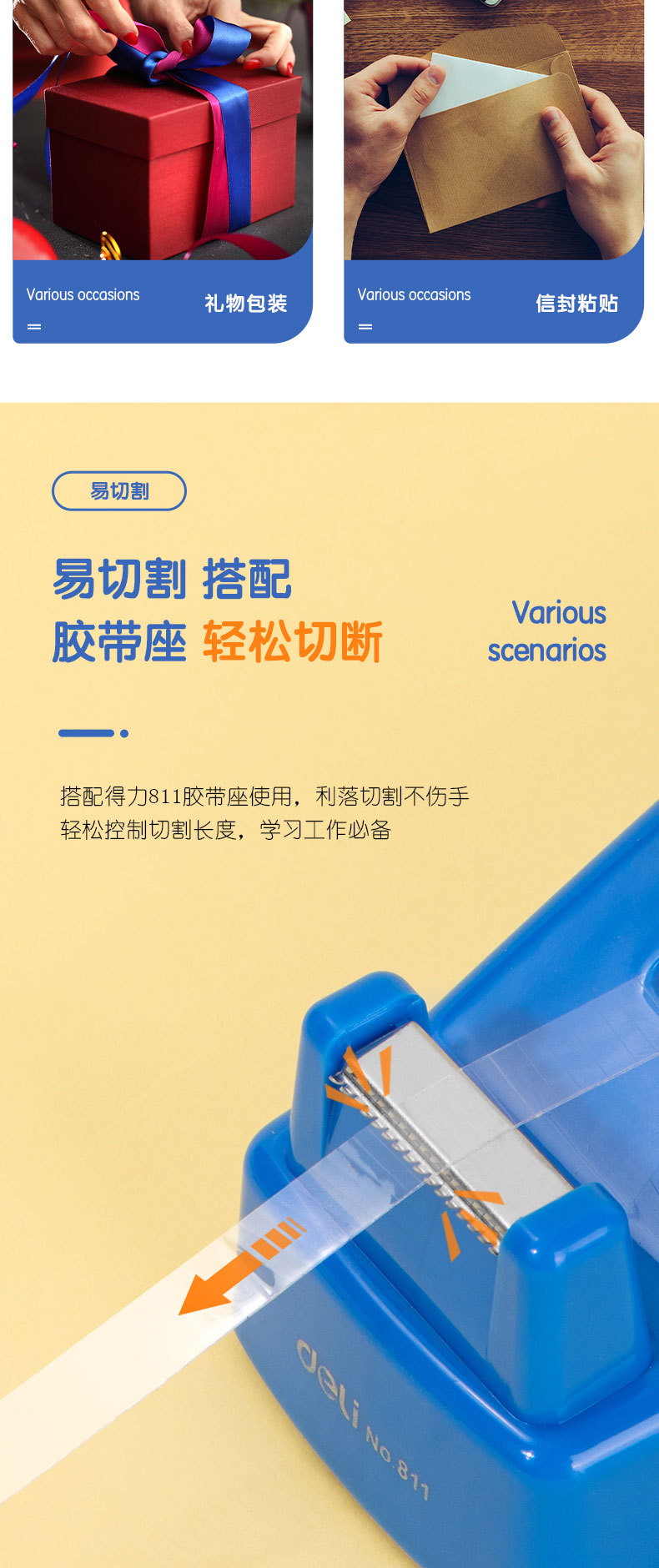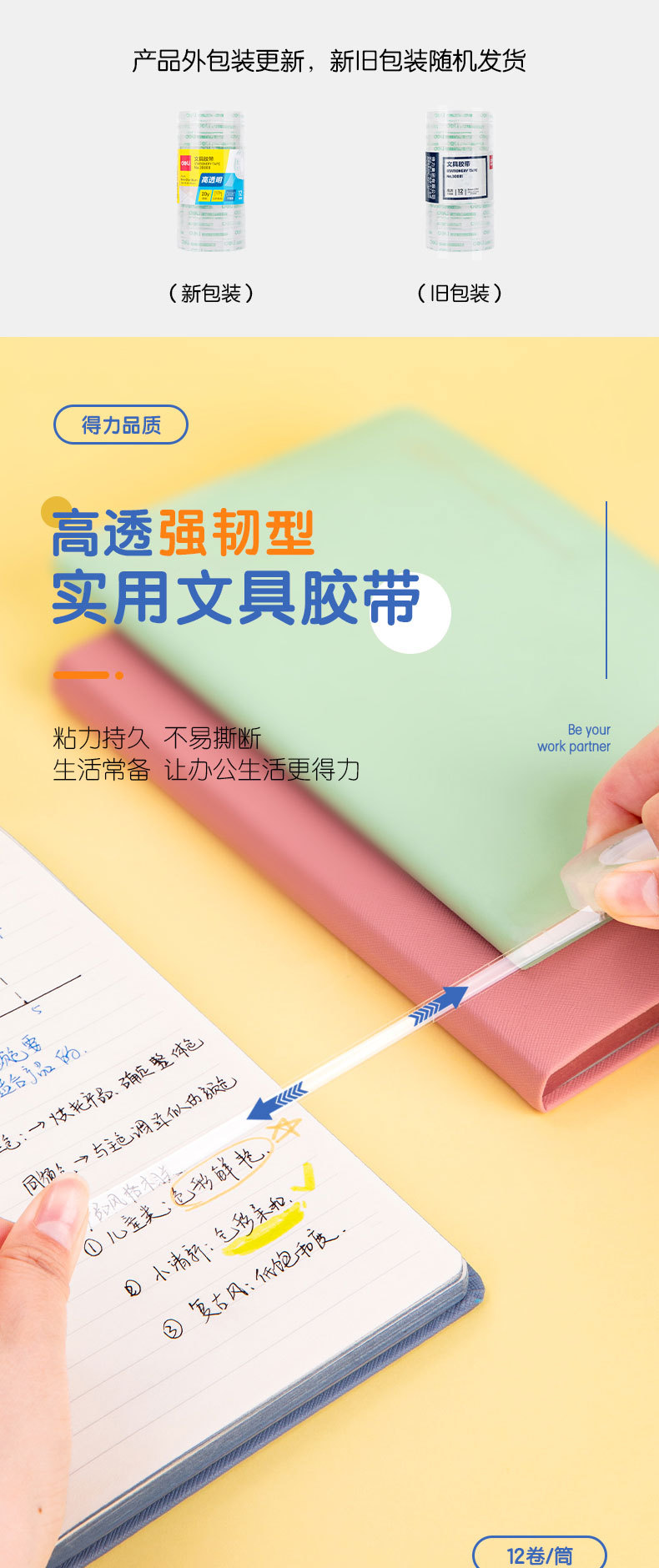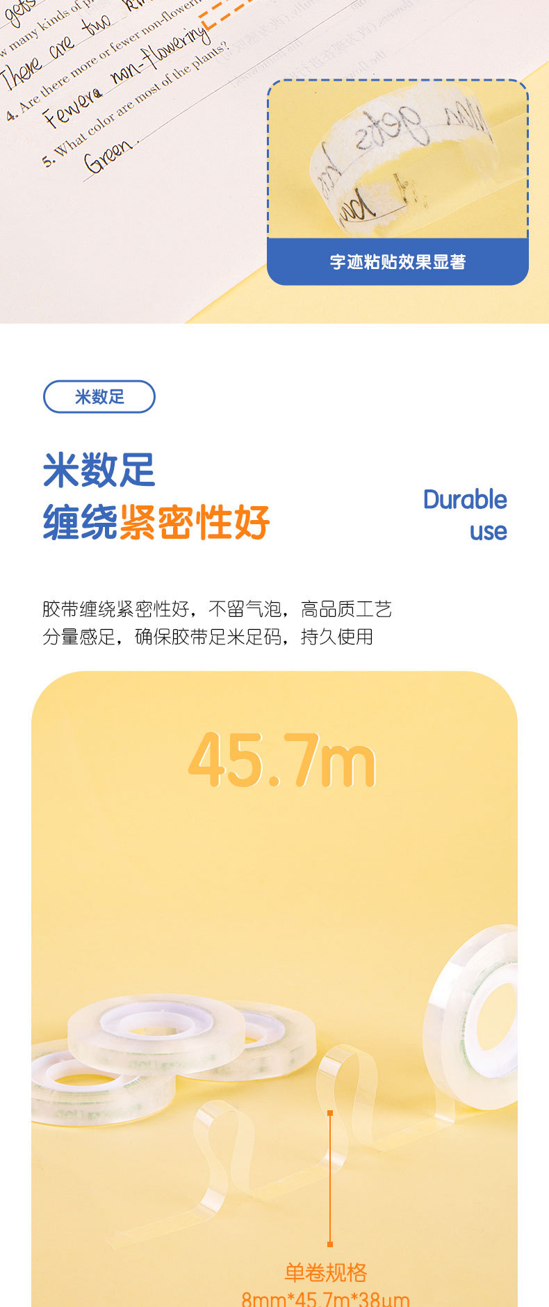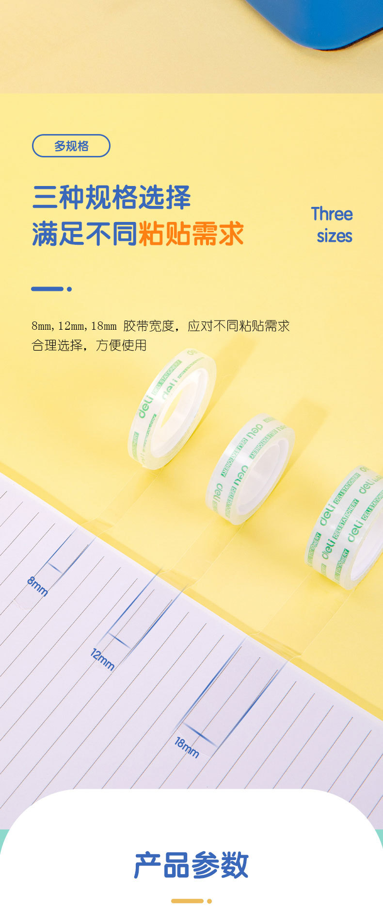 델리 30003 작은 테이프 8mm * 50y 투명 테이프 학생 문구 투명 테이프 강한 문구 테이프