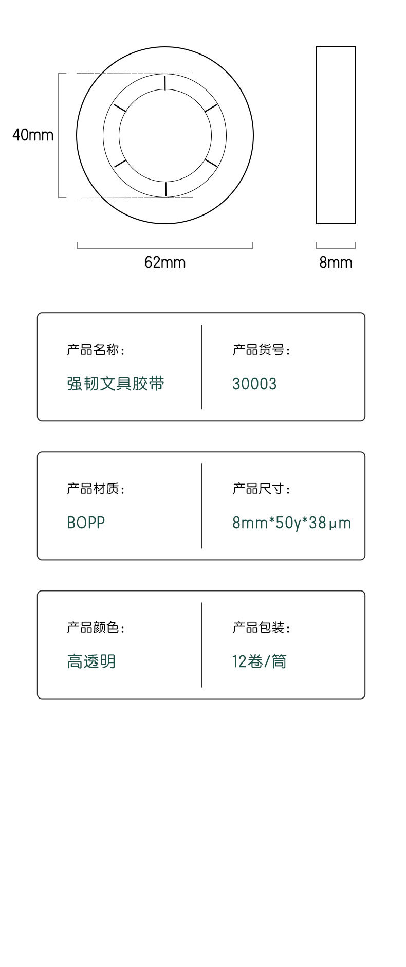 • 델리 30003 터프 문구 테이프 8mm * 50y * 38um (높은 투과성)(12 볼륨/튜브)