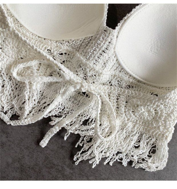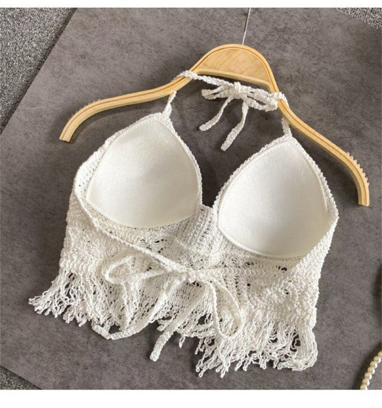가슴 패드가 달린 여자 여름 쇼트 탑 내리 키 어깨와 백리스 할로우 아웃 튜브 탑 자수 조끼가있는 작은 조끼스토어 가기