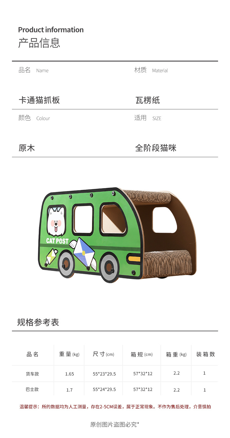 애완 동물 트럭 고양이 스크래치 보드 긁힘 방지 골판지는 고양이 둥지 높은 색상 가치 고양이 장난감 도매의 두 층을 잘 수 있습니다스토어 가기