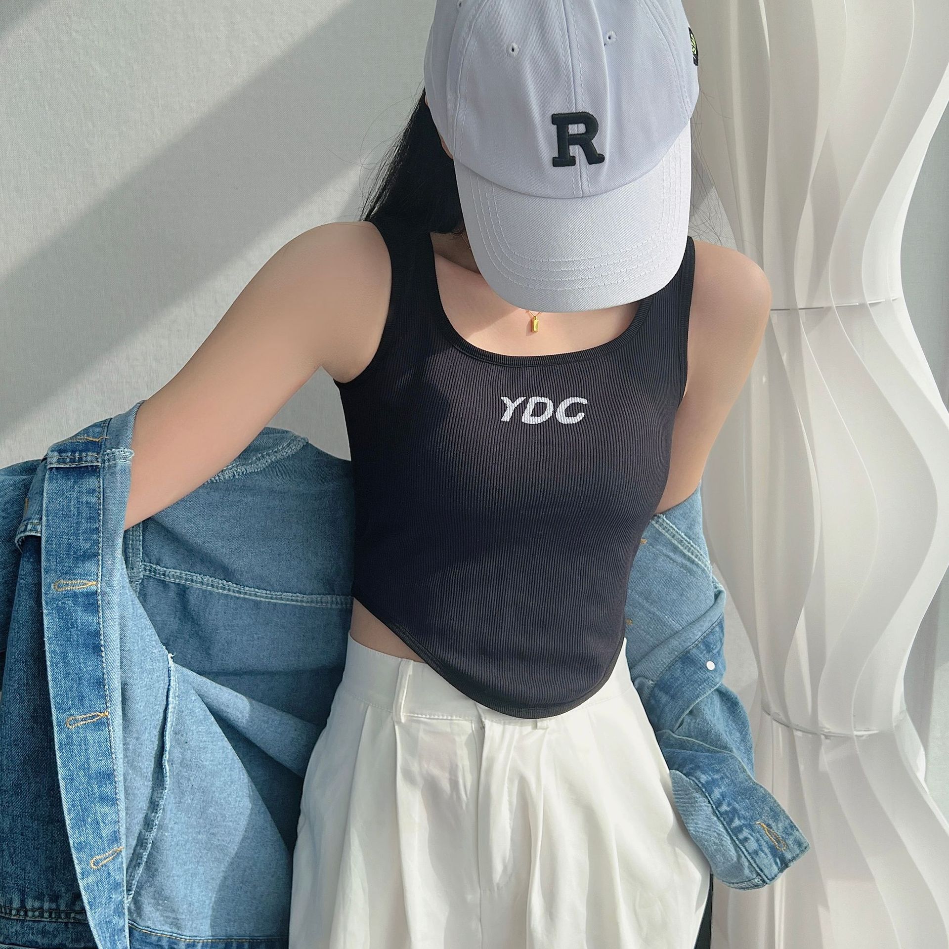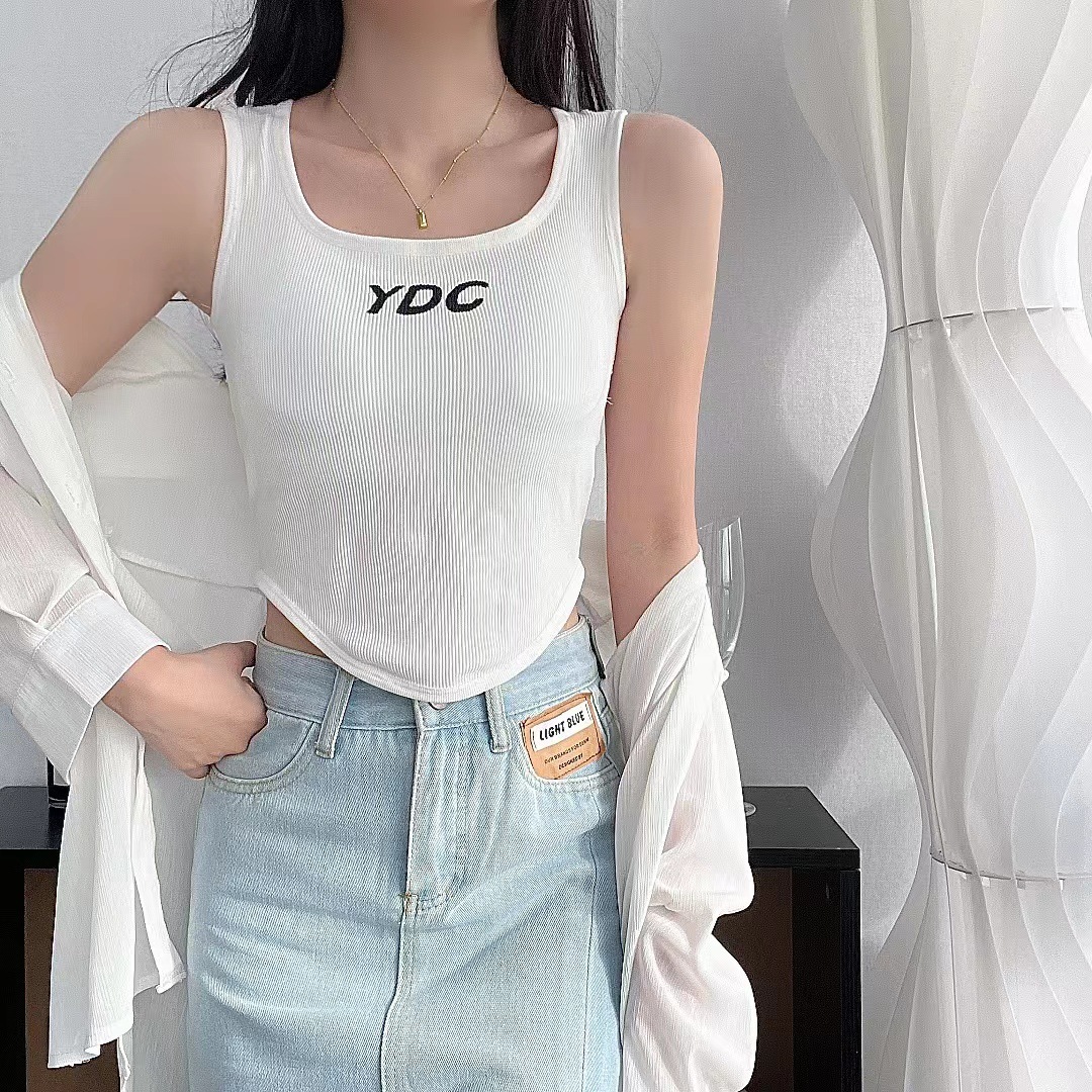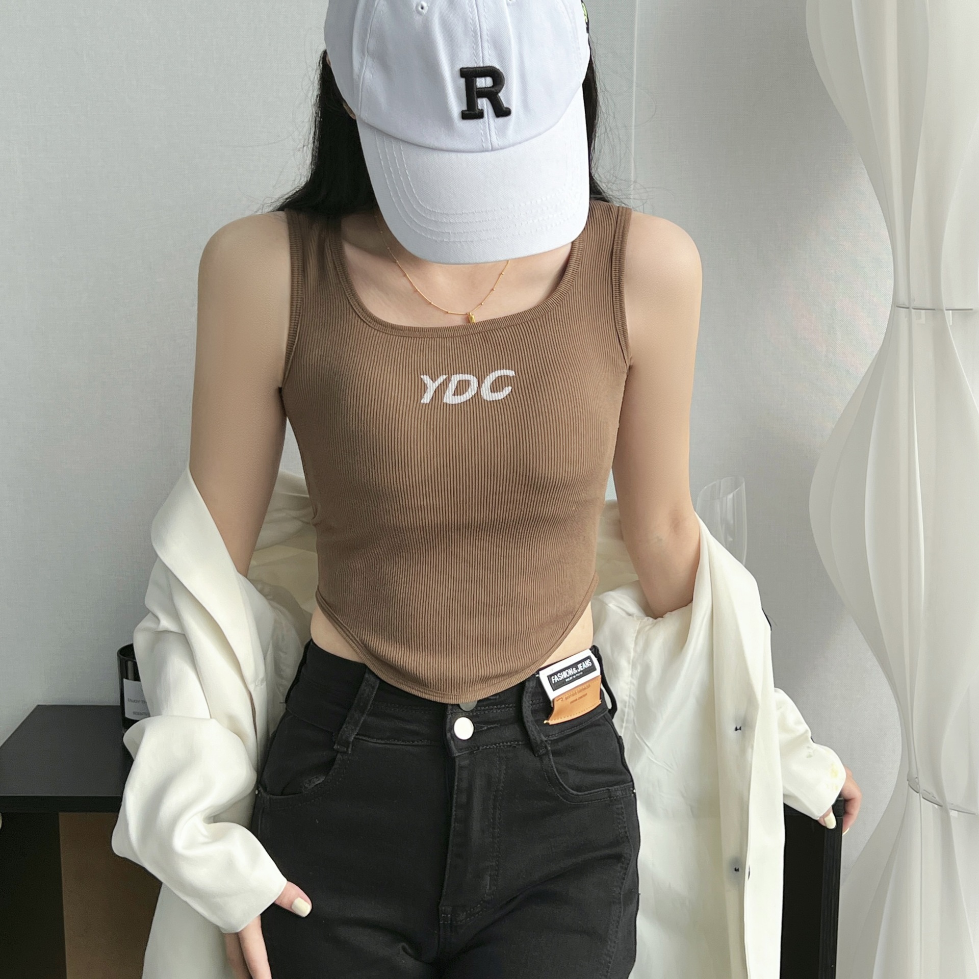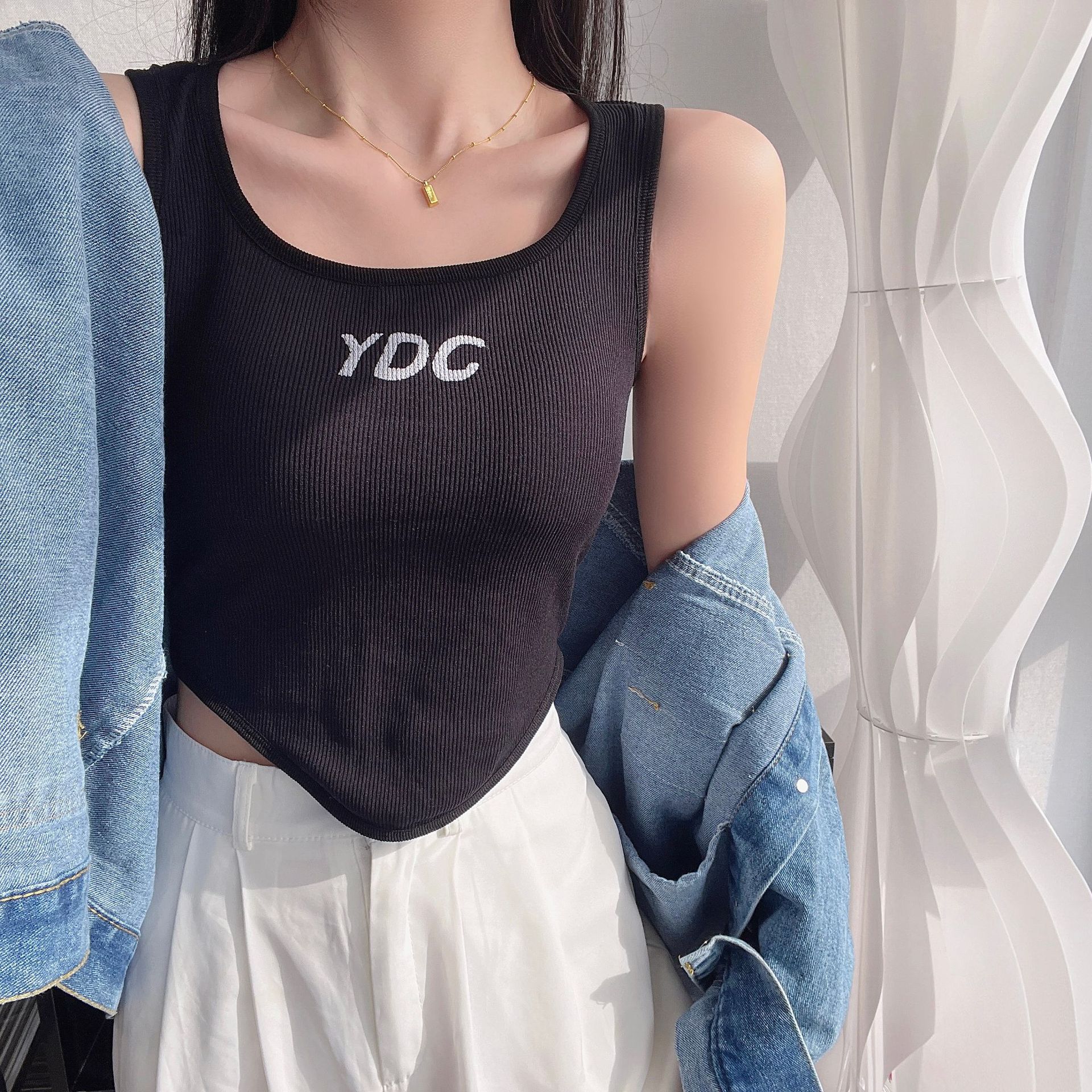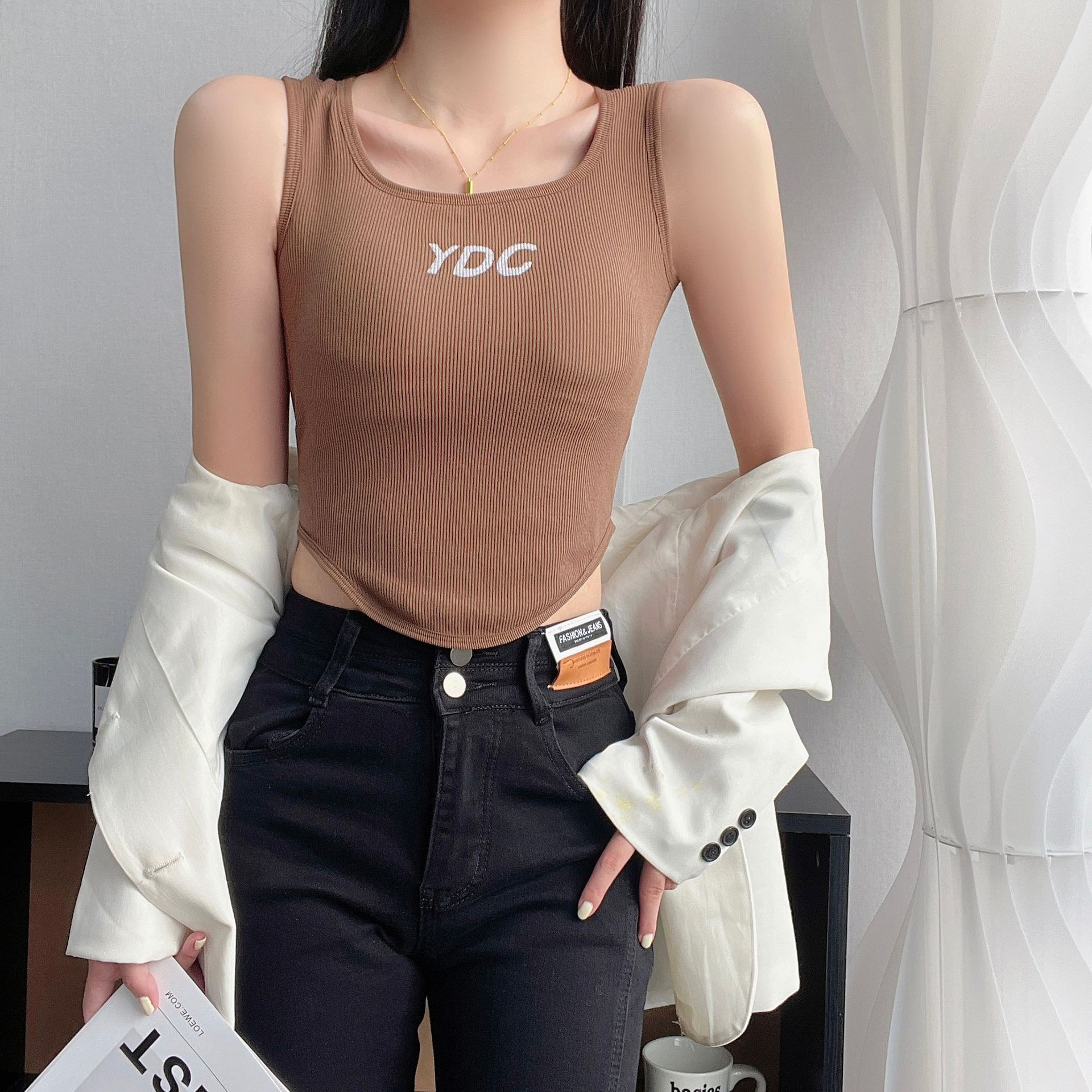 편안한 통기성 불규칙한 가슴 랩 착용을위한 편지 인쇄 소녀 카미 솔 원피스 고정 컵 푸시 업스토어 가기