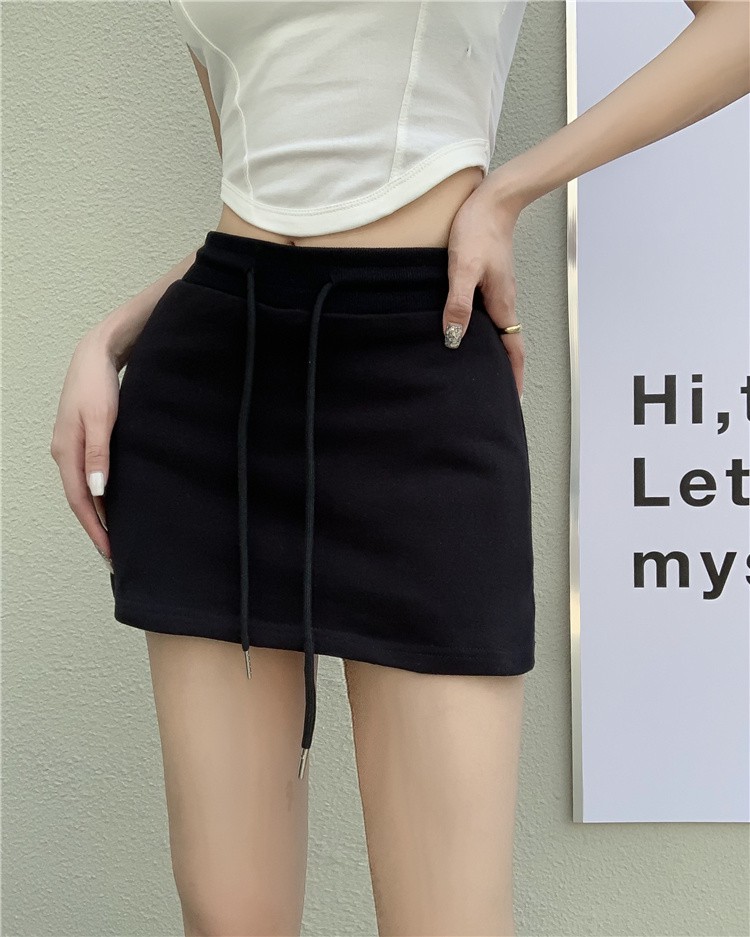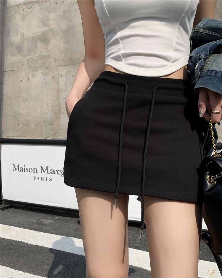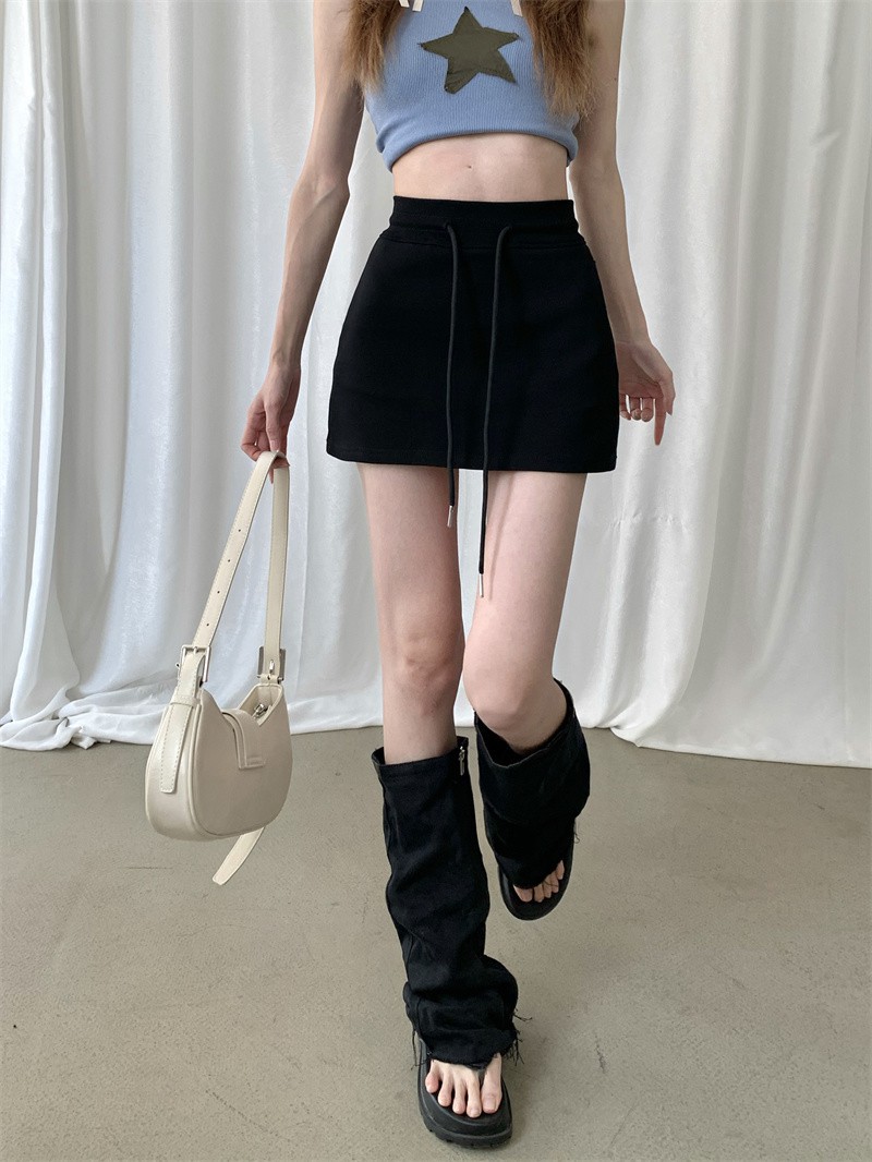 안전 바지를 입은 힙합 미니 스커트 레이스 업 2024 여름 스커트 슬림 핏 슬림 핏 스커트 A 라인 스커트