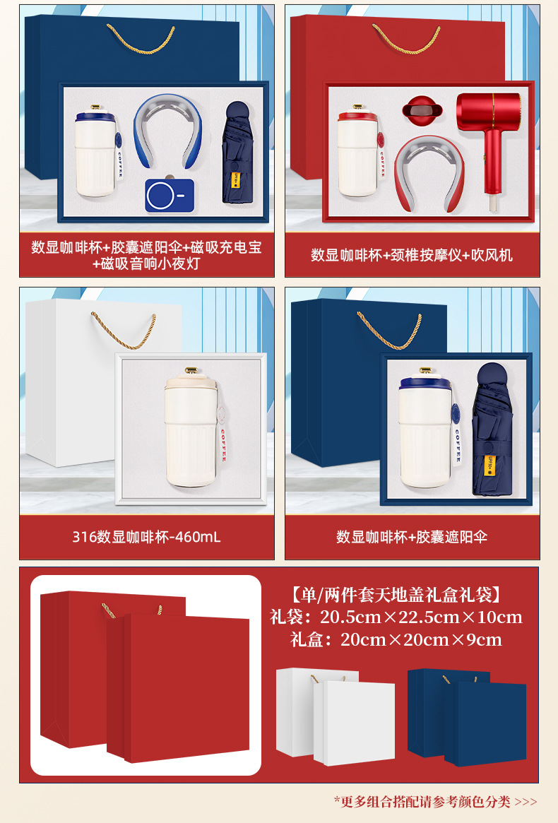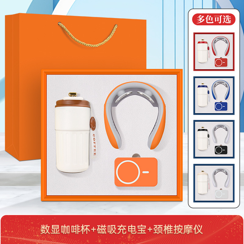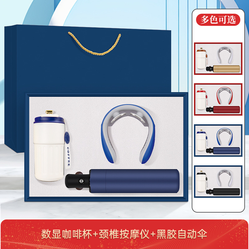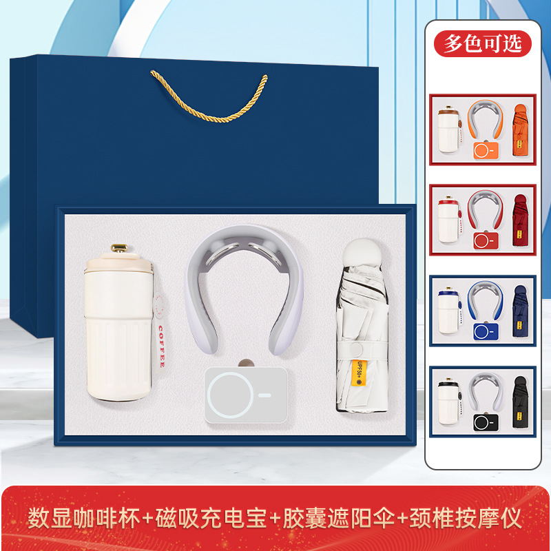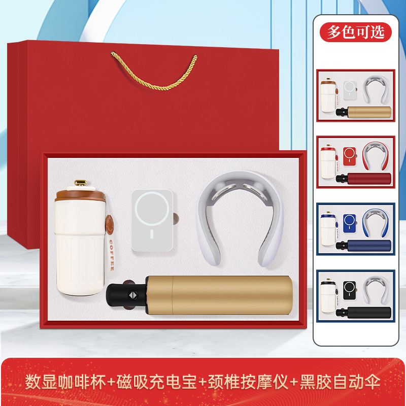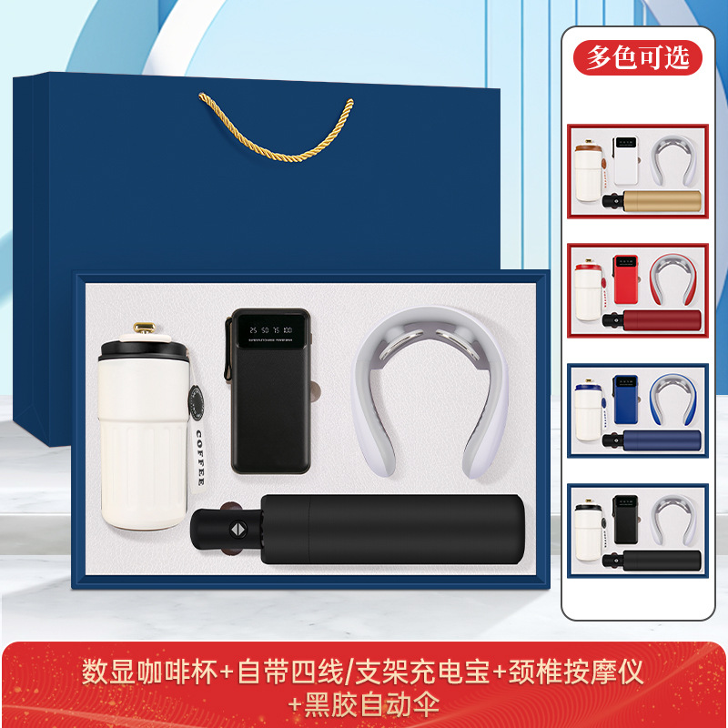 • 커피컵 + 3C 유선 충전 보조 배터리 + 목 마사지기 + 블랙 코팅 자동 우산