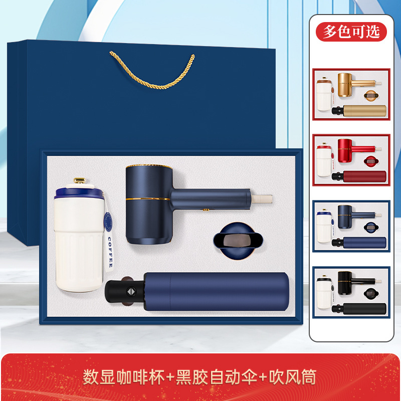 • 커피 머그 + 헤어 드라이어 + 3C 유선 보조 배터리 + 블랙 코팅 자동 우산