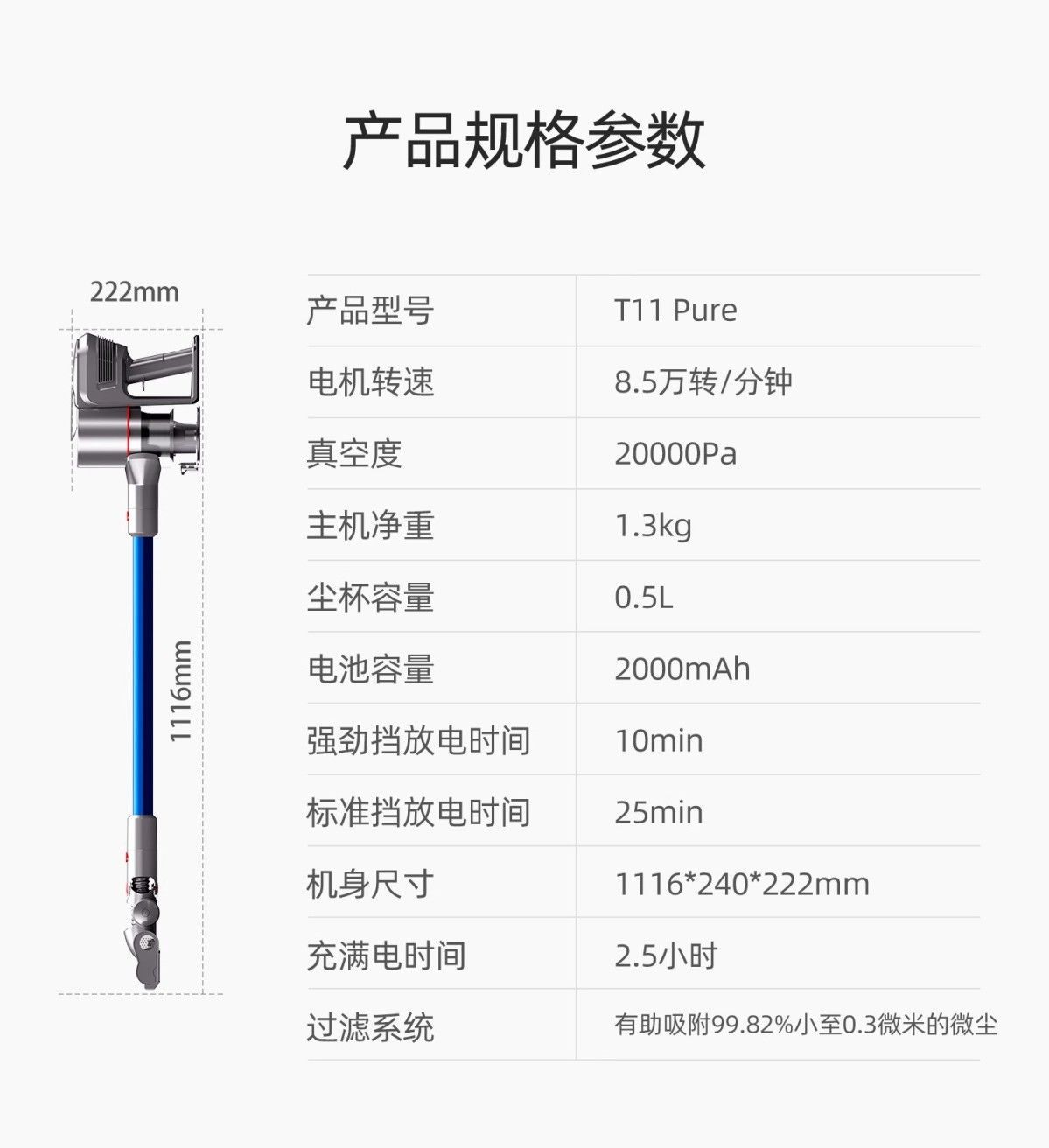 [새로운 스타터] 강아지 무선 진공 청소기 가정용 강력한 경량 소형 진공 청소기 T11 순수