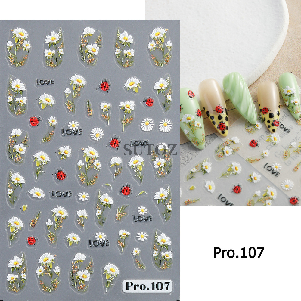 2024 철자 저녁 새로운 네일 아트 스티커 여름 신선한 꽃 꿀벌 무당 벌레 못 다시 접착 스티커스토어 가기