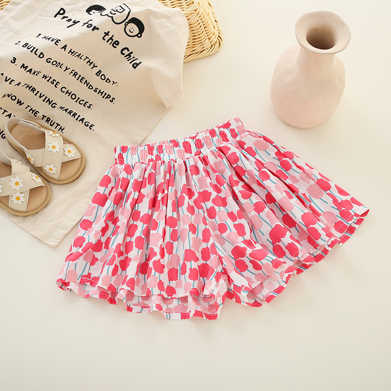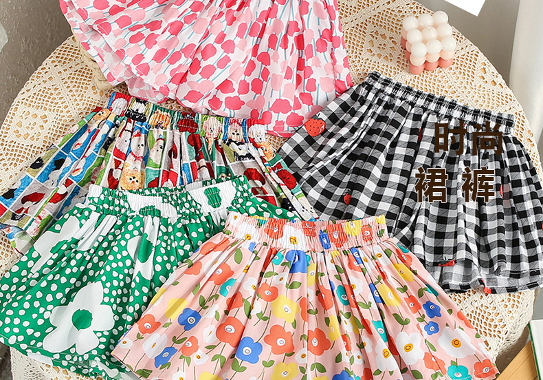 소녀 반바지 여름 얇은 아동복 올매치 캐주얼 루즈 코튼 소녀 패션 세련된 주름 치마 바지