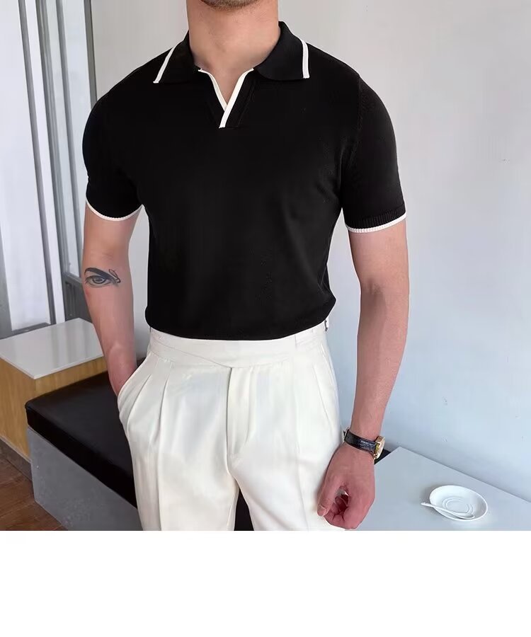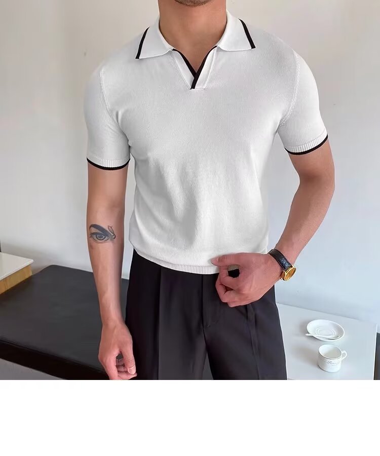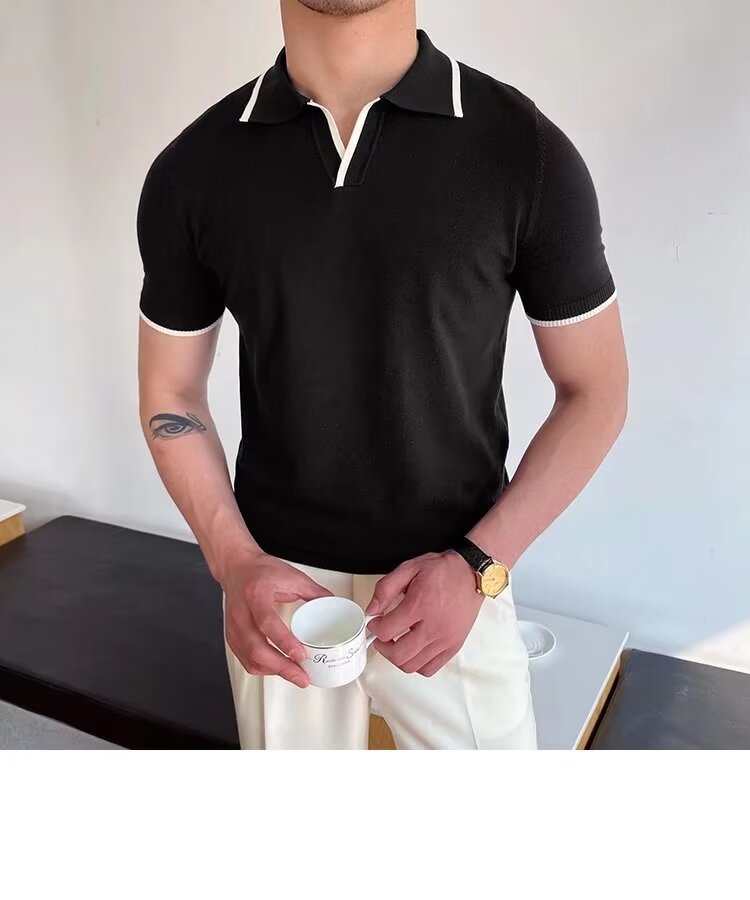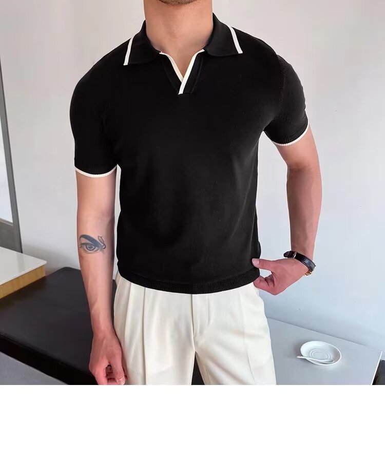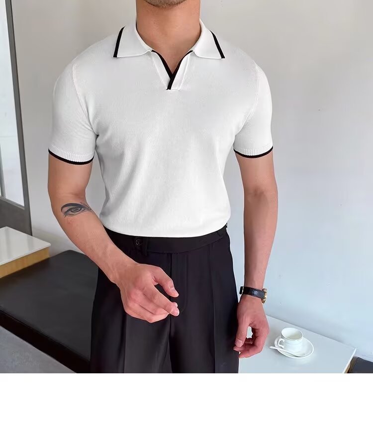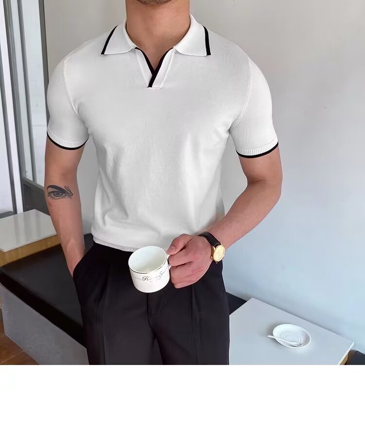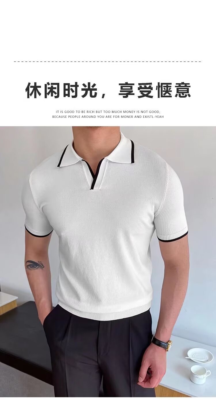 여름 남자 니트 반팔 폴로 셔츠 한국식 슬림핏 솔리드 컬러 아이스 실크 캐주얼 라리 반소매 티셔츠베이스 셔츠