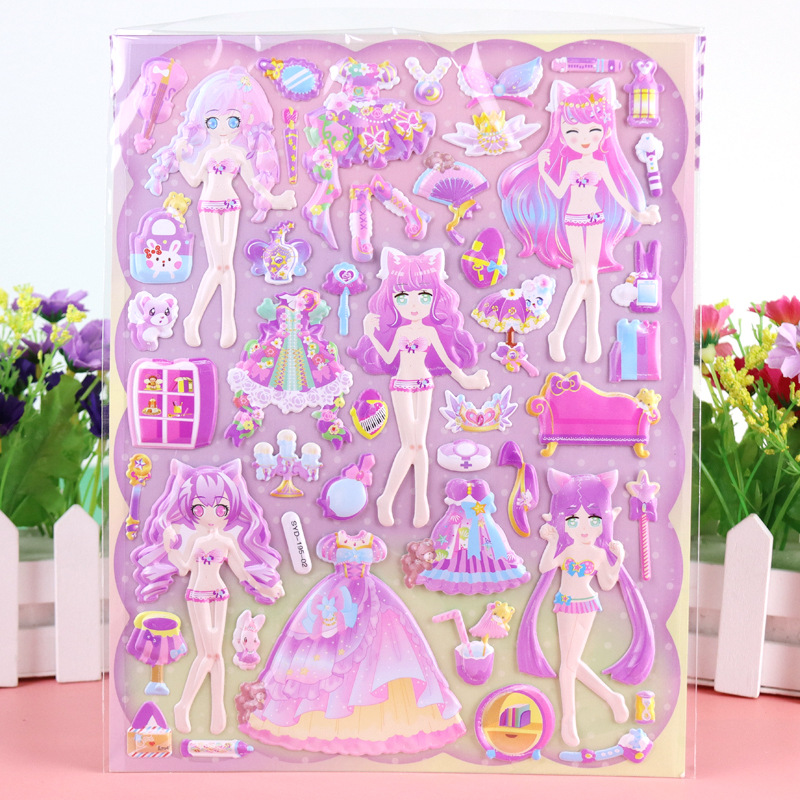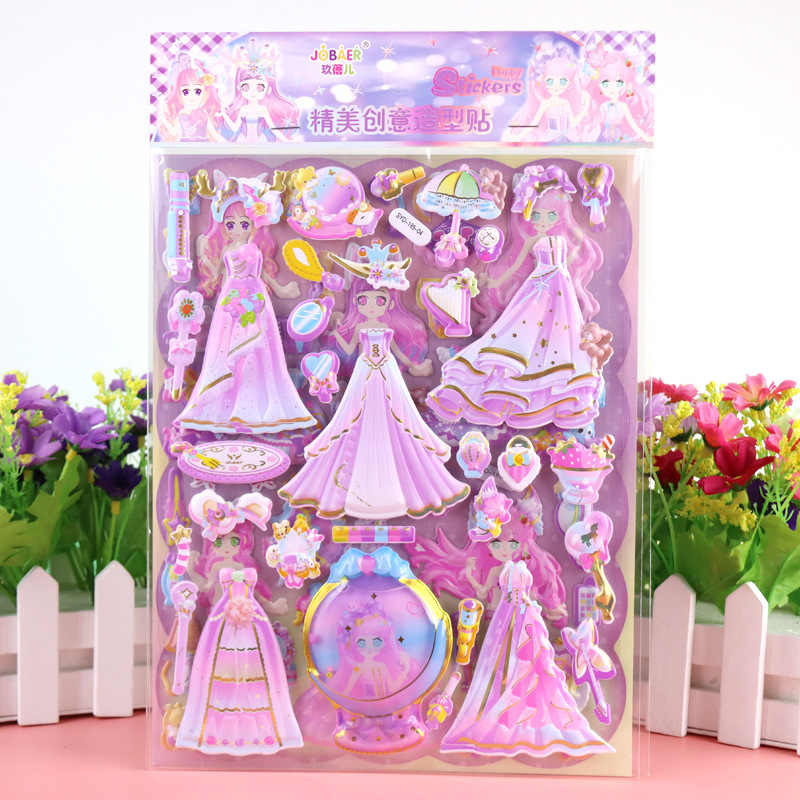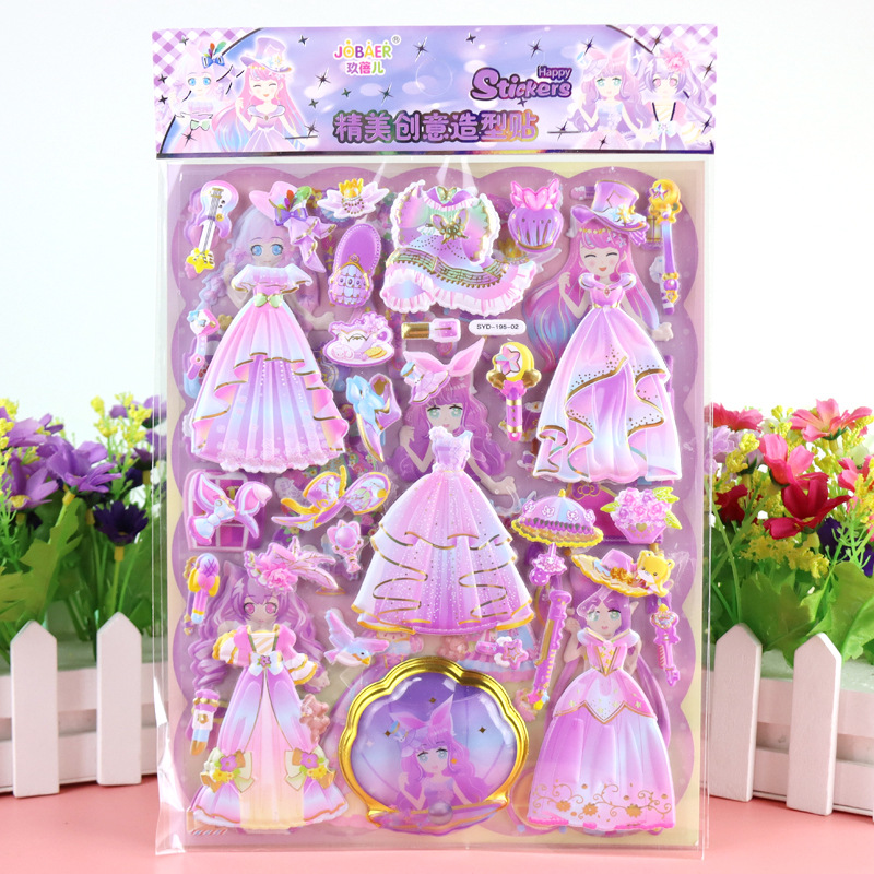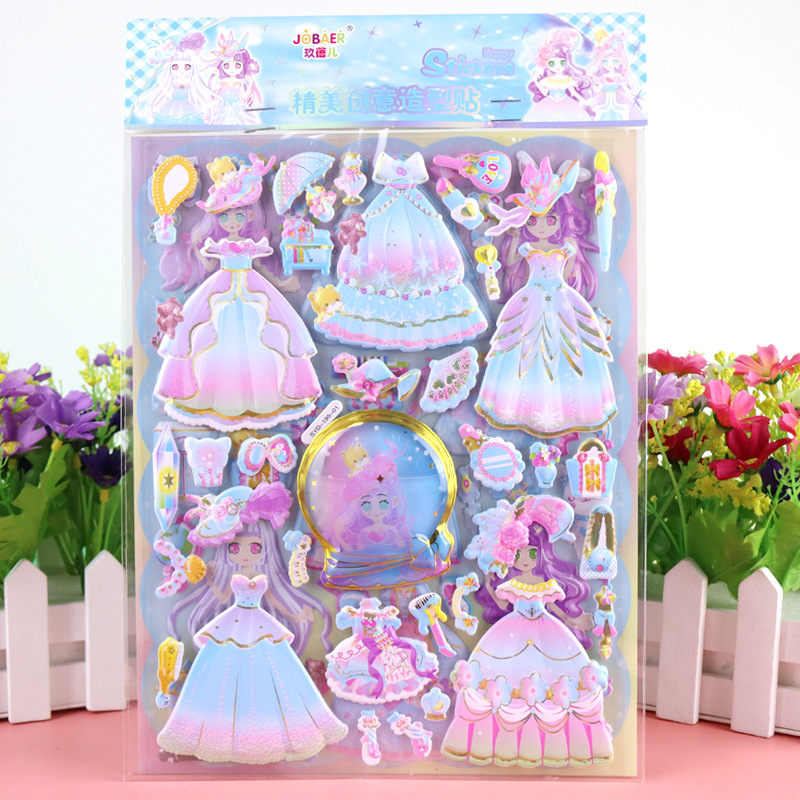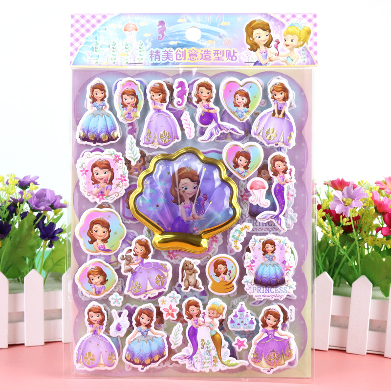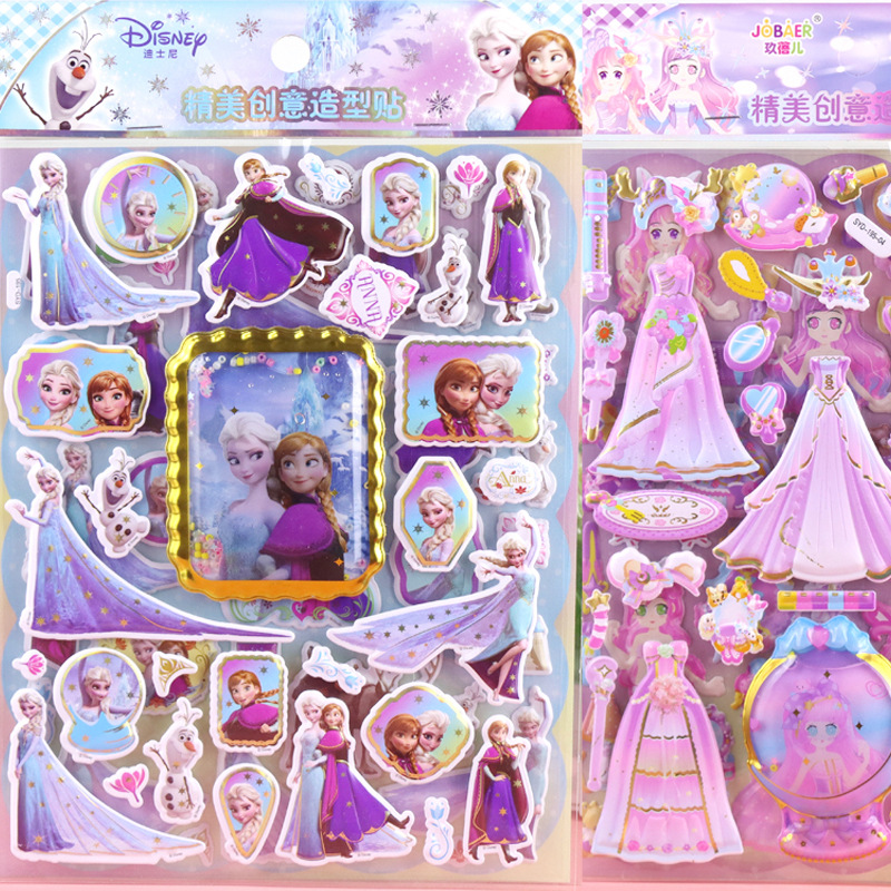 냉동 공주 소피아 어린이 만화 3 차원 드레싱 원피스 더블 레이어 물 스티커 소녀 폼 스티커스토어 가기