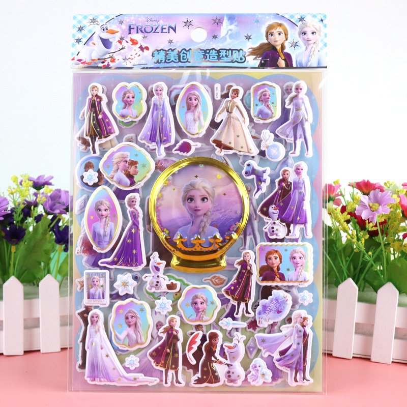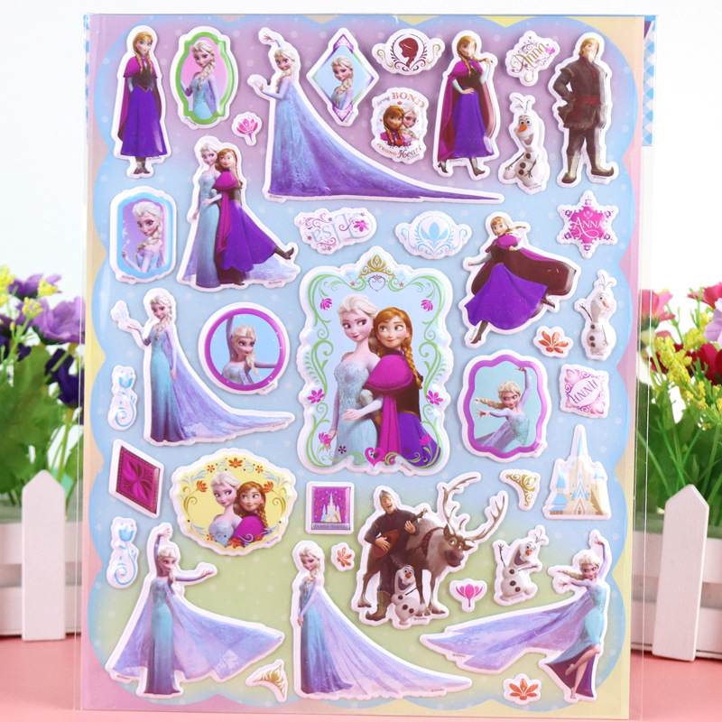 냉동 공주 소피아 어린이 만화 3 차원 드레싱 원피스 더블 레이어 물 스티커 소녀 폼 스티커