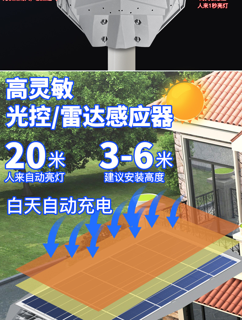 2024 새로운 태양 야외 정원 조명 홈 야외 방수 유도 새로운 농촌 조명 led 가로등