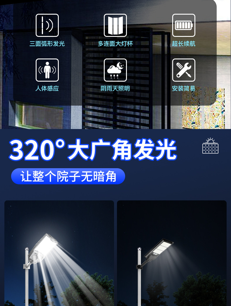 2024 새로운 태양 야외 정원 조명 홈 야외 방수 유도 새로운 농촌 조명 led 가로등스토어 가기