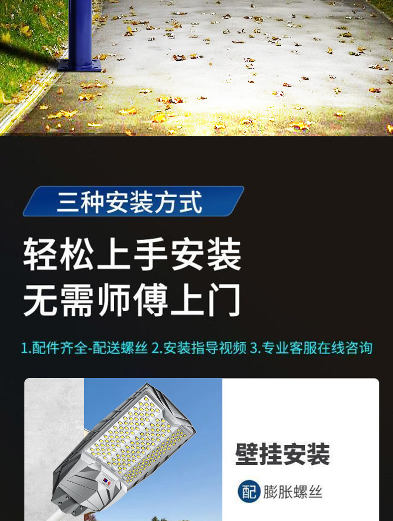 • 10 년 보증 (가로등 기둥 포함) 및 후면 커버