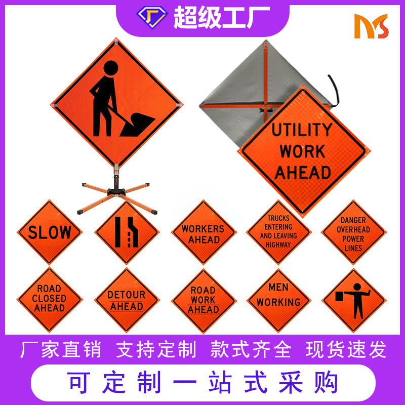 국경 간 무역 알루미늄 판 오렌지 도로 건설 안전 간판 사각형 감속 간판 대외 무역 깃발 건설 간판스토어 가기