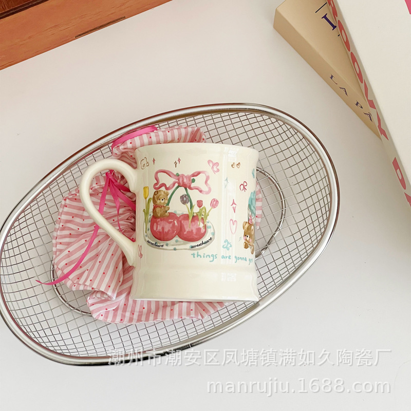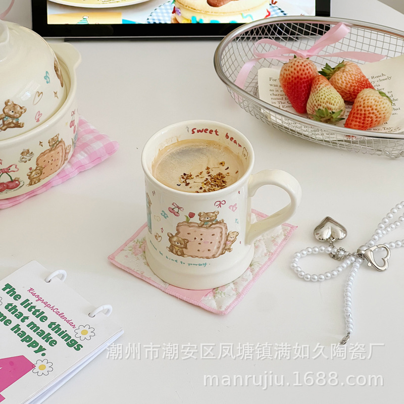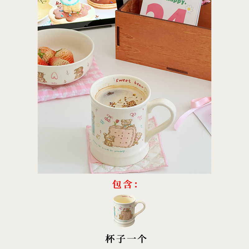 오래 된 곰 비스킷 세라믹 머그잔 귀여운 손으로 그린 크림 바람 아침 우유 커피 컵 커플 컵으로 천천히