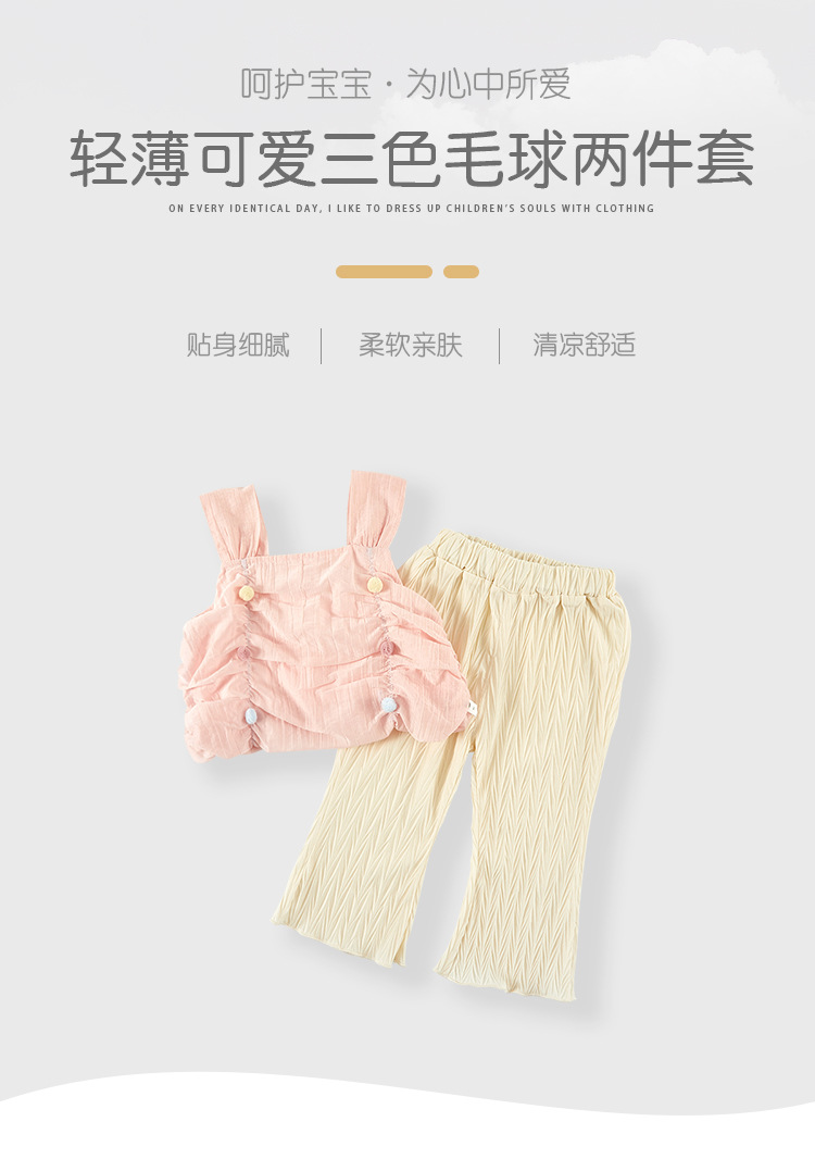 여름 소녀 정장 귀엽고 달콤한 컬러풀한 볼 스트랩 민소매 탑 와이드 팬츠 투피스 세트 아기 옷스토어 가기