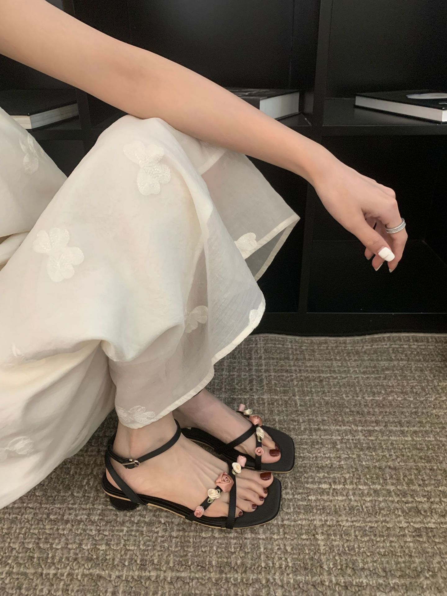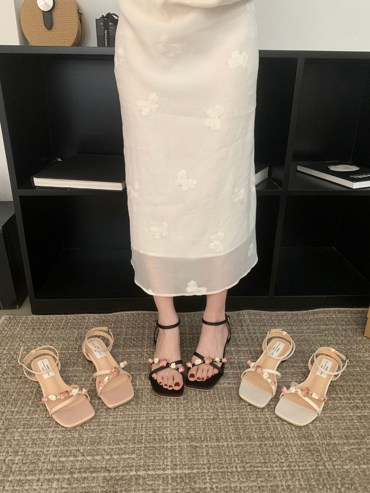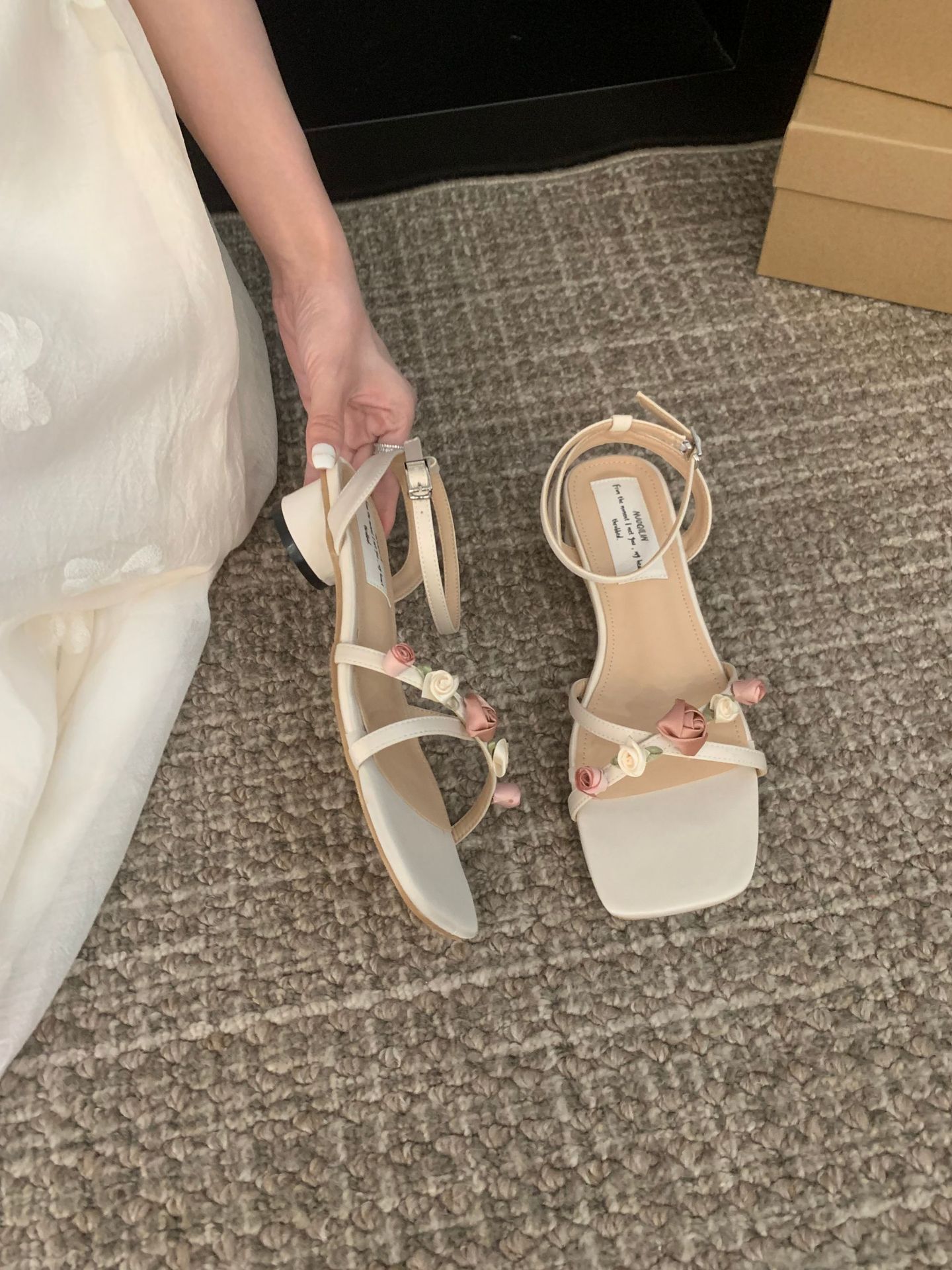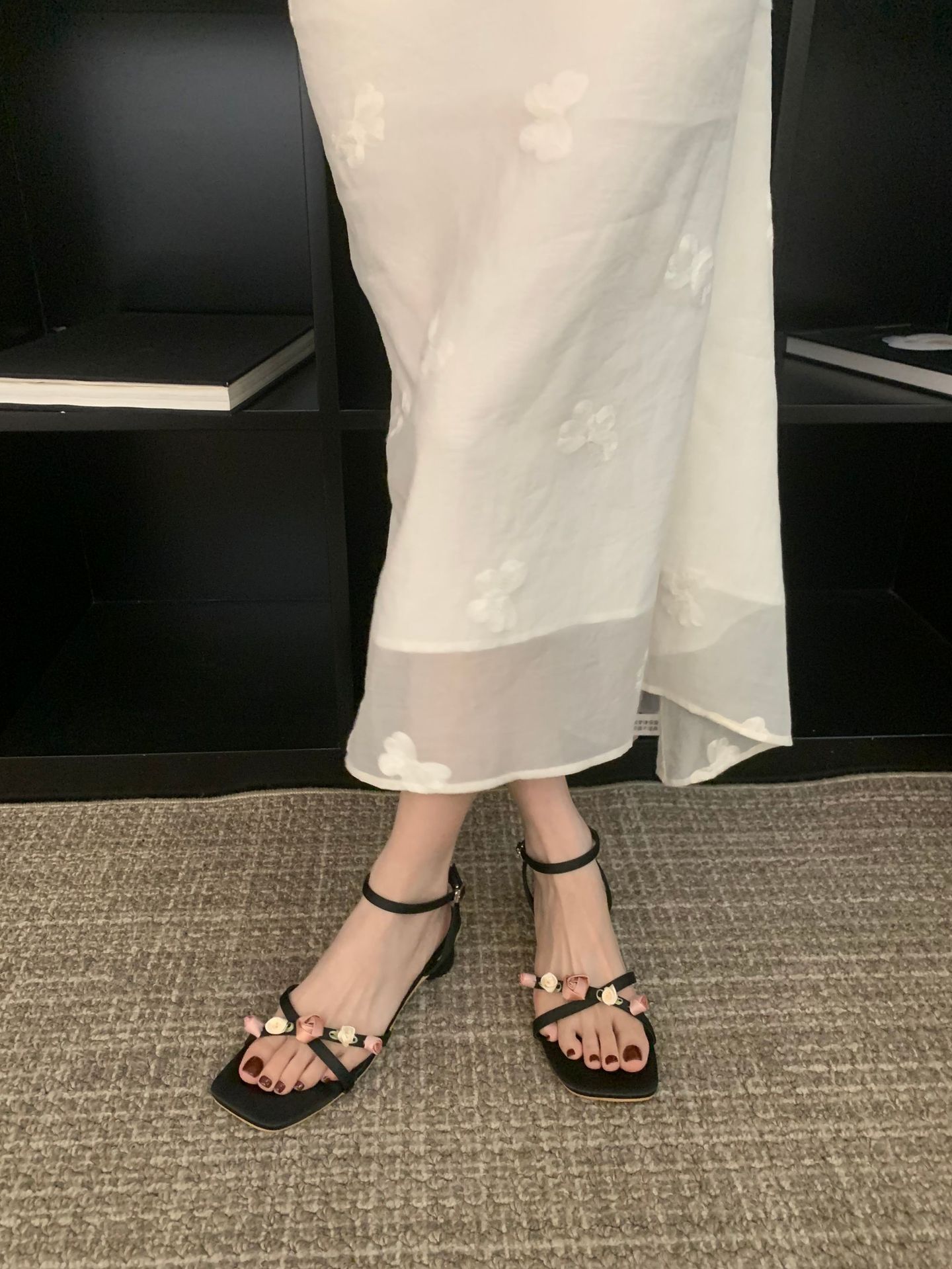 봄과 가을 2024 새로운 스타일 한 캐릭터 버클 스트랩 청키 힐링 샌들 의상 디자인 저힐링 라인스톤 패션 샌들 여성용스토어 가기