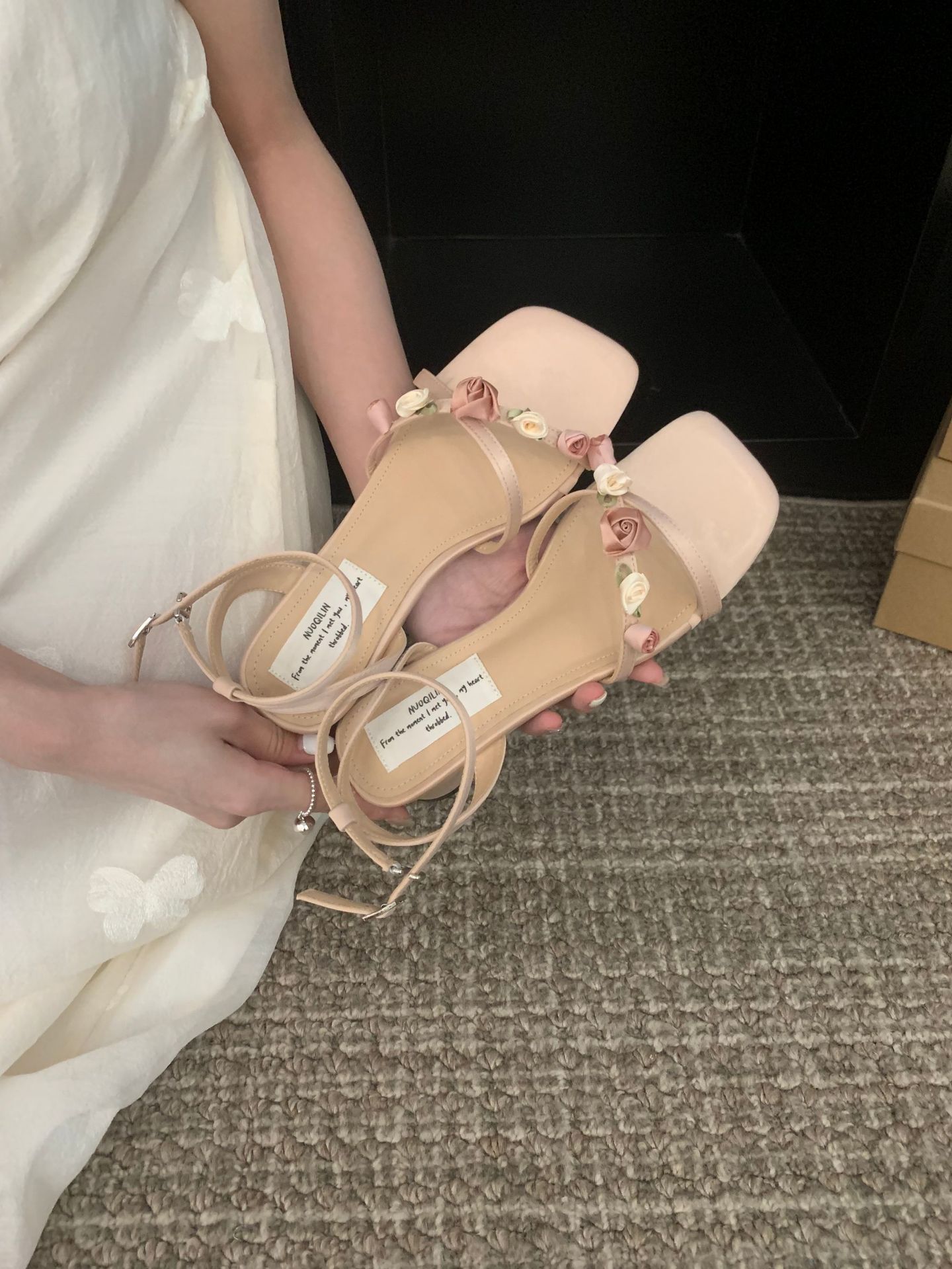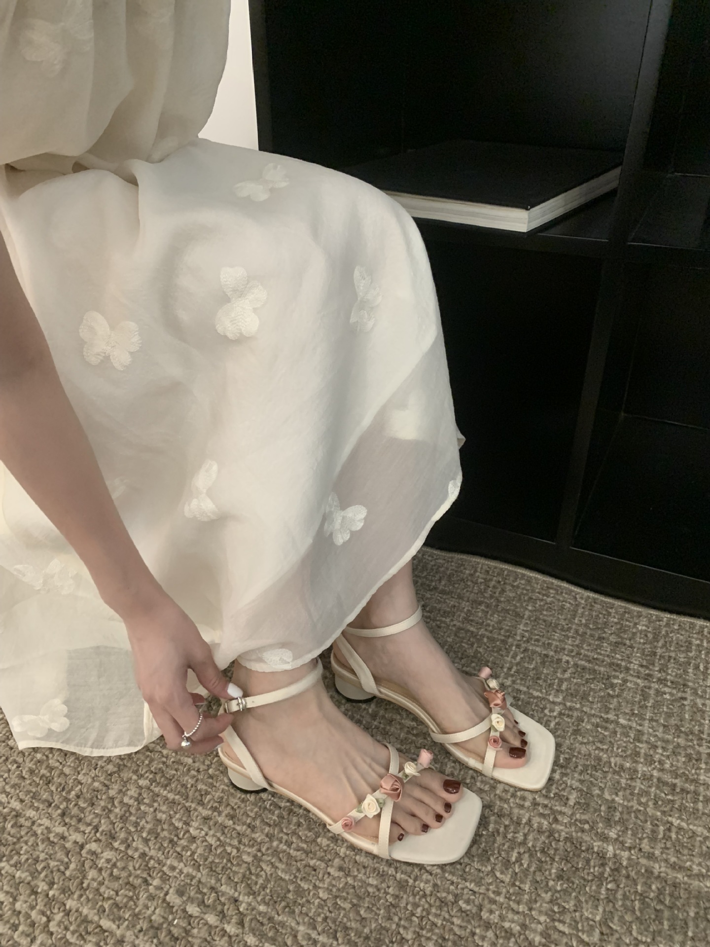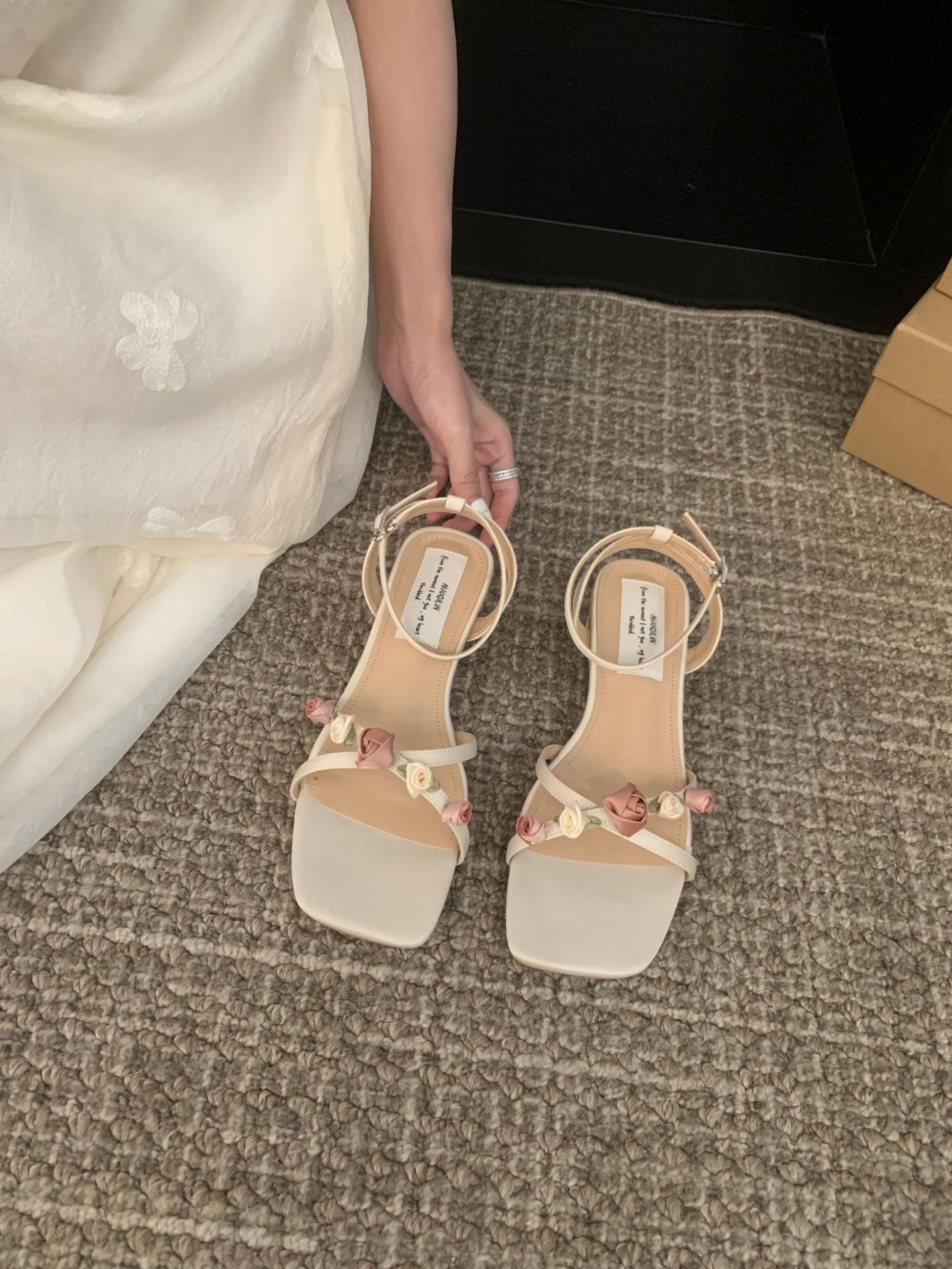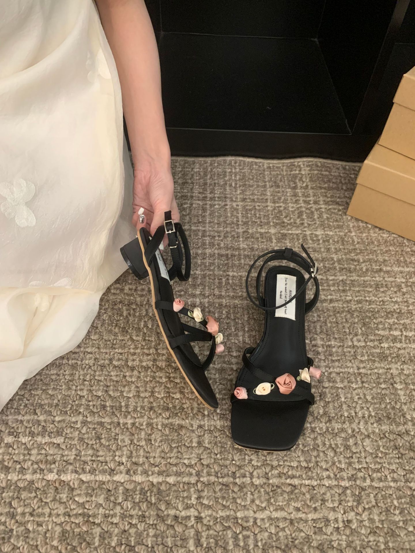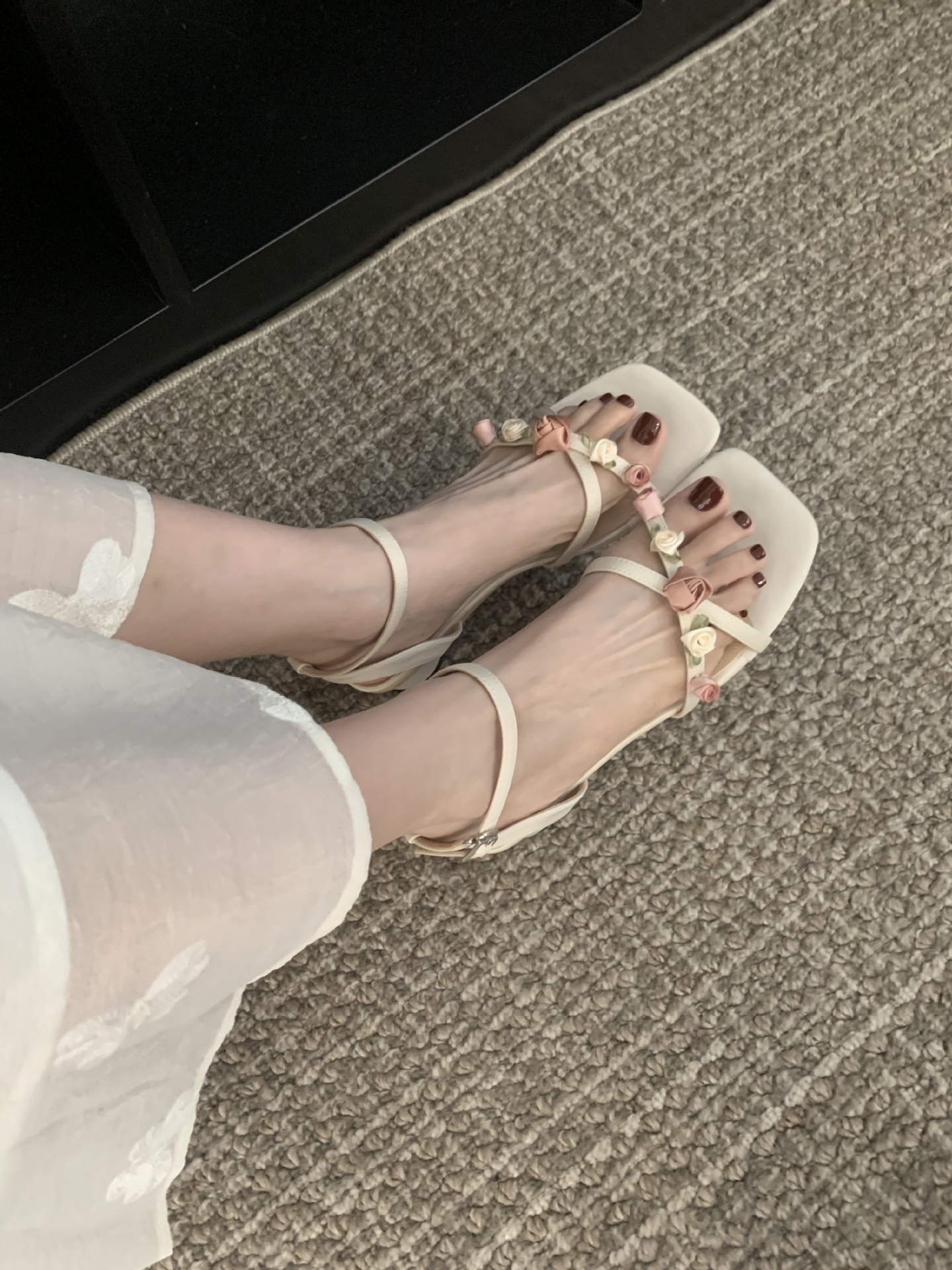 봄과 가을 2024 새로운 스타일 한 캐릭터 버클 스트랩 청키 힐링 샌들 의상 디자인 저힐링 라인스톤 패션 샌들 여성용스토어 가기