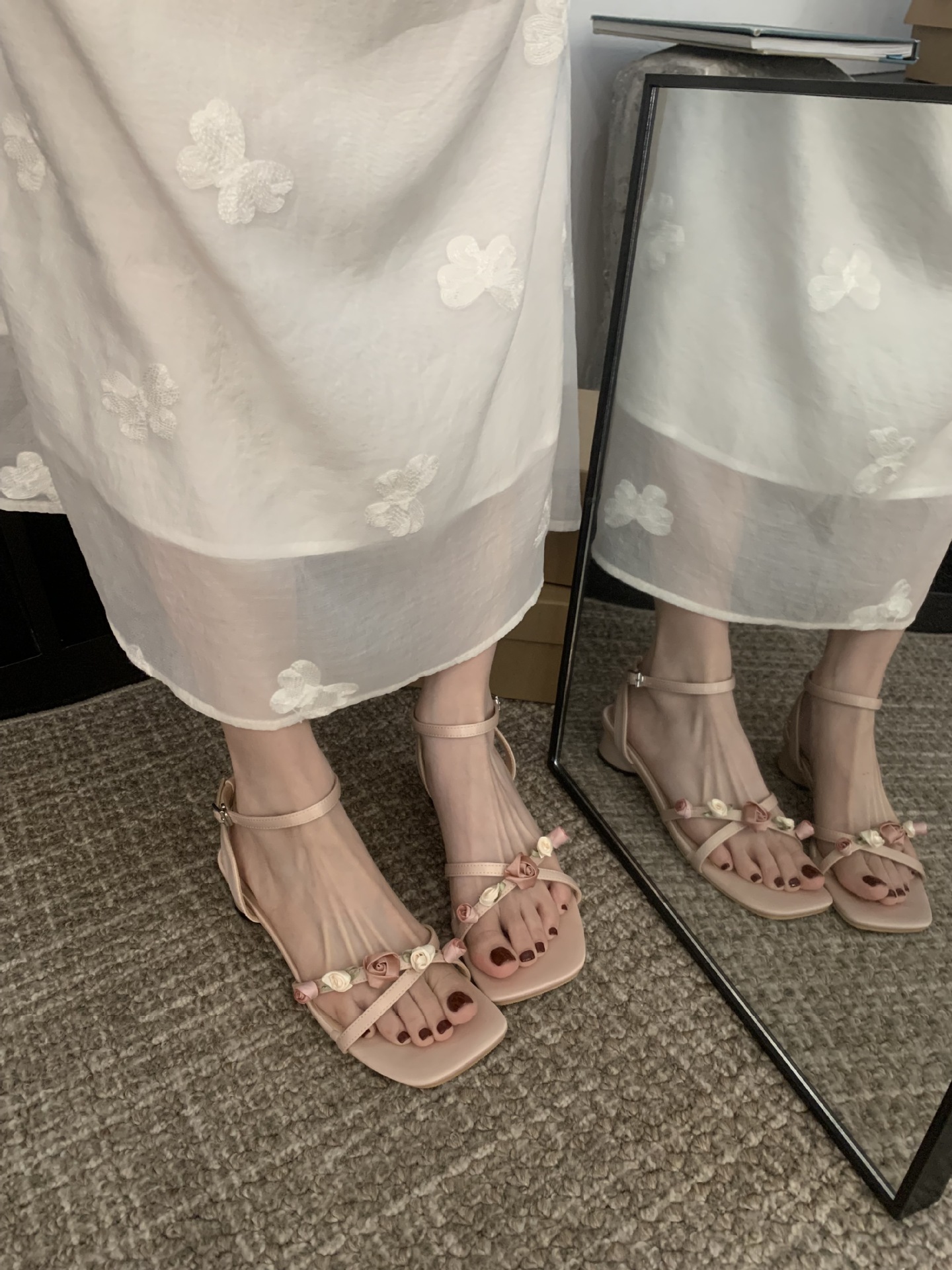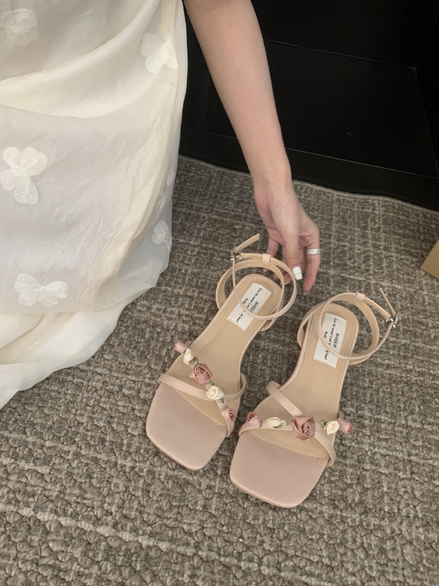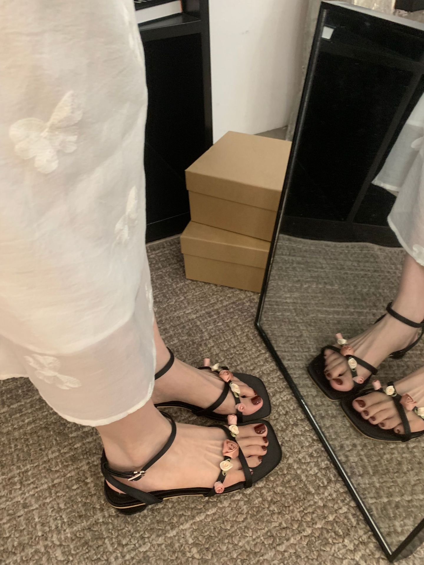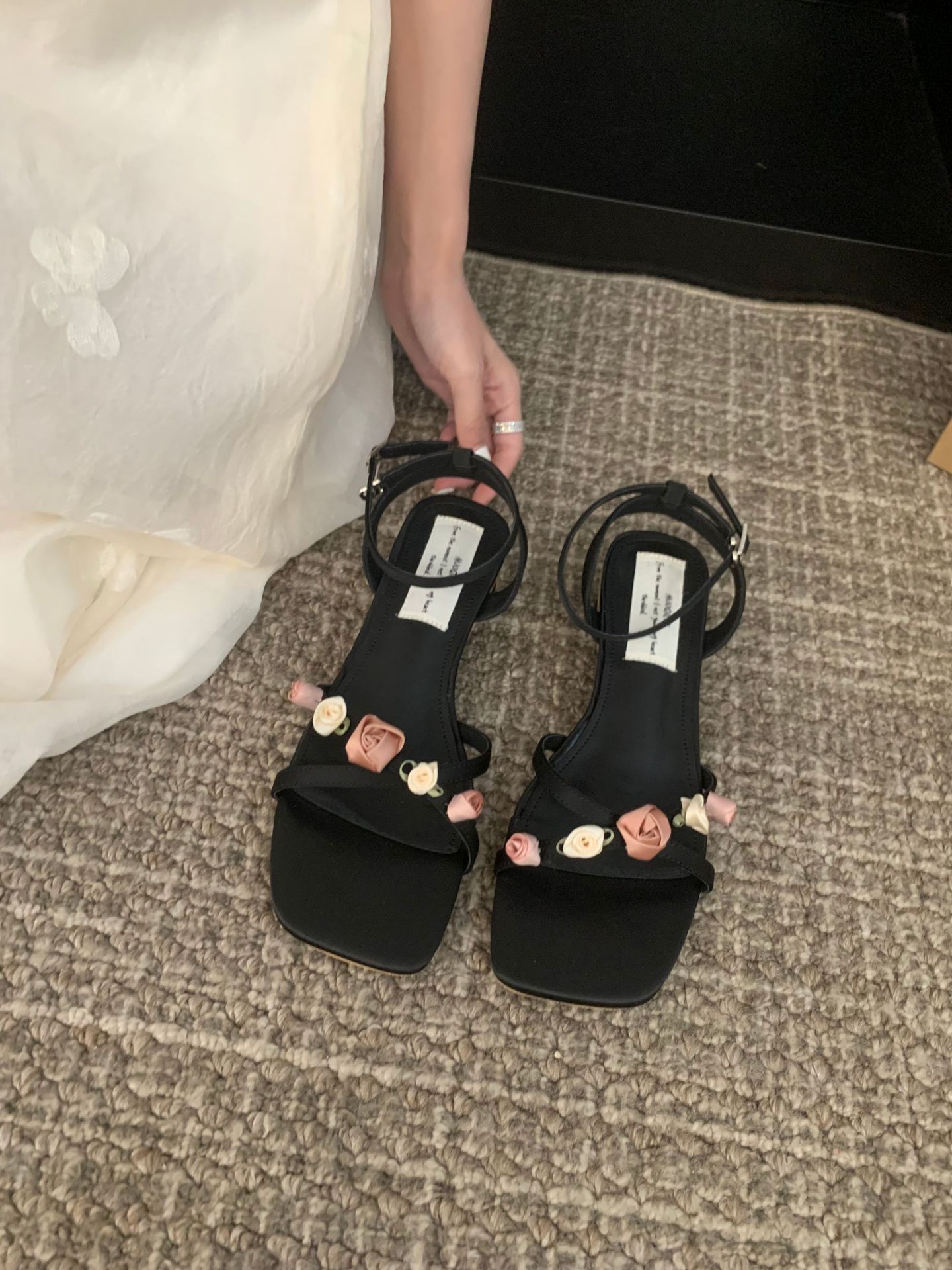 봄과 가을 2024 새로운 스타일 한 캐릭터 버클 스트랩 청키 힐링 샌들 의상 디자인 저힐링 라인스톤 패션 샌들 여성용스토어 가기