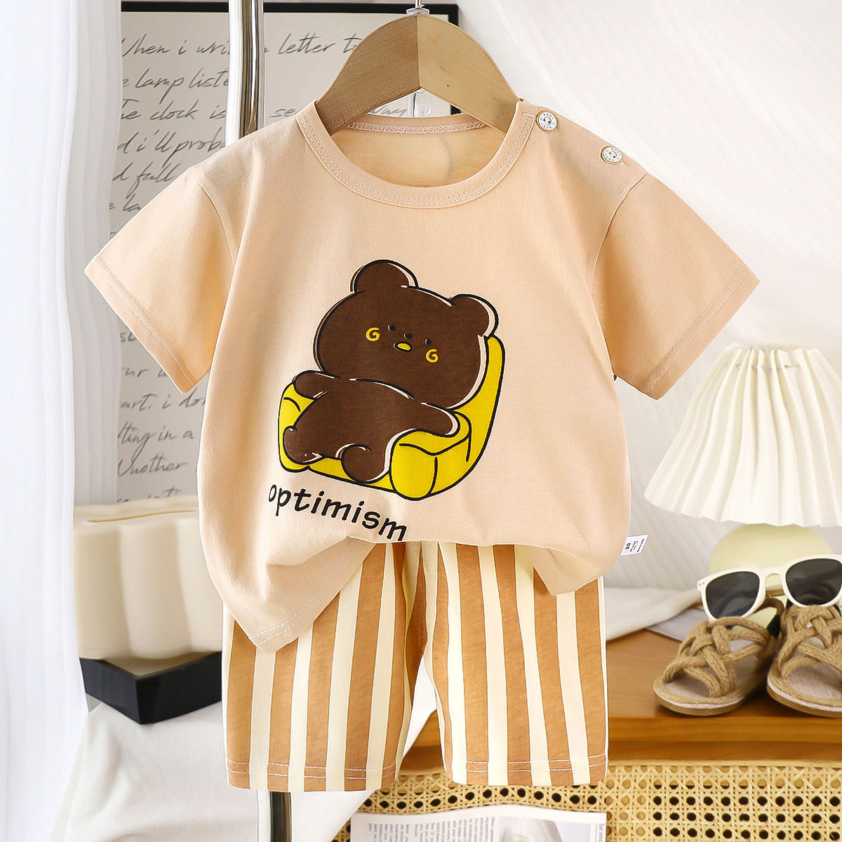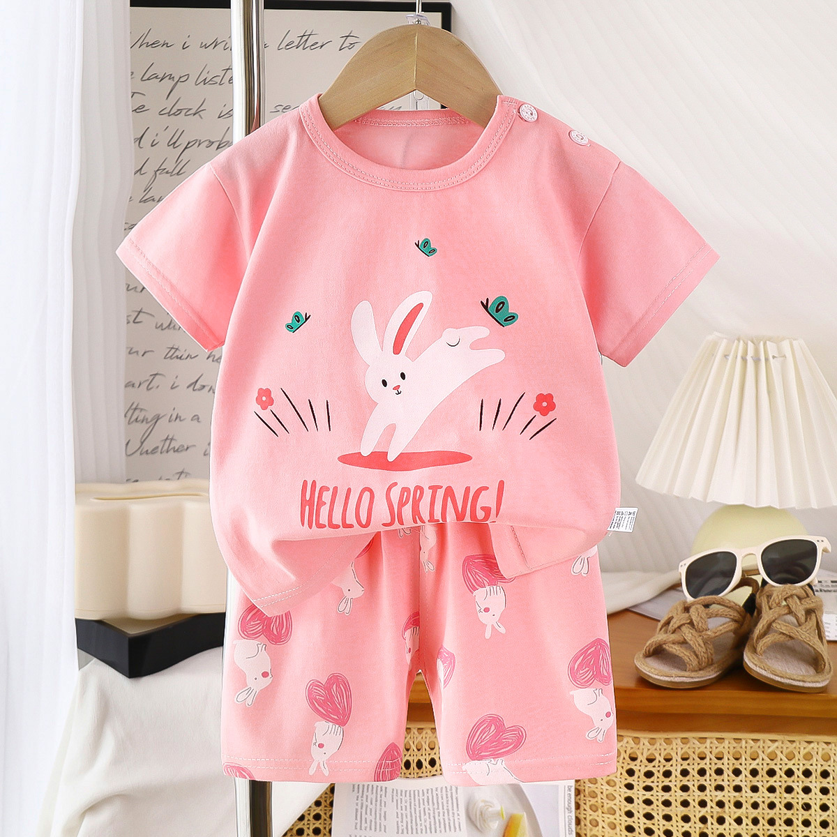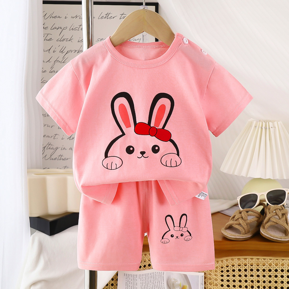 어린이 반팔 세트 면 여름 새 아기 소년 여름 티셔츠 소녀 의류 얇은 어린이 의류 엄격한 선택스토어 가기
