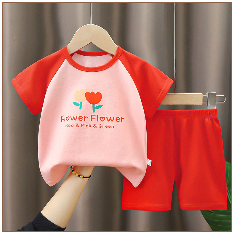어린이 반팔 세트 면 여름 새 아기 소년 여름 티셔츠 소녀 의류 얇은 어린이 의류 엄격한 선택