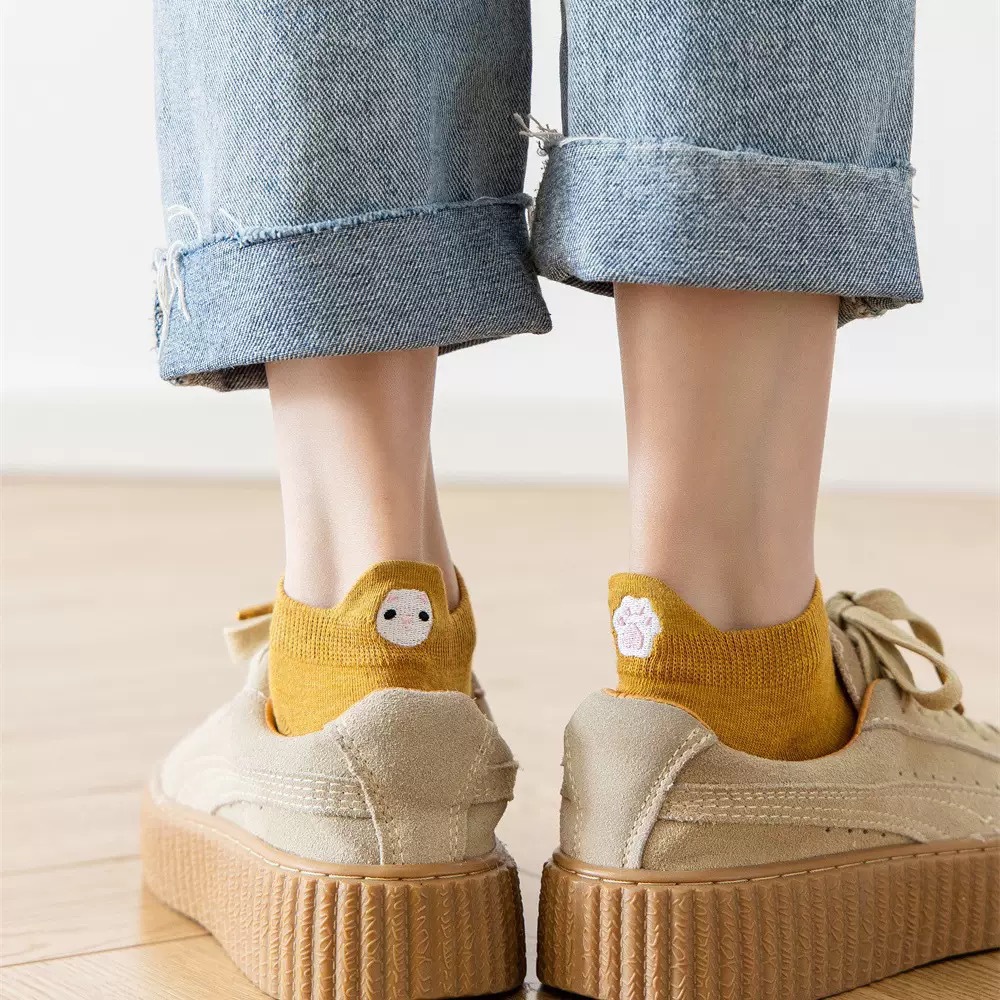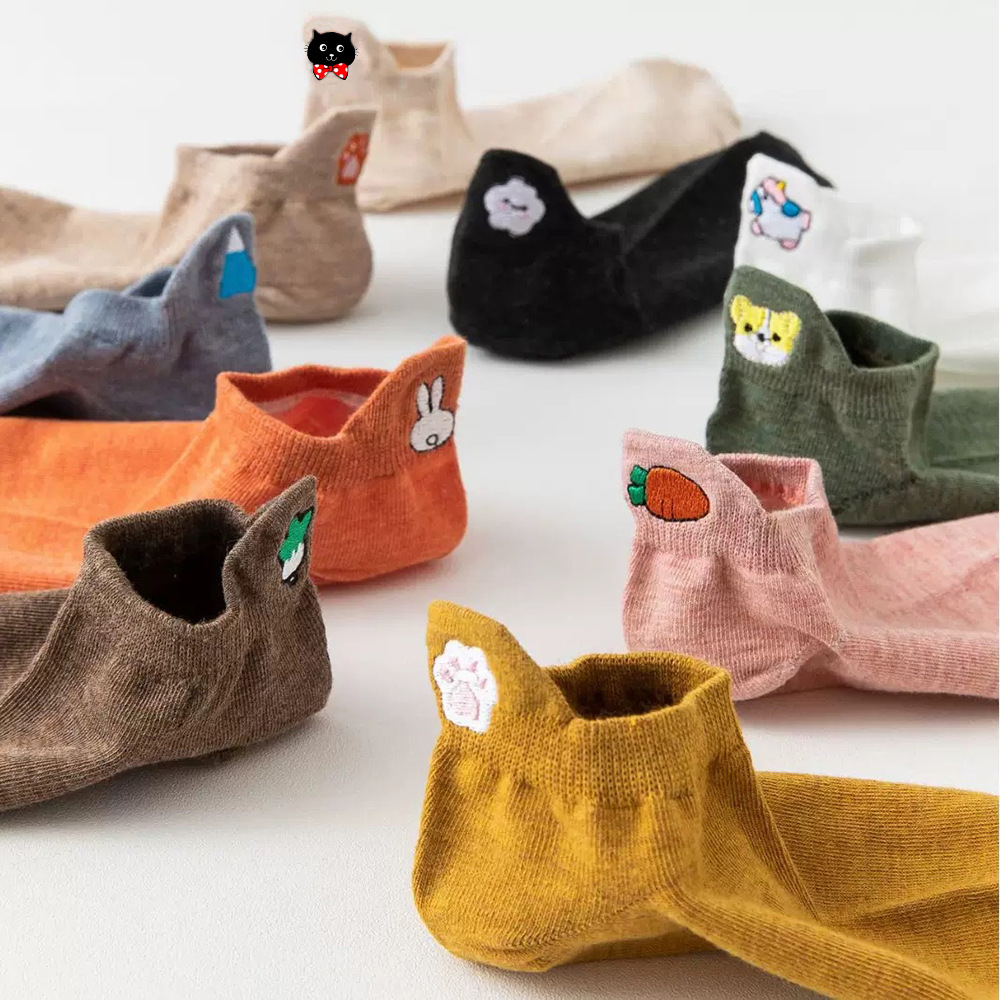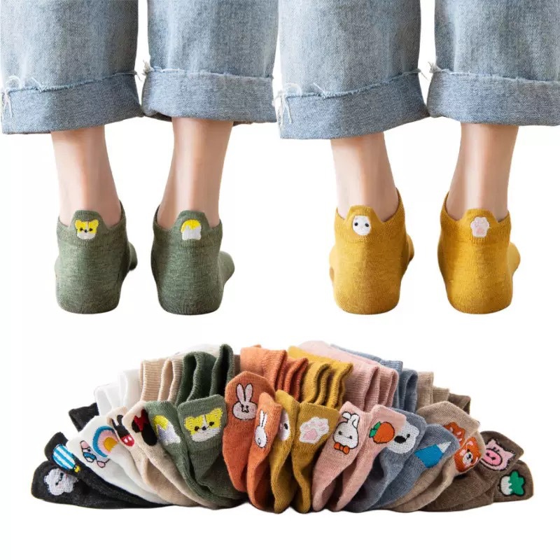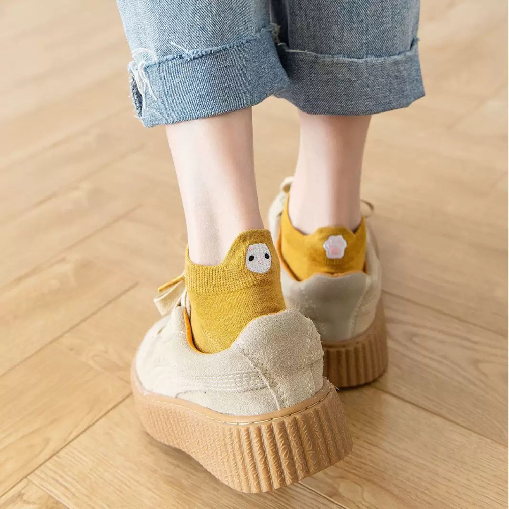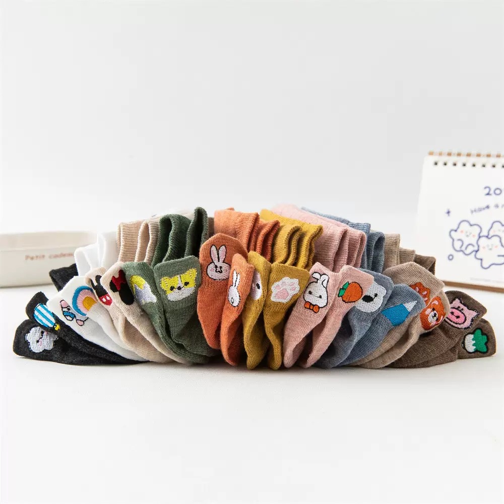 봄과 여름 코튼 보트 양말 머리 자수 스마일리 짧은 양말 일본 스타일 만화 스마일리 여성용 양말 새로운 충격 입 면화 양말