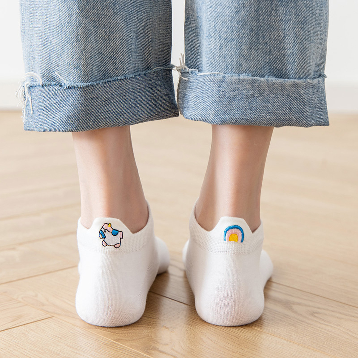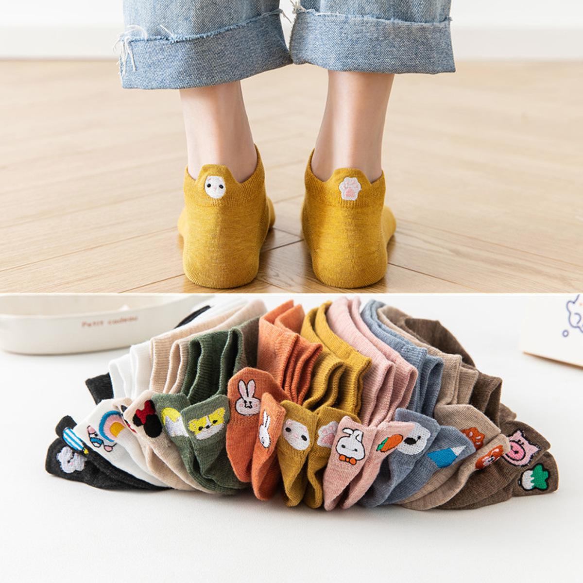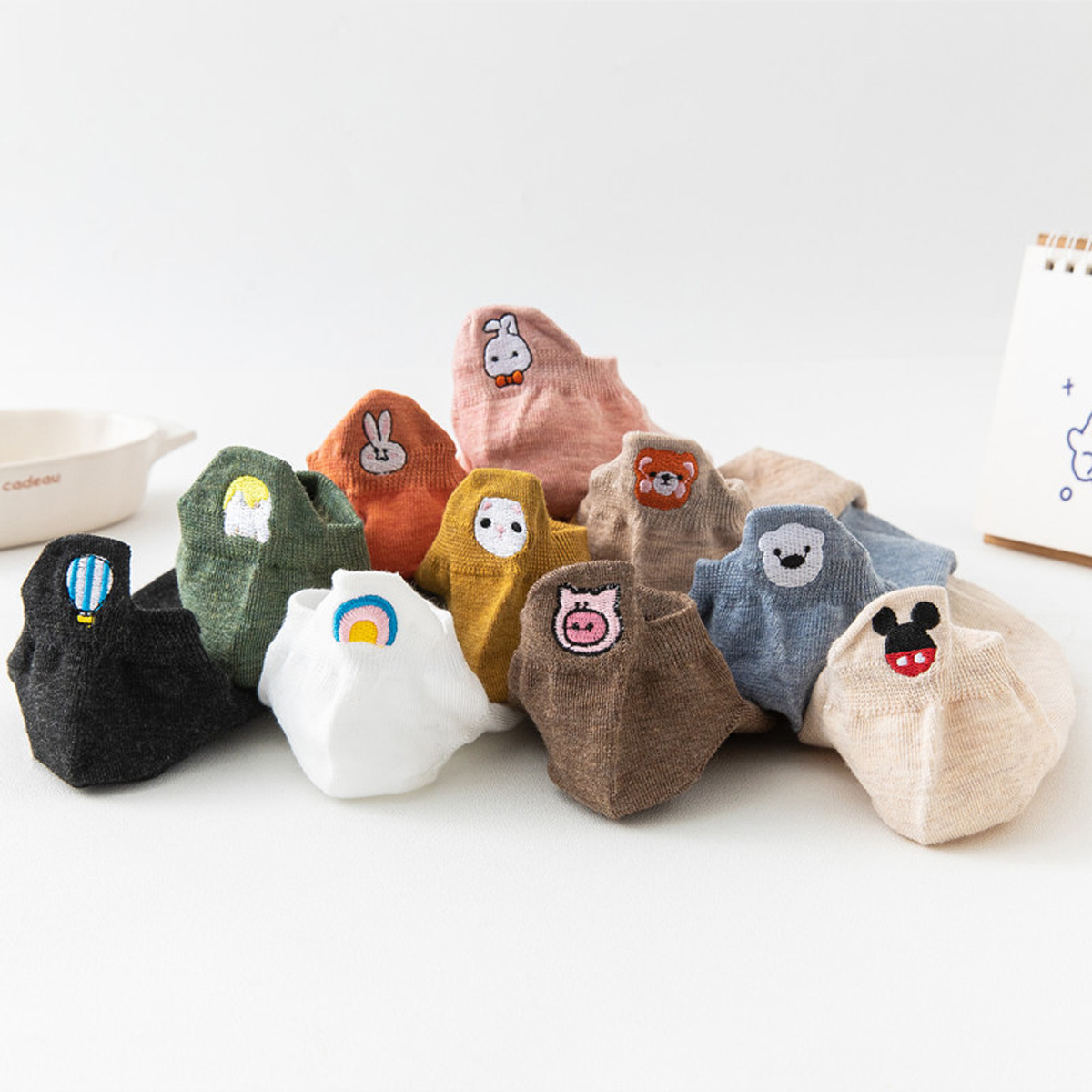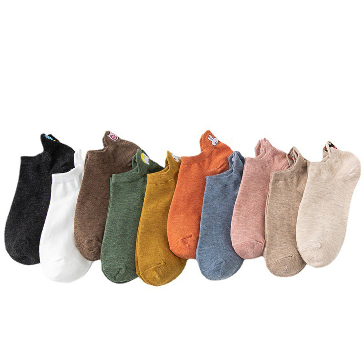 봄과 여름 코튼 보트 양말 머리 자수 스마일리 짧은 양말 일본 스타일 만화 스마일리 여성용 양말 새로운 충격 입 면화 양말