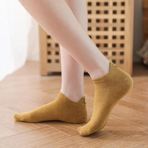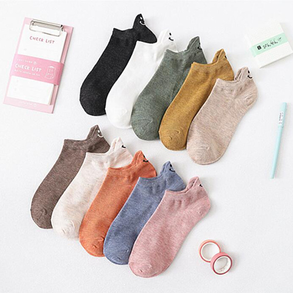 봄과 여름 코튼 보트 양말 머리 자수 스마일리 짧은 양말 일본 스타일 만화 스마일리 여성용 양말 새로운 충격 입 면화 양말스토어 가기