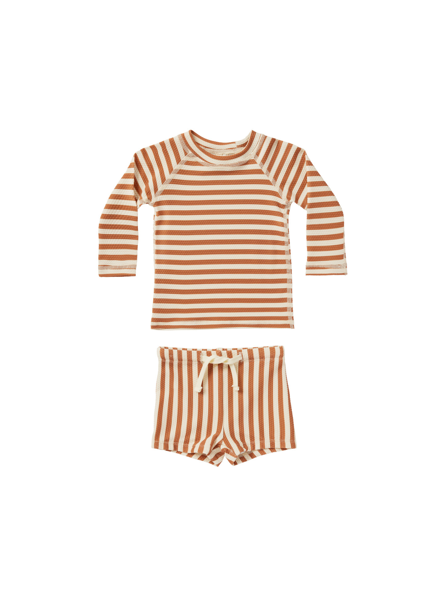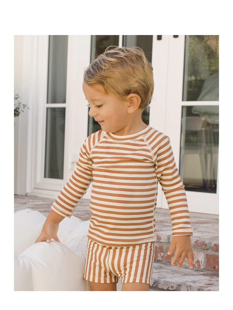 24ss 새로운 북유럽 여름 소년 인쇄 빠른 건조 선 스크린 분할 긴 소매 수영복 반바지 세트