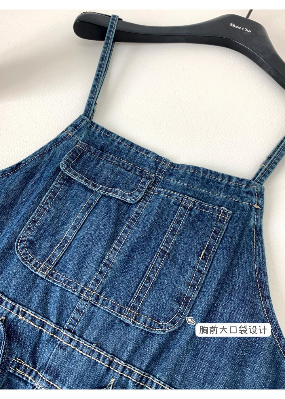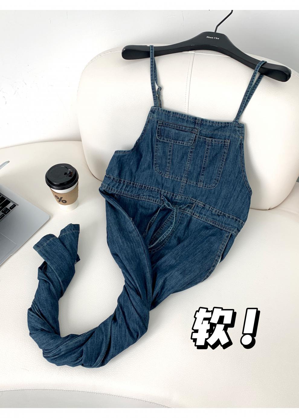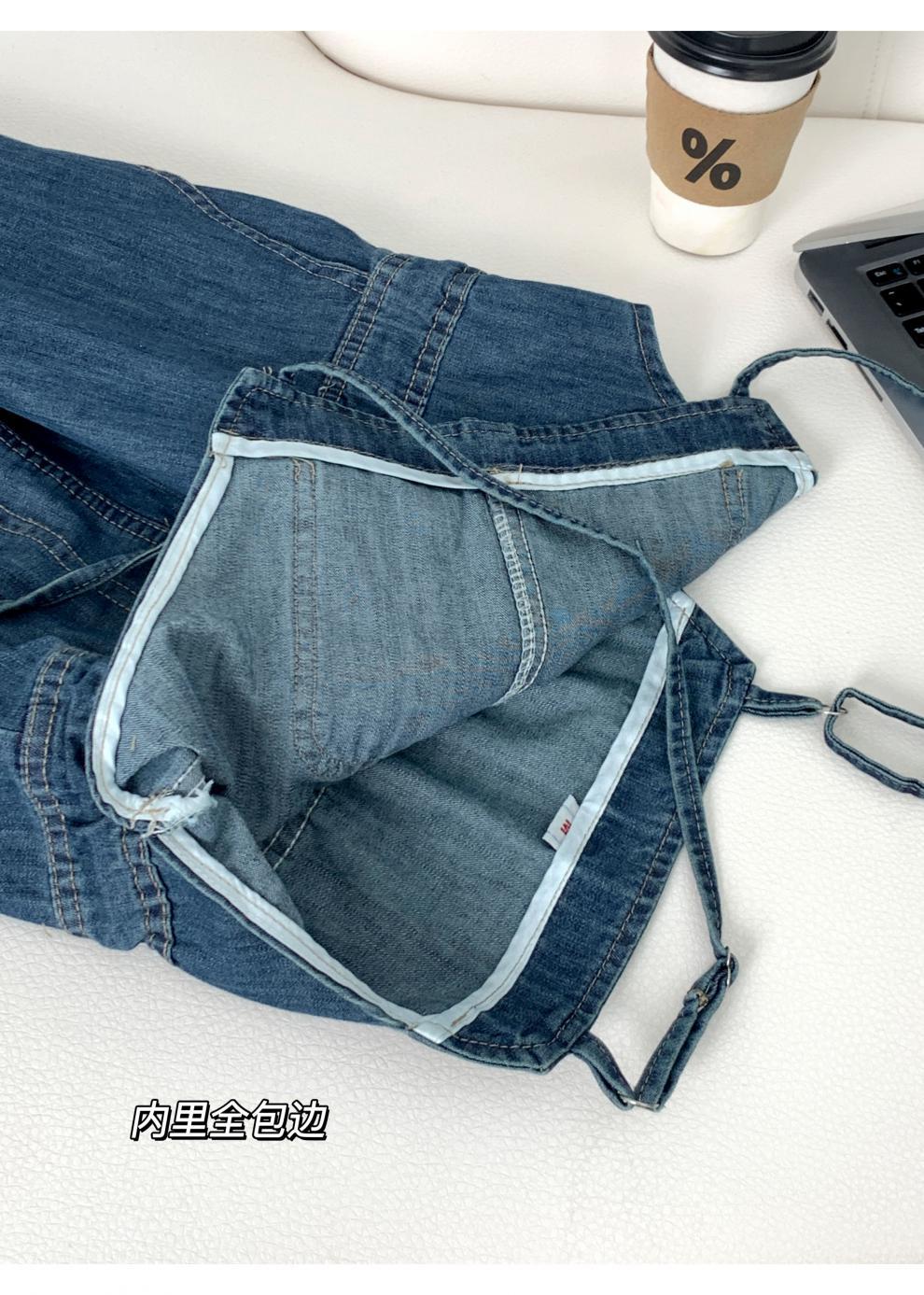 한국식 하이 엔드 레트로 스타일 게으른 스타일 블루 스트랩 청바지 여성 2024 여름 짧은 웨이스트 점프 수트스토어 가기