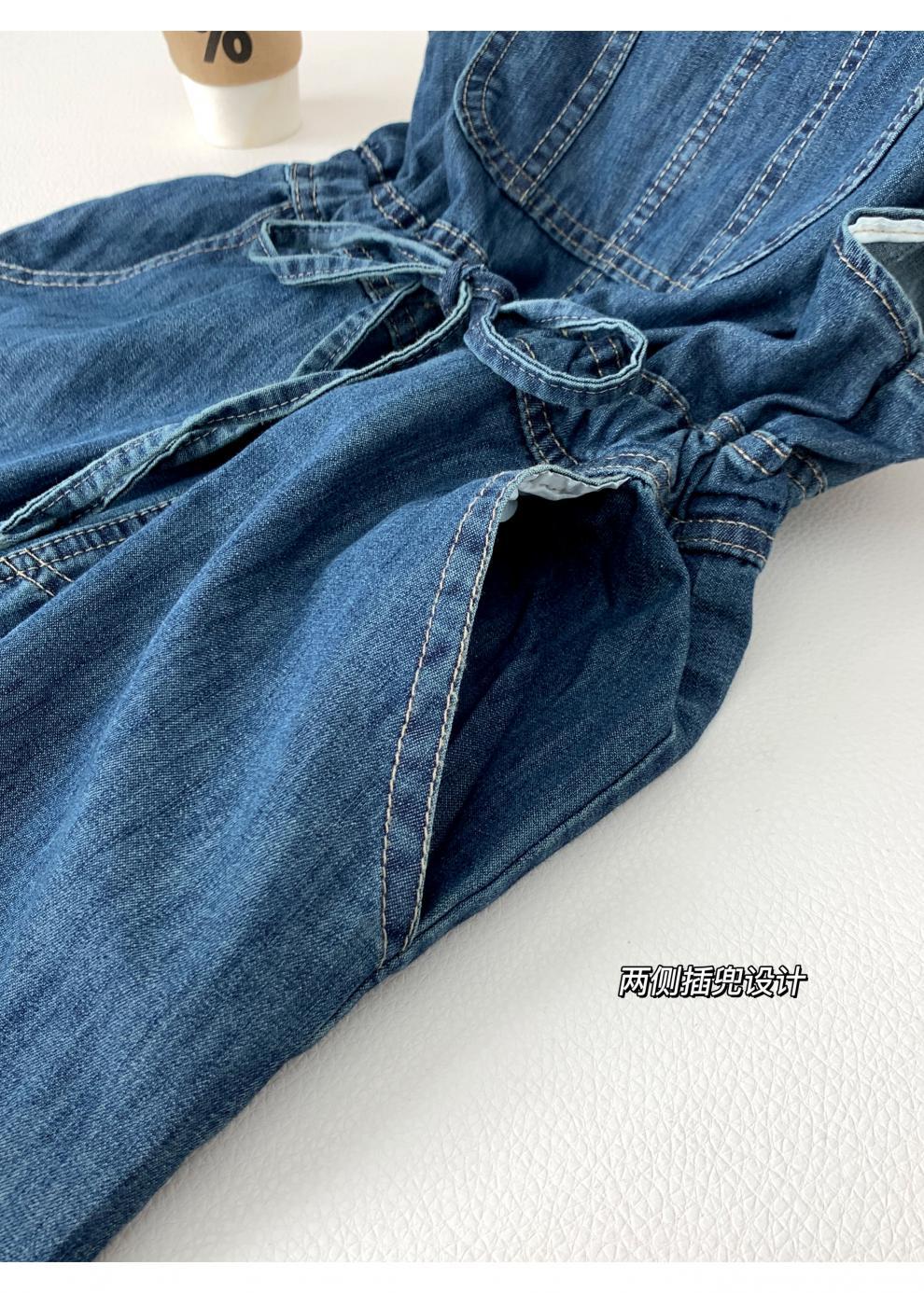 한국식 하이 엔드 레트로 스타일 게으른 스타일 블루 스트랩 청바지 여성 2024 여름 짧은 웨이스트 점프 수트